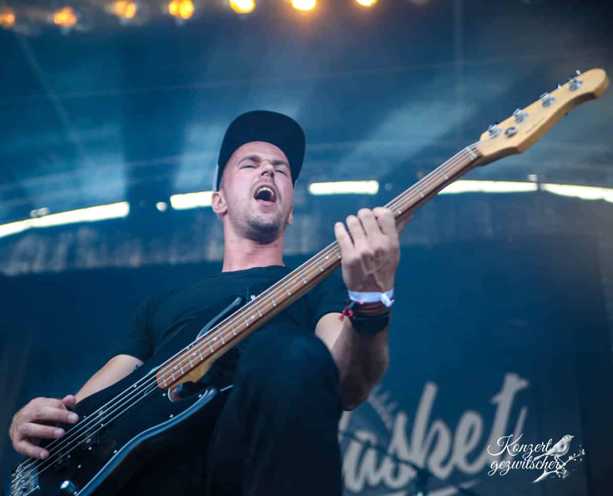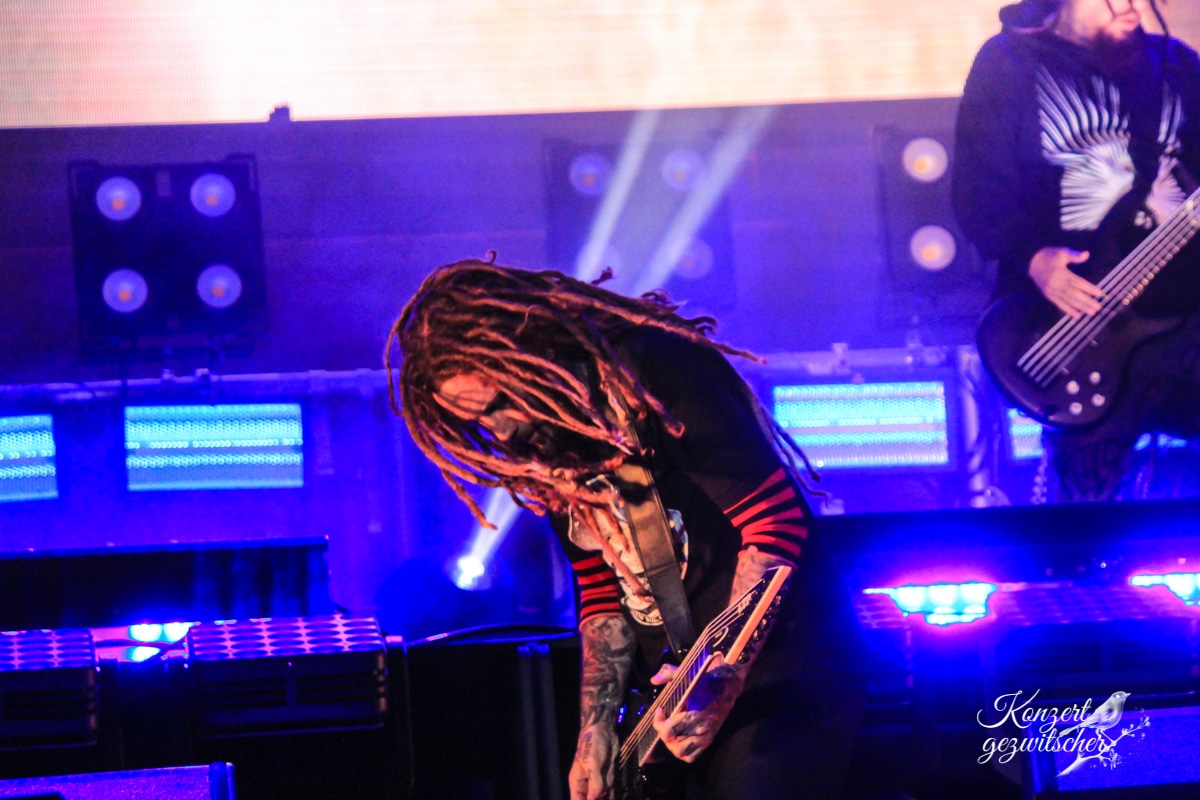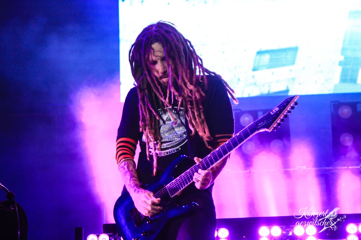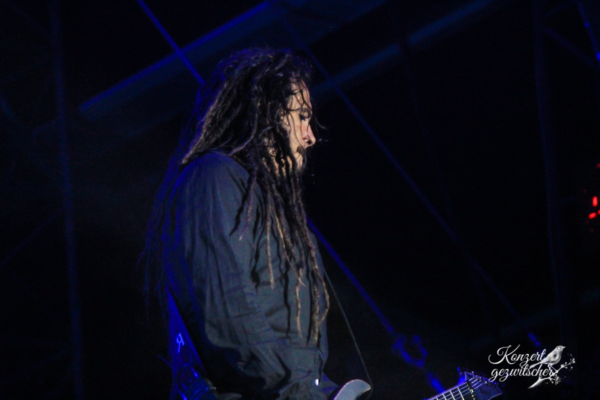 Ich muss gestehen – nachdem KORN mich in der vergangenen Woche auf dem MERA LUNA in Hildesheim nicht wirklich von der viel beschworenen Livegewalt der Amerikaner überzeugen konnte, ist meine Lust auf den Gig der Nu Metal Ikone nicht sonderlich groß. Addiert man dazu noch den Unmut über regulatorische Vorschriften für die Fotografen, ist das Schicksal von KORN für mich bereits heraufbeschworen. Und tatsächlich: So verfluche ich die Herren aus Übersee während der ersten Songs vor allem wegen der beinahe schmerzhaften Bässe, die KORN voll aufdrehen. Doch als ich später im wahrsten Sinne des Wortes das Weite suche und die Band aus den hinteren Reihen bei ihrer Performance von größtenteils neuem Material aus dem aktuellen Album „The Serenity Of Suffering“ verfolge, versöhnt mich das ein klein wenig. Mit dem richtigen feierfreudigen Publikum, das hier KORN gebührend zelebriert, macht die emotional-brutale Musik von Jonathan Davis und seinen Mitmusikern schließlich doch richtig Spaß. Vielleicht gebe ich ihnen bei einem Konzert der aktuellen Tour noch einmal eine Chance, wenn sie mich nicht gerade mit einem typisch übersteuerten Festival-Sound piesacken.