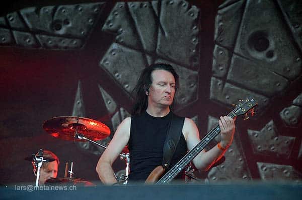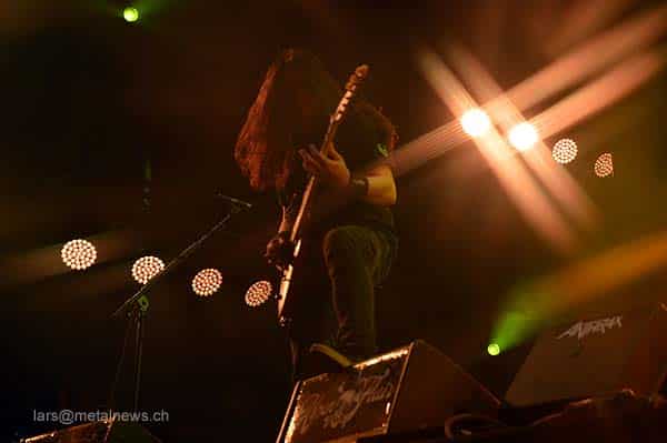 Während dem knipsen, funktionierte plötzlich nichts mehr. Die Speicherkarte war voll. Da hiess es schnell einige Bilder zu löschen, dass ich von ANTHRAX noch genug Bilder bekomme. Gegen Ende meines Fotografen Jobs, machte ein Freund vorne beim Gitter auf sich aufmerksam und zeigte auf den Boden. Was ich da sah war einfach genial. Es waren zwei Plektren von Basser Frank Bello. Ich hob diese auf und gab eine davon dem Freund und der andere behielt ich für mich. Die Fans waren ausser rand und band. In den ersten Rheien wurde das Haupt so richtig gebangt. Ich verzog mich dann in VIP Bereich zurück holte mir zuerst ein Bier und sass hin. Ich musste unbedingt einige Fotos löschen nicht dass mir das wieder passiert. Da ich die Band allerdings sehr gut kenne, wusste ich jedesmal welcher Song gespielt wurde.