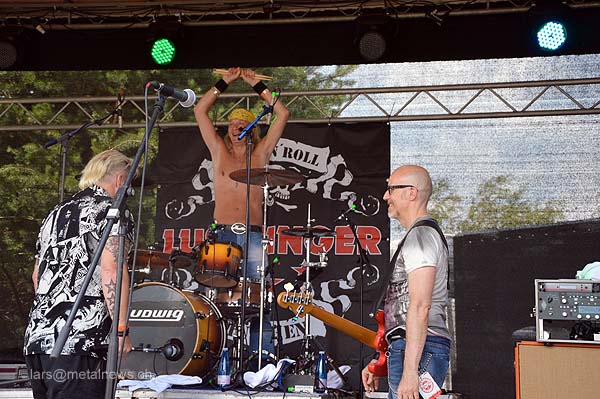 Der Sänger Tom Fock stellte sich vor, als die Band HELENE FISCHER und er sei HELENE FISCHER. Im Vergleich zum ersten Tag bei ARTEFUCKT, waren sehr wenige Leute zugegen. Das könnte einige Gründe geben. Da hätten wir die nicht aufhörende Schweine Hitze, fehlendes Interesse oder schon ein bisschen Müdigkeit. Das stört mich nicht. Auch wenn der erste Tag auch bei mir spuren hinterliess, wird mein Progeamm durchgezogen. Zum Glück bin ich Hartnäckig da mir die Deutschen LUSTFINGER sehr gut gefielen. Der Tag war allerdings sehr speziell für Drummer Tommy Wagner. Er feierte an diesem Tag Geburtstag. Da gab es natürlich von den Fans ein ständchen oder zwei. Immerhin waren die wenigen Fans in Feierlaune. LUSTFINGER zeigten einen soliden Auftritt. Im Herbst sollte das neue Album rauskommen, da hatten die Jungs doch mit „Niemals vergessen“, „Bier“ und „Bumsilaki“, drei neue Songs im Petto. Am besten gefiel mir natürlich der Song „Bier“. Na klar es geht um mein Lieblingsgetränk.