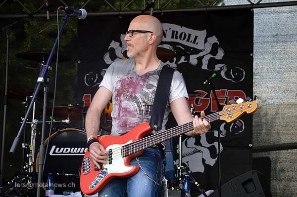 Plötzlich flog ein BH auf die Bühne, der, der Gitarrist versuchte anzuziehen. Da dies nicht wunschgemäss klappte, hängte er sie an den Mic Ständer.