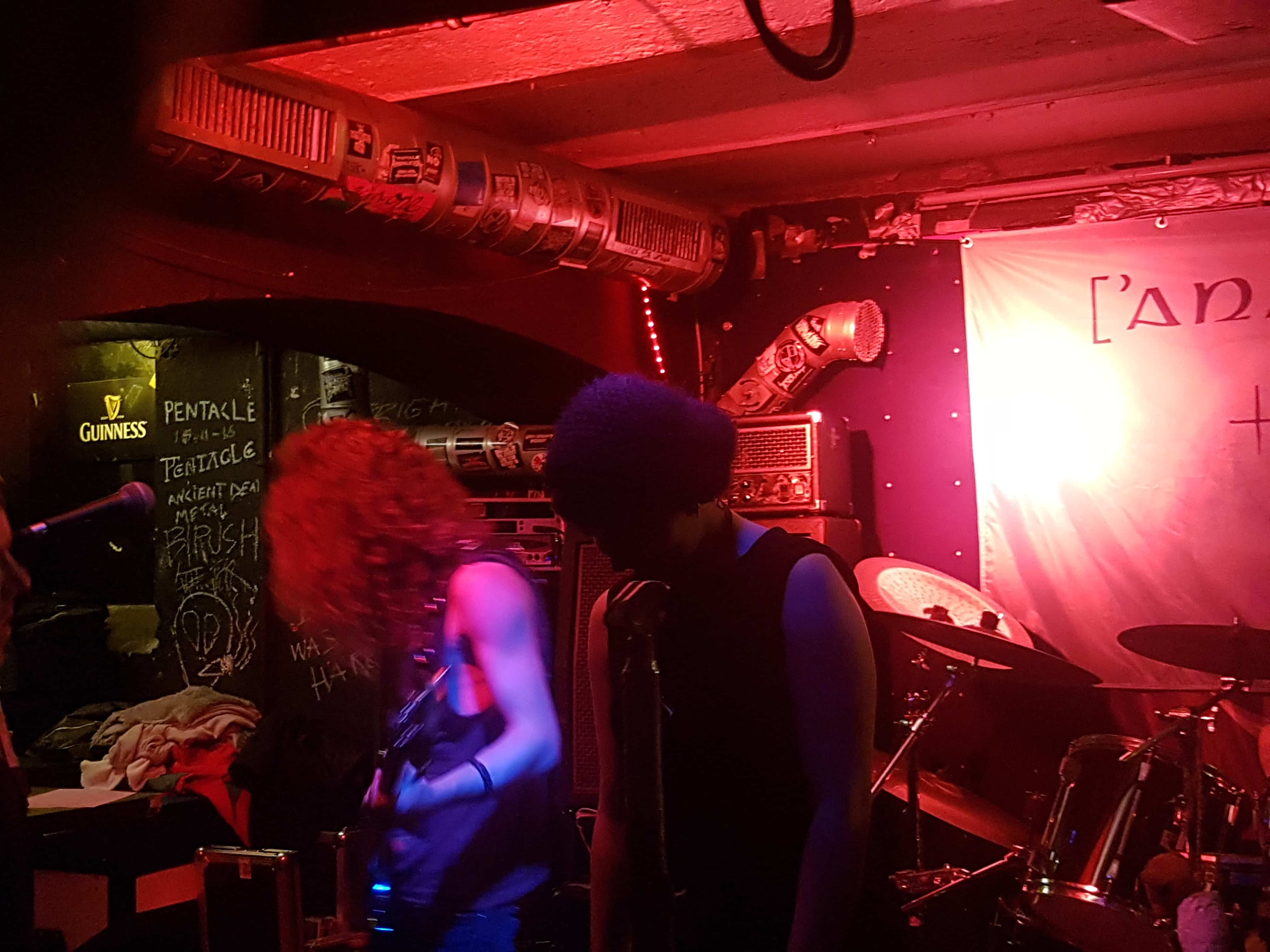 Dann kann das ganze jetzt ohne Probleme über die Bühne gehen. Teilweise war das ganze 3 Stimmig. Da hätten wir die unglaubliche Stimme von Sängerin Sophie, die Scream Stimme des Bassisten Flo und des Gitarristen Jonathan. Dies passte Perfekt zusammen und auch die Soundqualität hielt stand. Mit “ Vampiric Tales “ kam ihr neuster Song von der kommenden EP zur Live Premiere. Der Song geht ganze 20 Minuten lang durch das er 5 Teilig ist. Wenn das der einzige Song auf der EP ist, könnte ich sogleich wohl eine EP Review schreiben. Jedesmal wenn man dachte, dass er jetzt fertig ist, war dem nicht so. Ein gelungener Track. Beim 5 Teil des Songs, streifte sich der Gitarrist Jonathan ein Osterhase Kostüm über und warf Lindt Schockoherzen ins Publikum bevor er mit der Gitarre durch die Menge hoppelte.