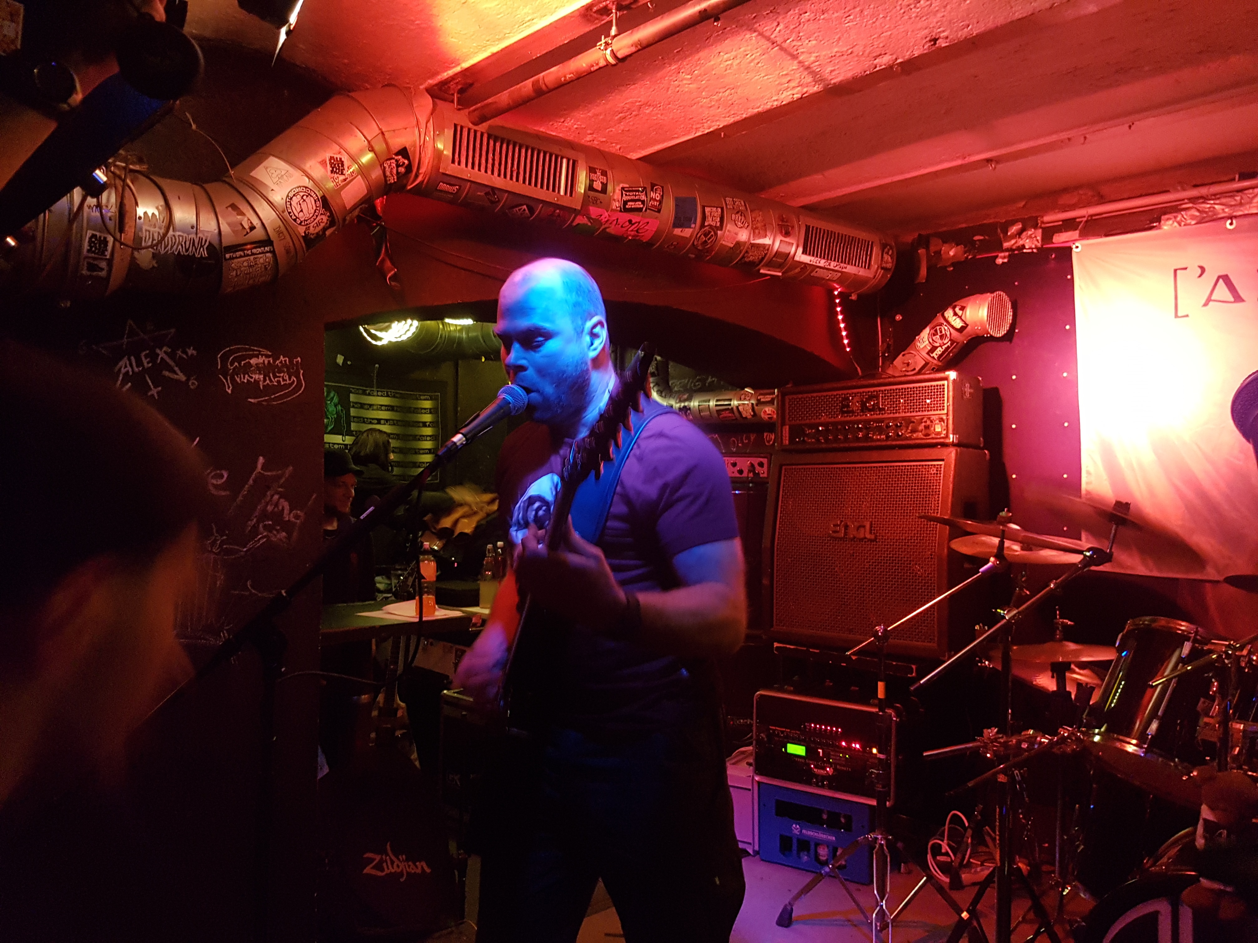 Als erstes bemerkte ich dass Sänger Steve nach meinem wissen verblüffende ähnlichkeiten mit dem Sänger Sven de Caluwe von ABORTED aufwies. Die Aura wie die Bühnenpräsenz ist sehr ähnlich.