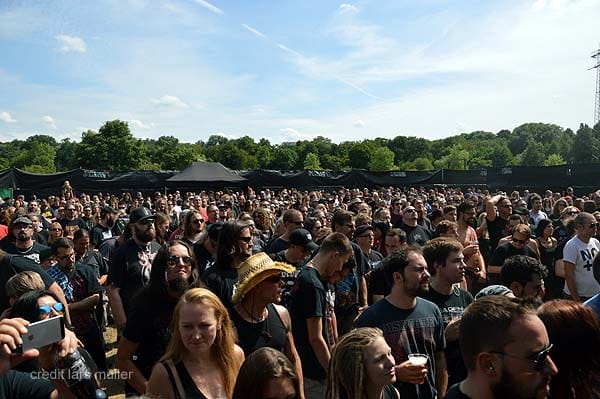 Als er zu mir ans Gitter kam, hatte er ein Grinsen im Gesicht, das von Ohr zu Ohr reichte. Als der letzte Song gespielt war, kamen aus allen Ecken des Areals Zugabe-Rufe. Durch den engen Fahrplan war es für KRISIUN aber nicht möglich, weitere Songs zu spielen, jedoch freuten sie sich über den enorman Applaus der Fans.