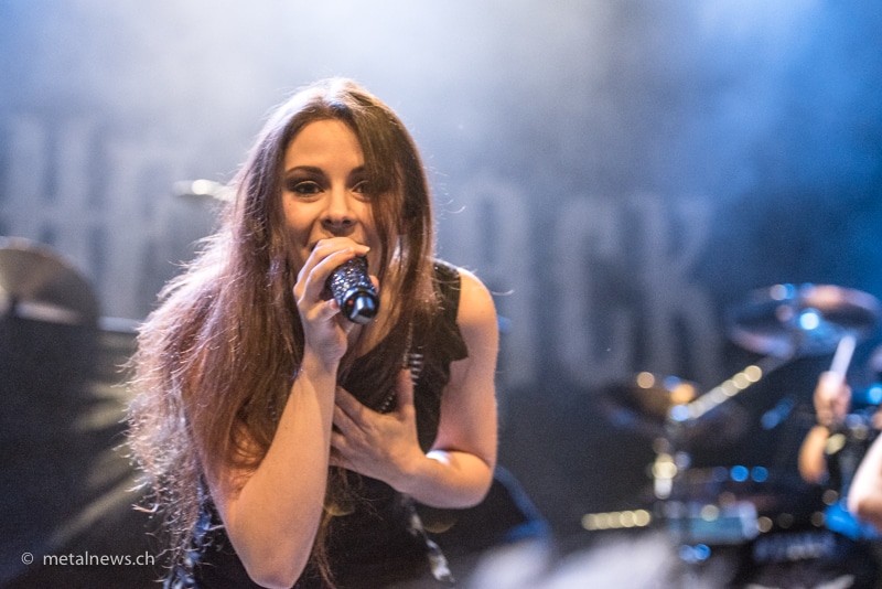Um etwa 19:50 fing dann das erste Highlight an mit EPICA. Dieses Konzert stand unter einem bestimmten Stern. Die Leadsängerin Simone feierte ihren Geburtstag bei uns in Zürich auf der Bühne. Der erste Klang reichte aus um die Massen mitzureissen. Der Track „Eidola“ machte den Anfang und sogleich kamen auch die ganzen Headbanger hervor und zelebrierten einen genialen Abend. Das emotionalste für Simone war wohl, als das ganze Volkshaus Happy Birthday sang und ihr ein Kuchen überreicht wurde. Natürlich passend zu ihrem Geburtstag schnallte sich Coen das halbrunde Keyboard um und zeigte allen was er auf dem Kasten hat.