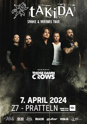 Sie führen die Radio-Airplay-Charts an, treten vor Zehntausenden von Fans auf und bringen ihren unverwechselbaren Sound unter die Leute – tAKiDA sind ganz oben auf dem Treppchen. Jetzt kündigt die Multi-Platin-Band aus Schweden ihr Napalm Records-Debüt „The agony flame“ an, das am 9. Februar 2024 erscheinen soll! Zusammen mit der Albumankündigung erschien am 14. November 2023 die erste Single und der zukünftige Radiohit „Third strike“.