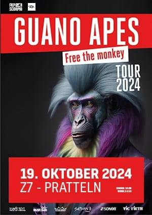 Mit Alternative-Rock-Knallern wie „Open Your Eyes“ und „Lords Of The Boards“ mischten die Guano Apes in den 90er Jahren die internationale Musikszene auf. Seither ziehen sie als einer der wichtigsten und erfolgreichsten Rock-Exporte Deutschlands mit ungebremster Energie durch die Lande. Im Oktober 2024 kommt die Band ins Z7, um ihre grössten Hits zu zelebrieren und mit den Schweizer Fans 30 Jahre Guano Apes zu feiern.