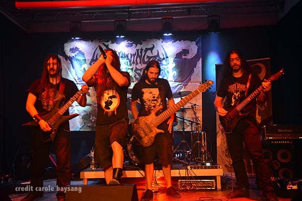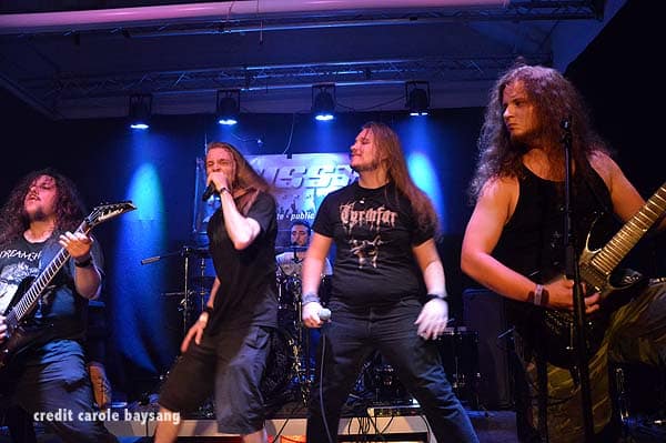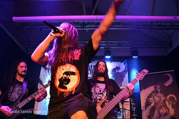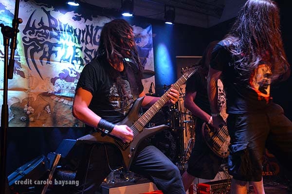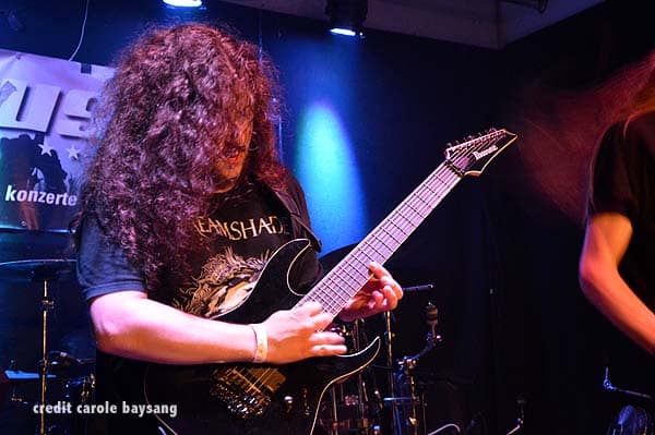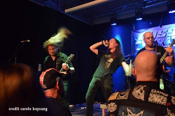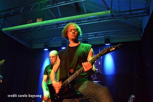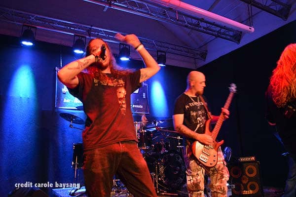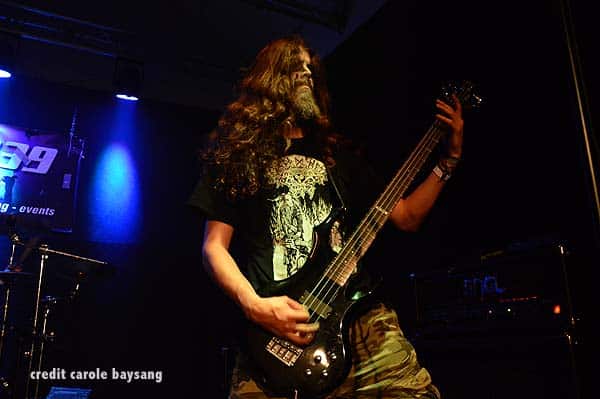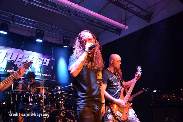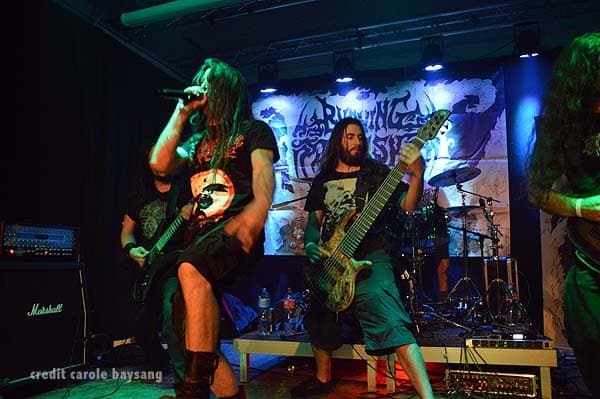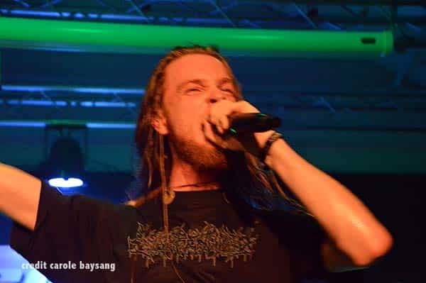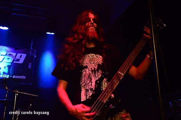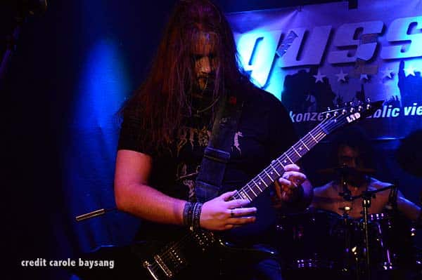 Als nächstes beehrt uns die 2005 gegründete Band aus Genf. Diese wissen mit Brutalität zu überzeugen. Frontgrunzer „Mulk“ holt alles aus seiner Stimme raus und bringt die Soundanlage an den Rand der Kapazität. Scheinbar scheint der Sound etwas zu eintönig für viele Besucher zu sein, einige hängen draussen an der frischen Luft rum oder stehen wie Salzsäulen im hinteren Bereich des Raumes. Auch der Moshpit will nicht so richtig in die Gänge kommen. Schade, BURNING FLESH hätten einiges mehr an Aufmerksamkeit verdient. Da ich dieses Mal ja auch am Fotografieren bin, merke ich wie schwierig das sein kann. Respekt also an alle Fotografen welche in jeder Situation brauchbare Bilder hinbekommen.