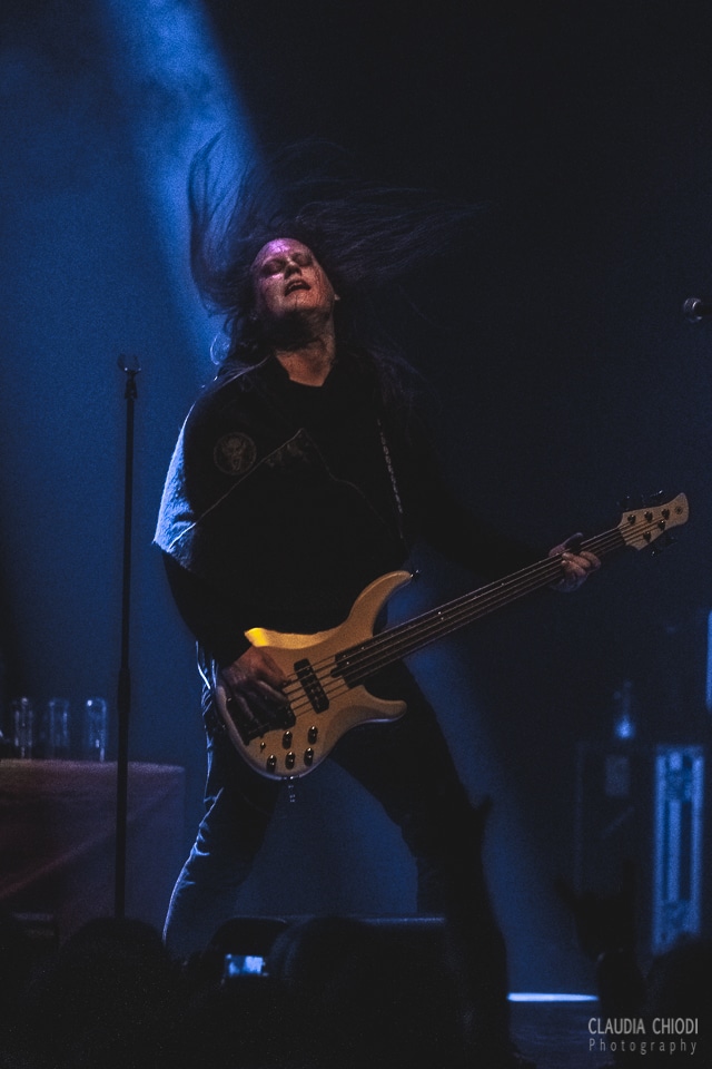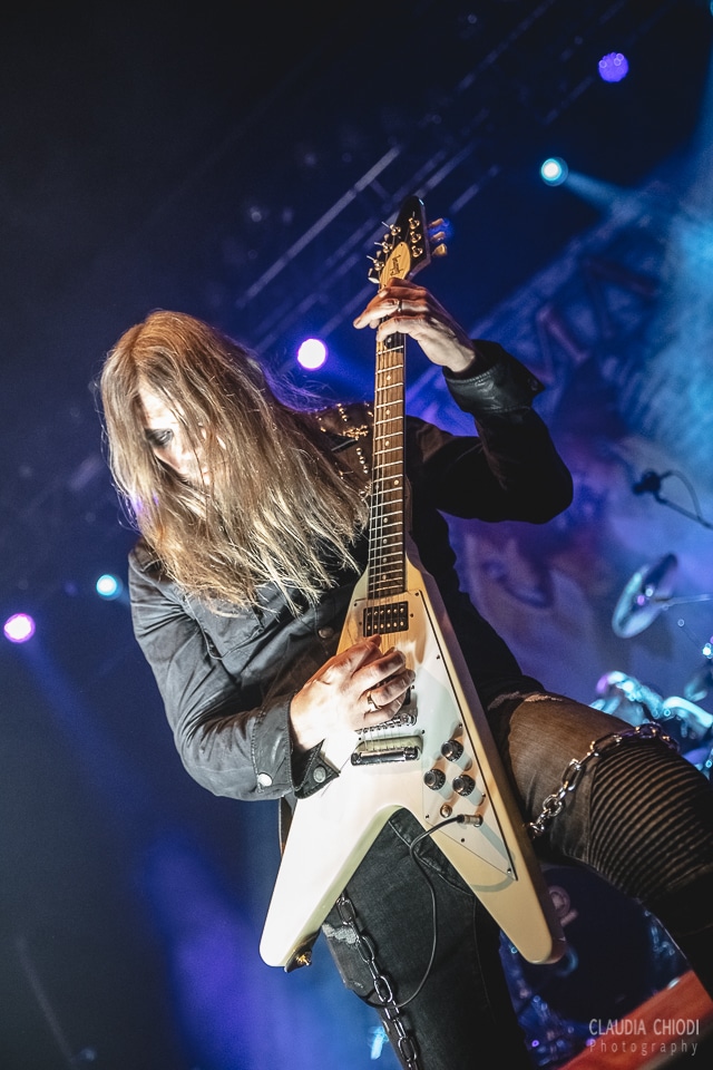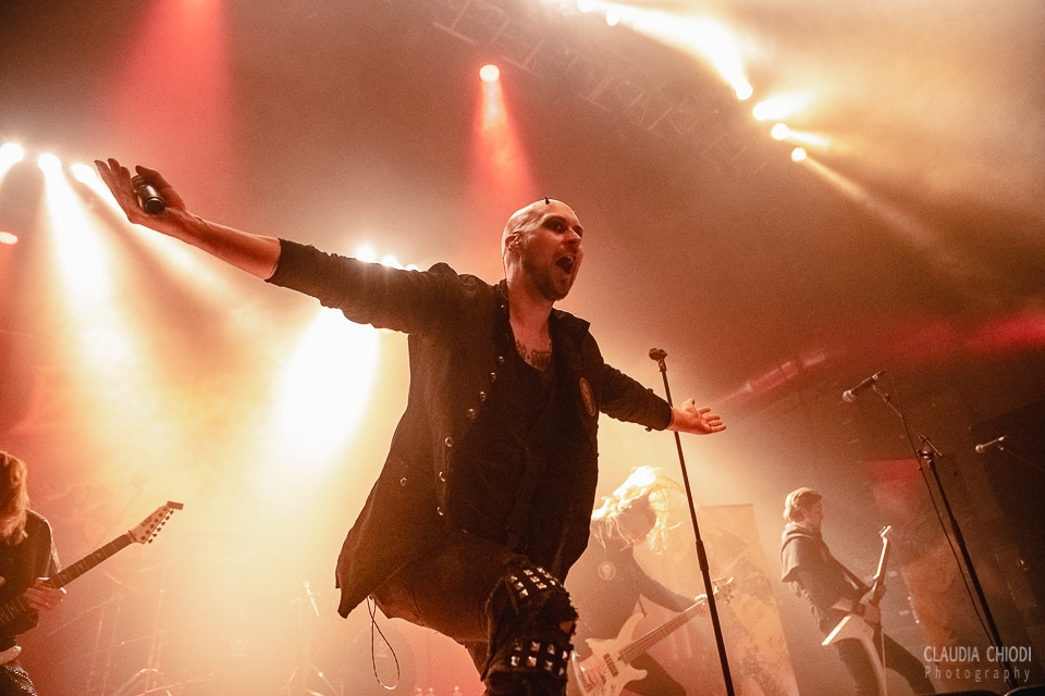 Wie auch schon beim Opener ist bei BLOODBOUND ist der Basser für das Fratzen schneiden zuständig. Anders „The Beast“ Broman macht seinem Spitznamen alle Ehre und übernimmt auch gleich das exzessive Headbangen. Im Gegensatz zu den anderen Konzerten auf der Tour fehlt an diesem Abend jedoch die aus dem Video bekannte Drachenmaske von Patrik, offenbar war sie vor dem Auftritt nicht zur Hand. Aber das sind ja auch nur Äußerlichkeiten und mindert das Konzerterlebnis in keinster Weise.