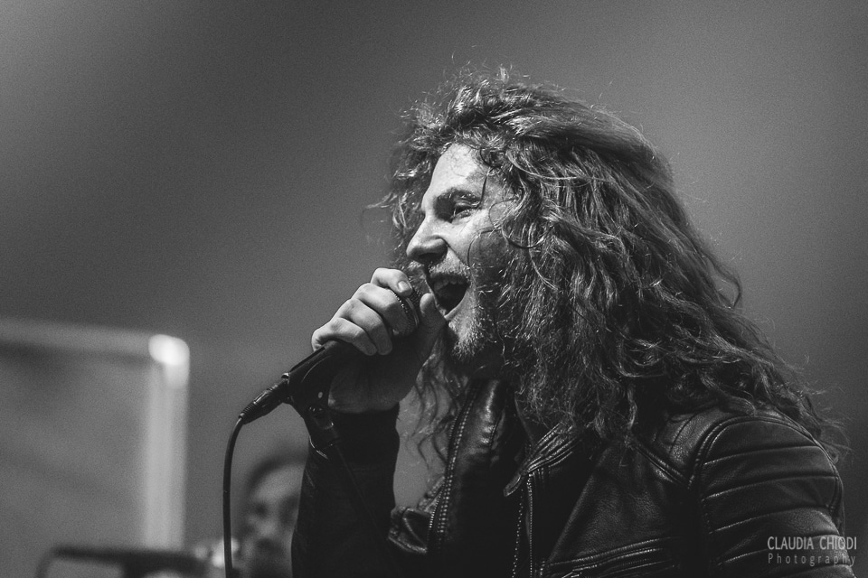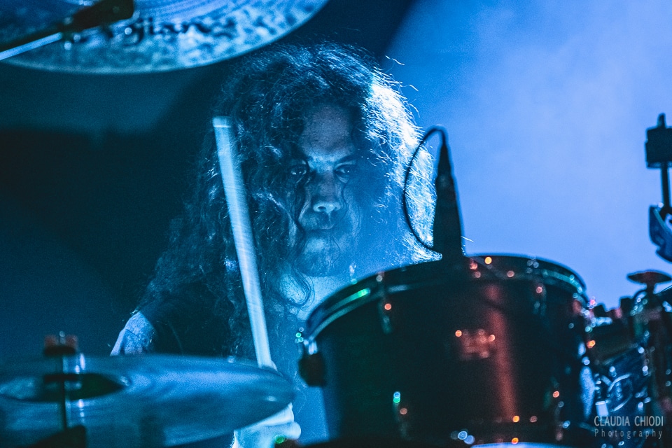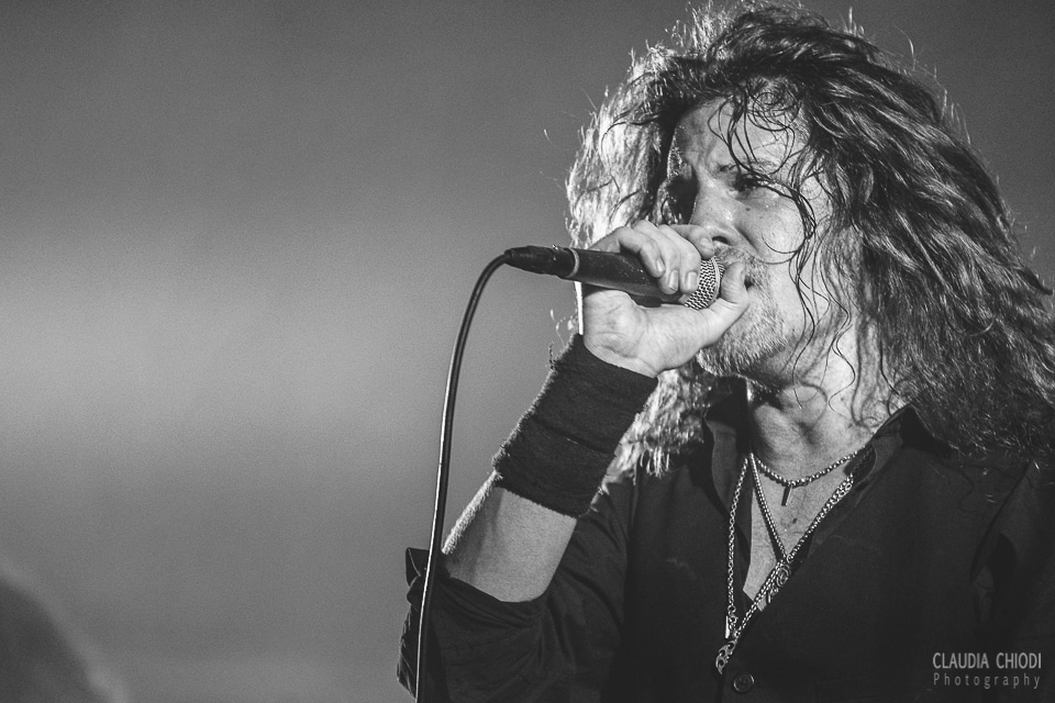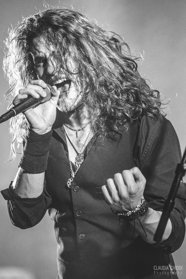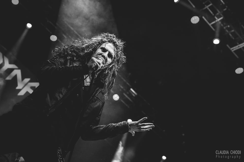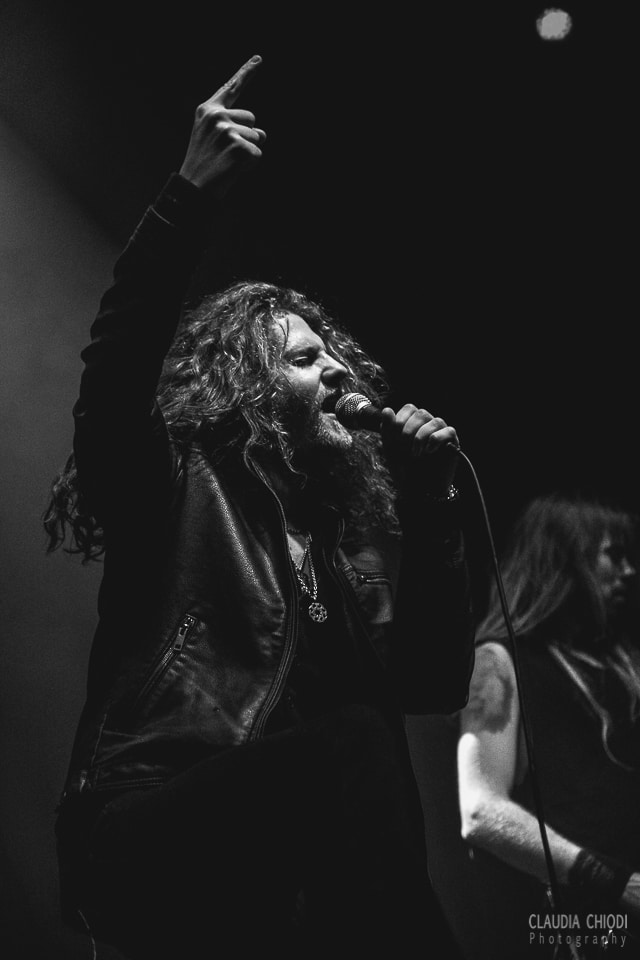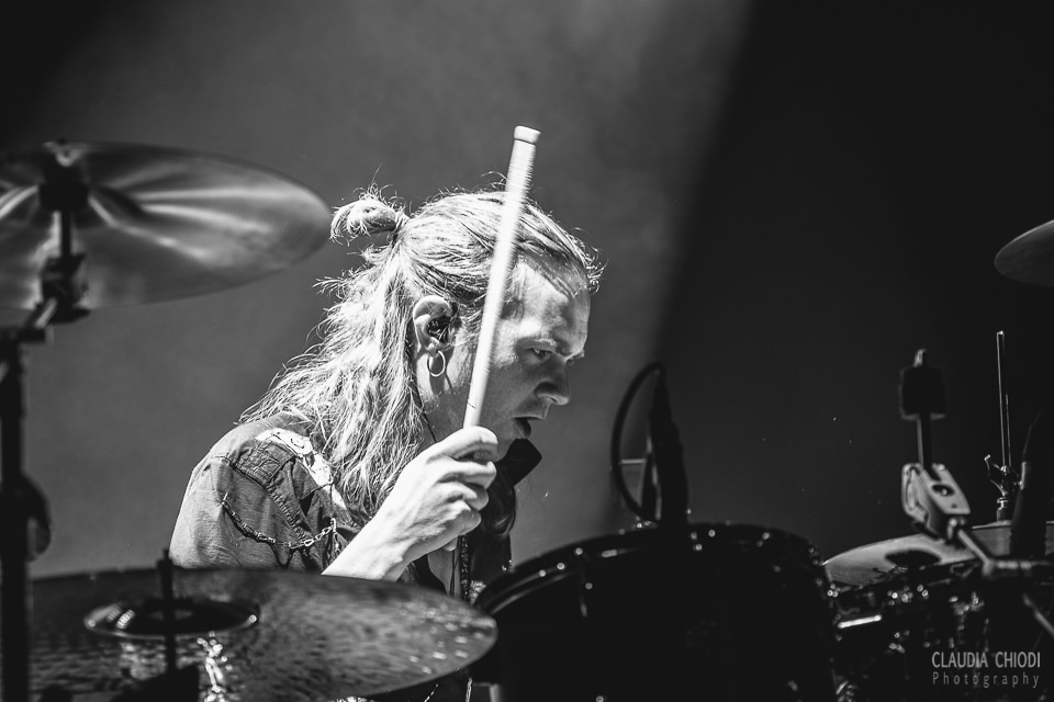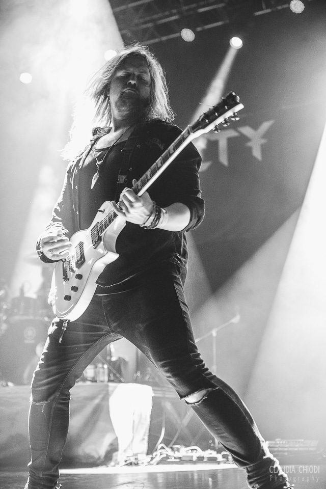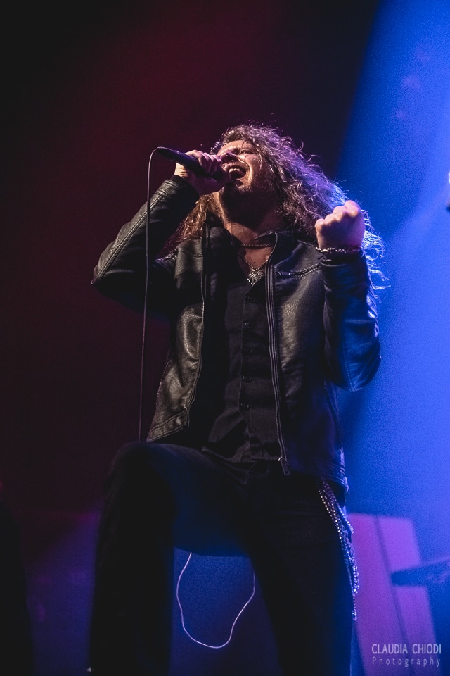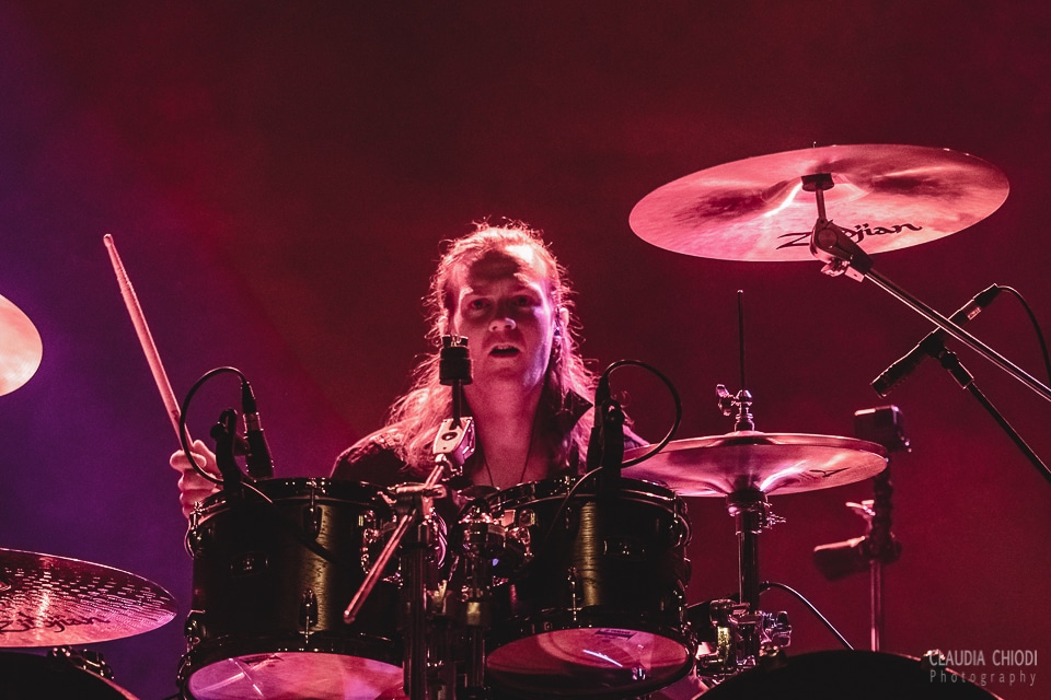 Die Göteborger bieten mit Gesichtsbemahlung zwar einen leicht martialischen Anblick, musikalisch finden wir uns aber im Bereich Power/Heavy Metal wieder, angereichert hie und da mit etwas raueren Klängen. Während drei der Band auch immer wieder sehr grimmig aus der Wäsche kucken, ist Basser Kenny Boufadene offenbar der Spaßvogel der Truppe und Grimassen nicht abgeneigt. Die Setliste ist gut gewählt, mit drei Alben auf dem Markt hat man etwas an Auswahl zu bieten und das zeigen sie auch. Nach knapp 40 min beenden sie ihren Auftritt mit Irresistible, dem Song, welcher mir auch nach einer Woche noch fester im Ohr hängt, als Sänger Samuel in seiner Zwangsjacke steckt. Mit wenigen Mitteln, ein Spot im Riser, die „Pandaaugen“ und natürlich die eigene Präsenz, hat das Quartett eine Performance abgeliefert, welche sowohl auf grossen als auch kleinen Bühnen Wirkung entfaltet.
