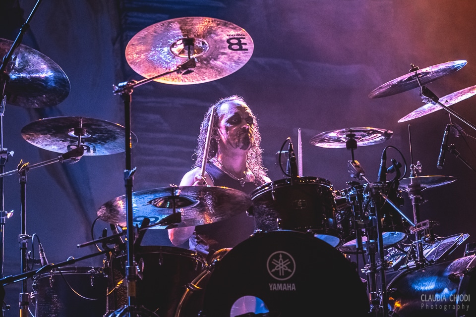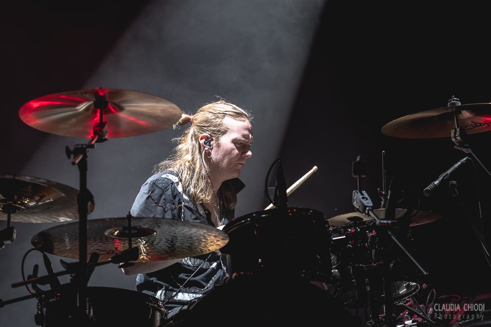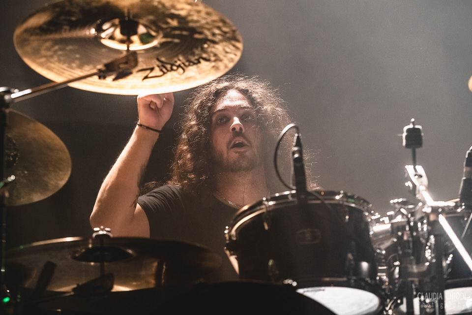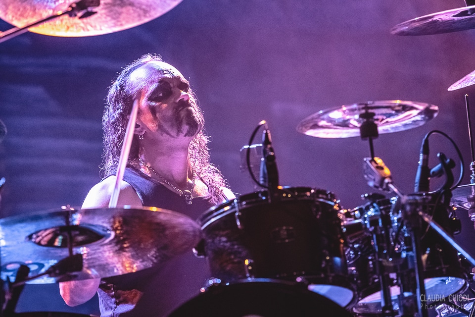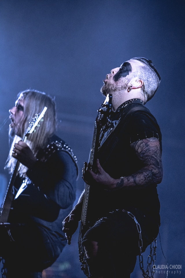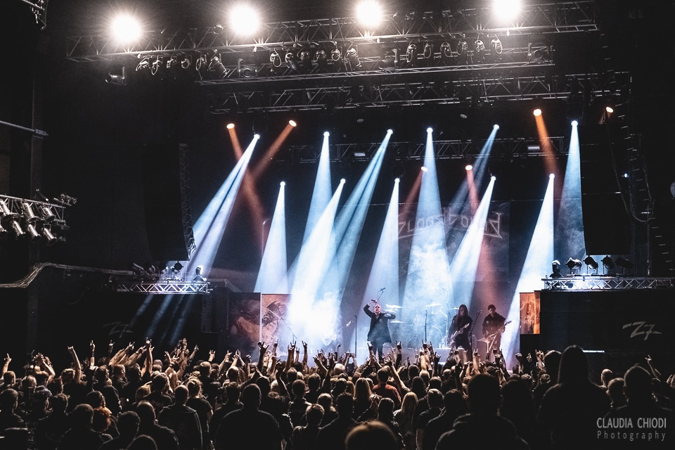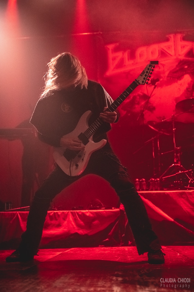 Kurz vor 22 Uhr läutet Bloodtale den Beginn der grössten Headline Show der Bandgeschichte von BLOODBOUND ein. In tiefem Blutrot und mit Battle in the Sky legt das Sextett dann auch persönlich los. Überhaupt haben es eine beachtliche Anzahl Songs vom Vorgänger Album auf die Liste geschafft, dafür nur deren drei von der aktuellen Scheibe Rise of the Dragon Empire. Diese sei noch zu neu und außerdem hat die Band reichlich gutes Material, welches die Fans hören möchten, auch eine Art Luxusproblem. Ob das Hymnen auf das Genre sind oder auch On The Battlefield, welches seit Jahren nicht mehr live zu hören war, die Zusammenstellung der Songs ist gelungen und gefällt mir persönlich gut. Mit Fallen Heroes ist auch eine sehr persönliche Ballade dabei, welche Sänger Patrik seinem Vater gewidmet hatte und zu meinen absoluten Favoriten gehört. Zum Schluss geht es noch einmal zurück zu den Anfängen der Band, der Song, welcher einfach nicht fehlen darf: Nosferatu! Immer wieder ein sehr intensiver Moment, wenn Patrik vor dem Meister niederkniet und ihn ehrfürchtig ansieht.