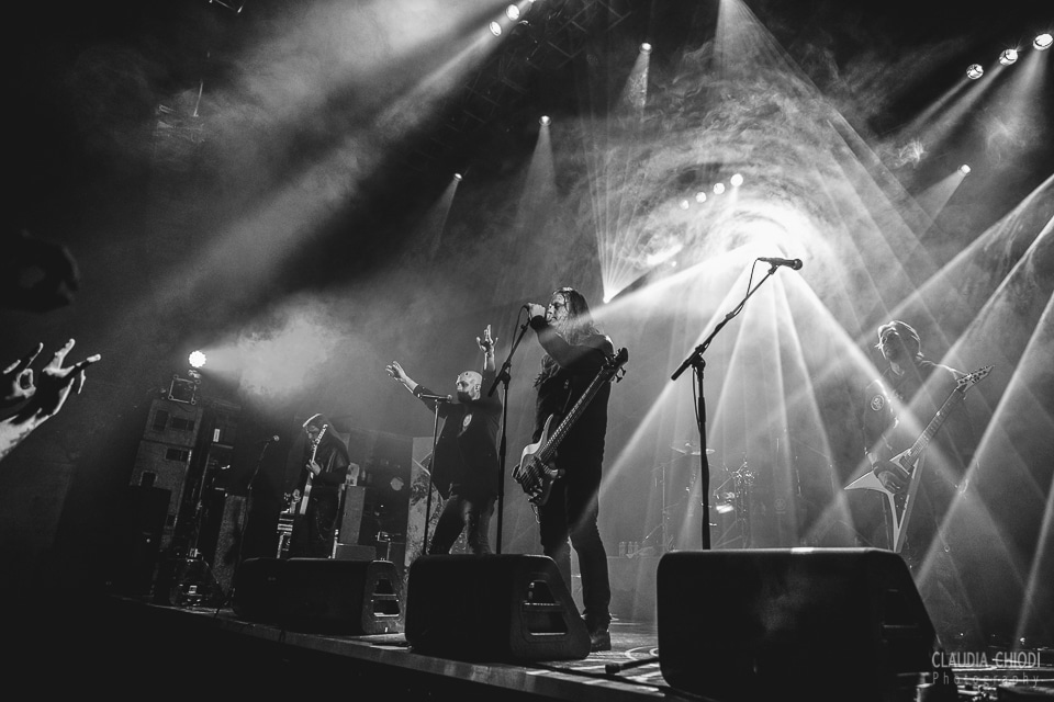 Für einmal eine etwas ungewöhnliche Manöverkritik bei einem Konzert im Z7: Von Seiten der Technik wäre mehr möglich gewesen. Auch bei BLOODBOUND hat diese offensichtlich gezickt, diesmal war in erster Linie die Band betroffen, ohne deren Bemerkung hätte man im Publikum dies kaum bemerkt. Ein wenig mehr Licht wäre ebenfalls wünschenswert gewesen (und das sage ich nicht nur als Fotografin).