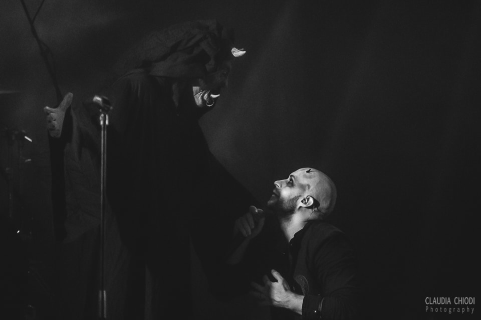 Nachdem mir Fronter Nils Molin von der Formation AMARANTHE her bekannt war, kam ich natürlich nicht umhin, mich mit seiner anderen Band auseinander zu setzen. Die Melodic Metaller aus Stockholm bieten zwar den Auftritt und Anblick mit dem kleinsten Exzentrik-Faktor des Abends, aber genau deswegen sind sie in diesem Line-up auch gut gewählt. Etwas ruhiger und weniger aggressiv als der Opener, aber mit mindestens genauso viel Anziehungskraft, bieten sie die nötige Abwechslung. Mit Firesign kommt recht bald im Set der Titeltrack des aktuellen Albums, gleich darauf gefolgt von The Grey. Und da mein Favorit von dieser Scheibe In The Arms Of A Devil ebenfalls nicht fehlt, bin ich in dieser Hinsicht vollends zufriedengestellt. Leider kann an diesem Abend Nils Stimme teilweise nicht punkten, schlicht, weil die Soundabmischung das nicht zulässt. Die ändert aber nichts an der hervorragenden Stimmung im Z7, so ist denn auch der Herr Sänger mit den Mitmach-Leistungen der Anwesenden bei Titanic Mass zufrieden.