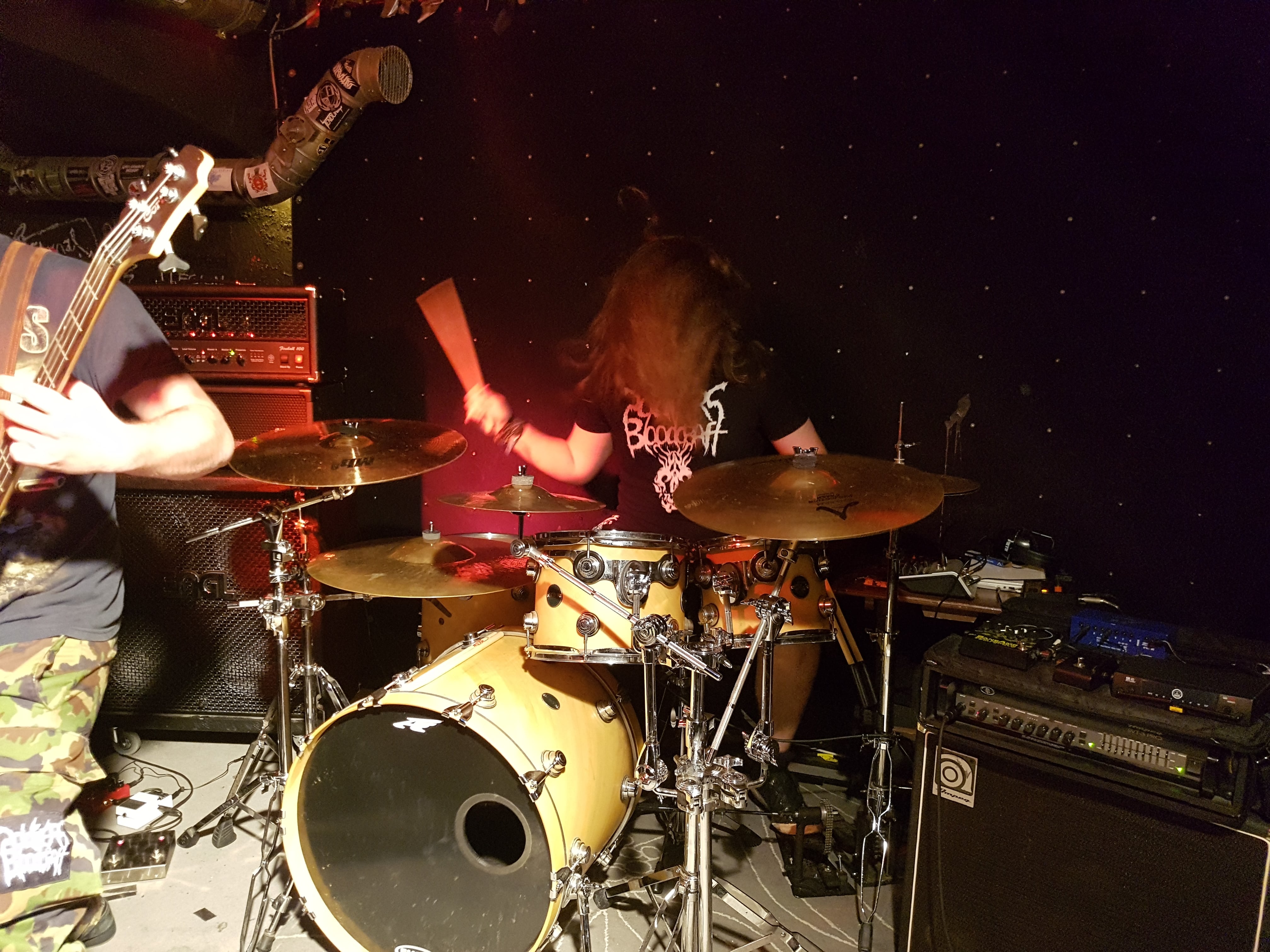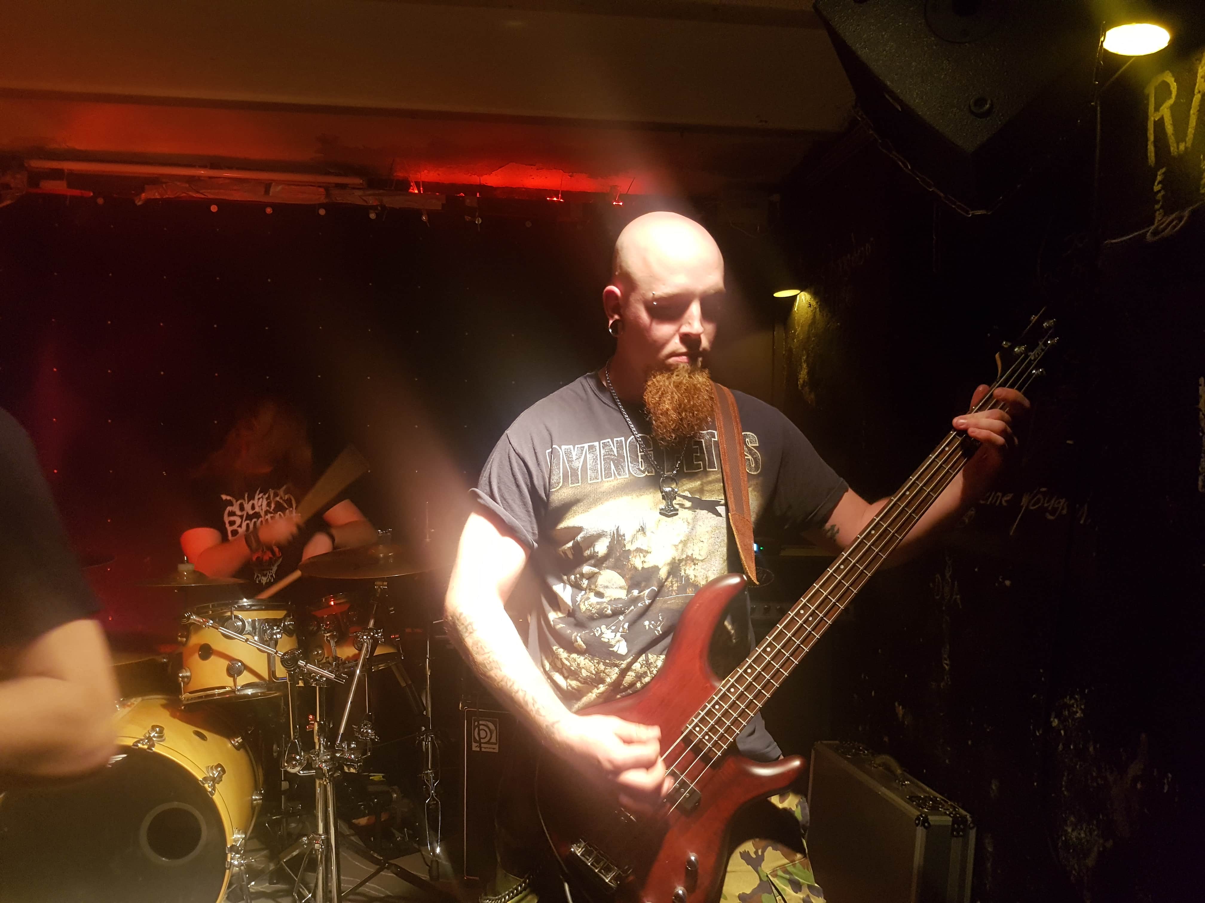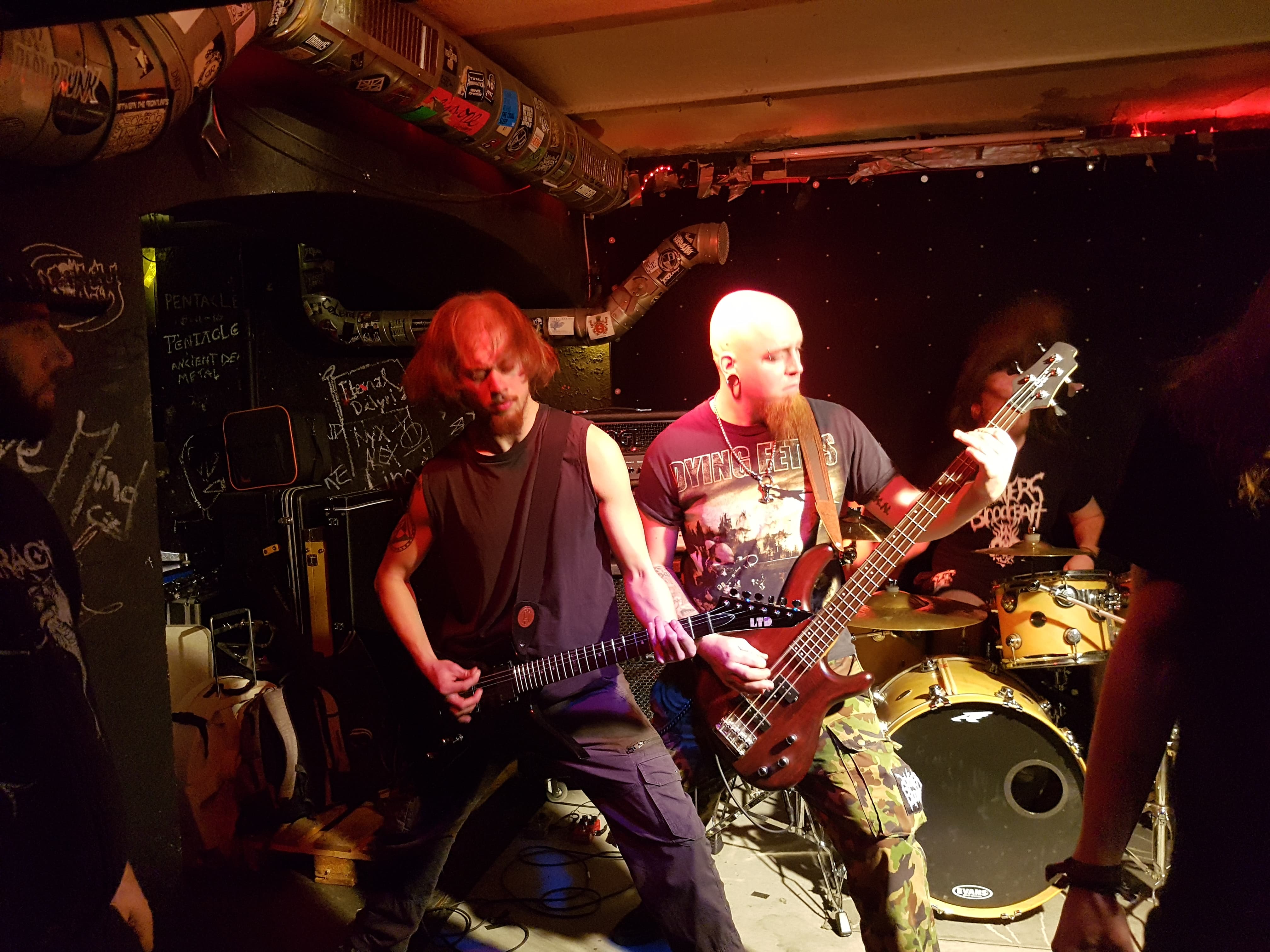 Schnell merkte man dass der Drummer Erebos ein Naturtalent sein muss. Früher immer Gitarre und Gesang und diesmal Drummer. Zwischendurch bei seinem Gesichtsausdruck, konnte man vernehmen, dass er wohl insbrünstig an seine Gitarre denkt. Trotzdem machte er einen gewaltigen Job. Auch der Sänger Tobias war klasse. Er hatt eine Brachiale Stimme, die schon an Bands im Brutal Death Metal Genre errinnern.