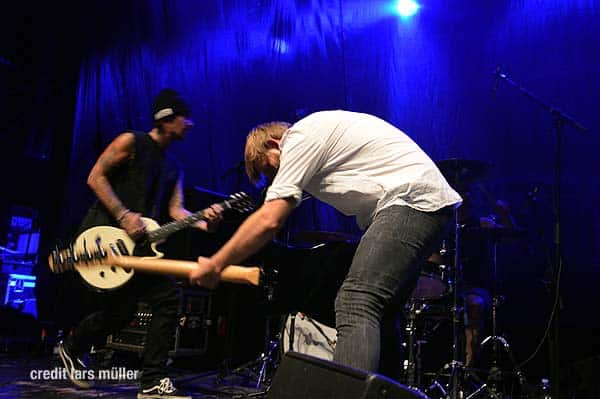 Eine sehr bescheidene Anzahl Leute finden den Weg in die Halle. Die Schweizer beginnen trotzdem schon sehr druckvoll. Diese Punker wissen ganz genau, wie man sich auf der Bühne verhalten muss. Sehr beweglich und mit viel Spielfreude liefern die Jungs eine solide Show ab.