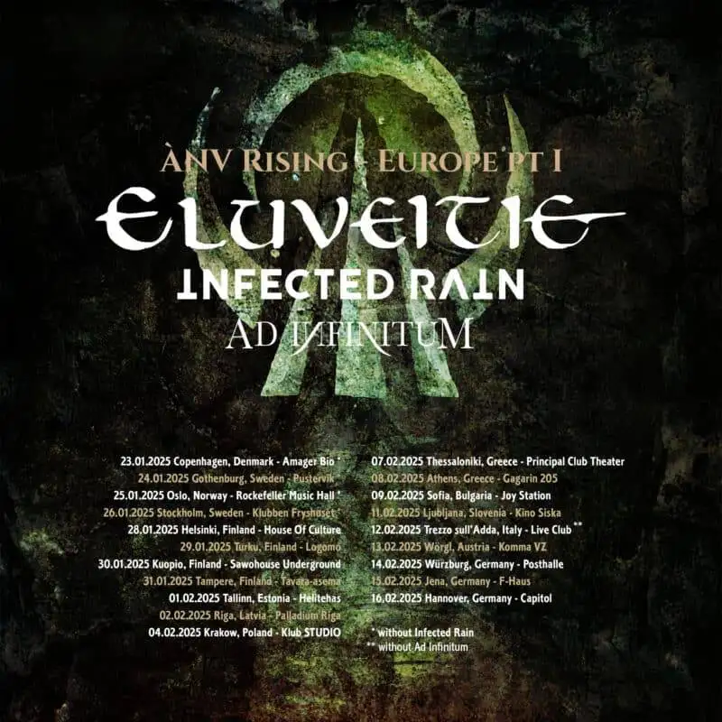 Die Schweizer Metal-Pioniere ELUVEITIE freuen sich, ihre mit Spannung erwartete „ÁNV RISING – EUROPE PT I“-Tour anzukündigen, die Anfang 2025 die Bühnen in ganz Europa elektrisieren wird.