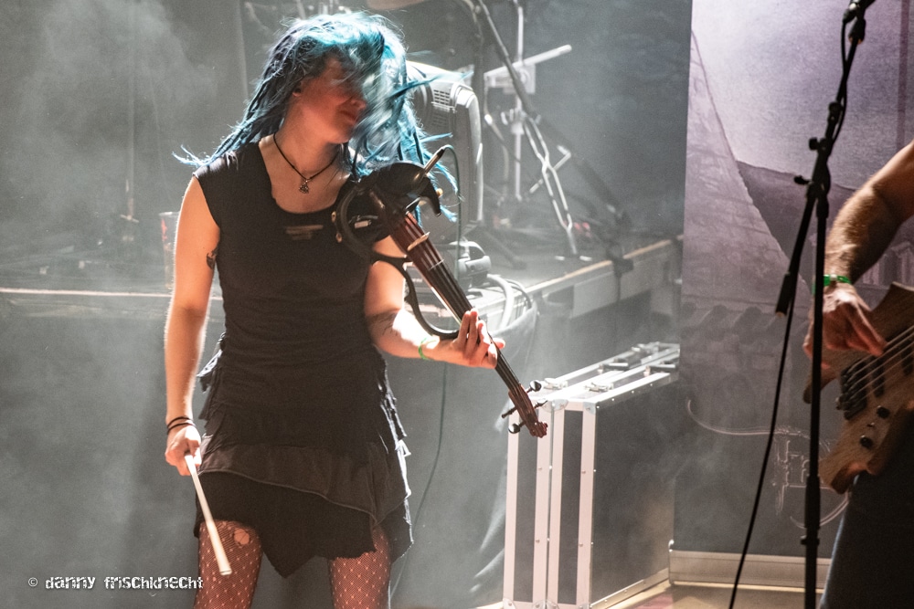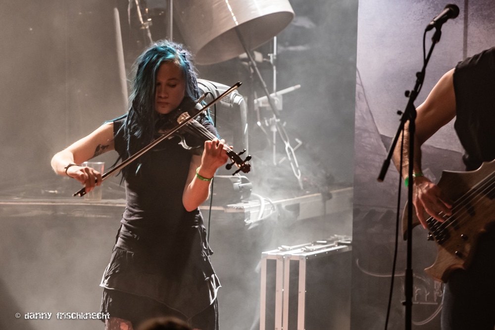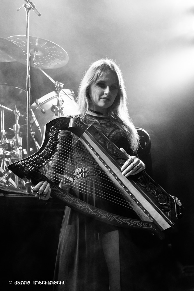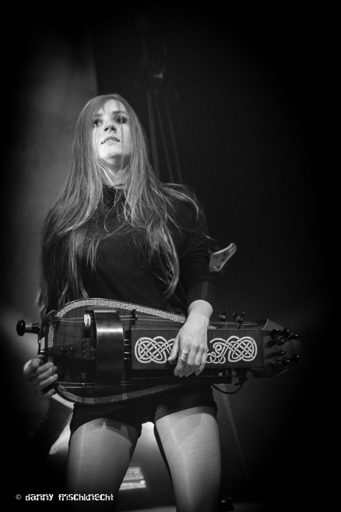 Chrigel Glanzmann und seine Kapelle fackelten nicht lange, Vollgas und ab durch die Mitte. Ich hab die Band seit einiger Zeit nicht mehr so kompakt und druckvoll erlebt, der Funke sprang sofort über, das Gaswerk brodelte schon nach wenigen Minuten. Mit „King“ und „Nil“ lieferten ELU gleich zwei Klassiker ab, legten mit „Death Walker“ und „Black Water Dawn“ sofort zwei Tracks vom neuen Album dazu und kamen dann zu meinem absoluten Lieblingstrack; „Quoth The Raven“. An diesem Song wird gemessen, ob eine Sängerin bei ELU bestehen kann. Für mich ist das nach wie vor einer der dichtesten Tracks von ELUVEITIE, ein absoluter Hookliner, druckvoll und mit Melodietracks, die unter die Haut gehen. Absoluter Höhepunkt sind die Gesangspassagen des Refrains, welche von Chrigels Growls vorbereitet werden. Die perfekten Drums, Gitarrenriffs ohne Schnörkel, eine grooviger Bass und die wiegende Fiedel. Und dann der Höhepunkt: „…hear my cryyyyyyy!“. Obwohl Anna Murphy heute ganz andere gesangliche Qualitäten zeigt, bisher war sie hier das Mass aller Dinge. Und deswegen mein Kompliment an Fabienne Erni – sie wird den Erwartungen gerecht, zeigt hier und den ganzen restlichen Abend, was sie stimmlich drauf hat.