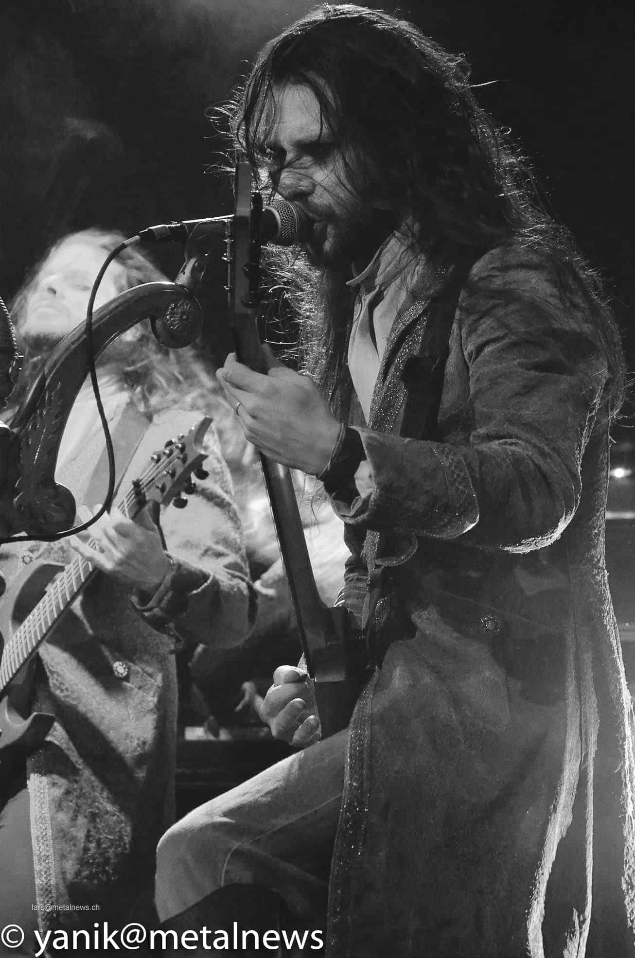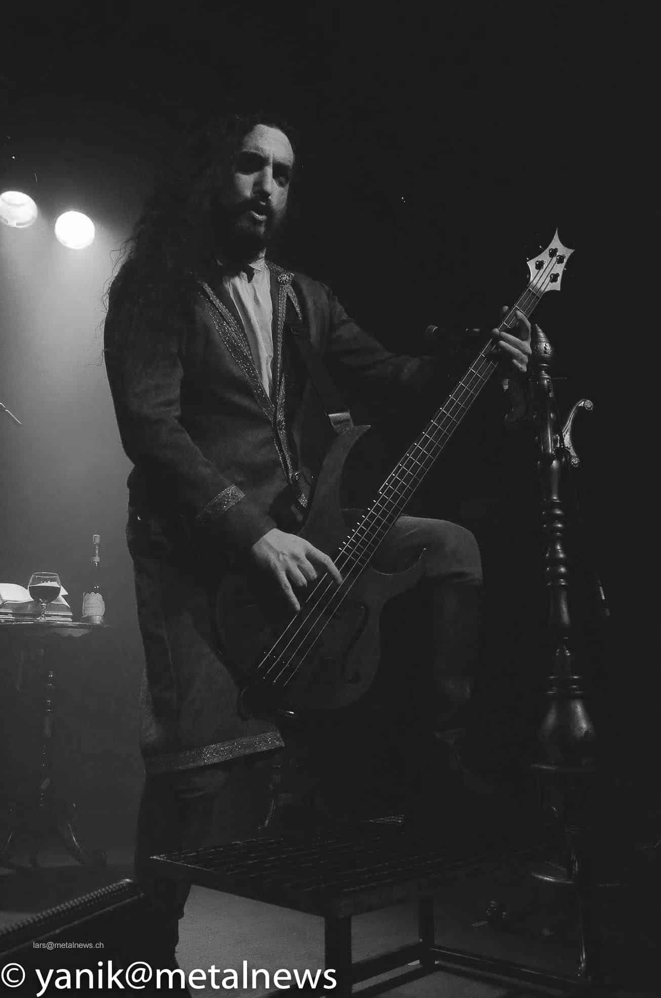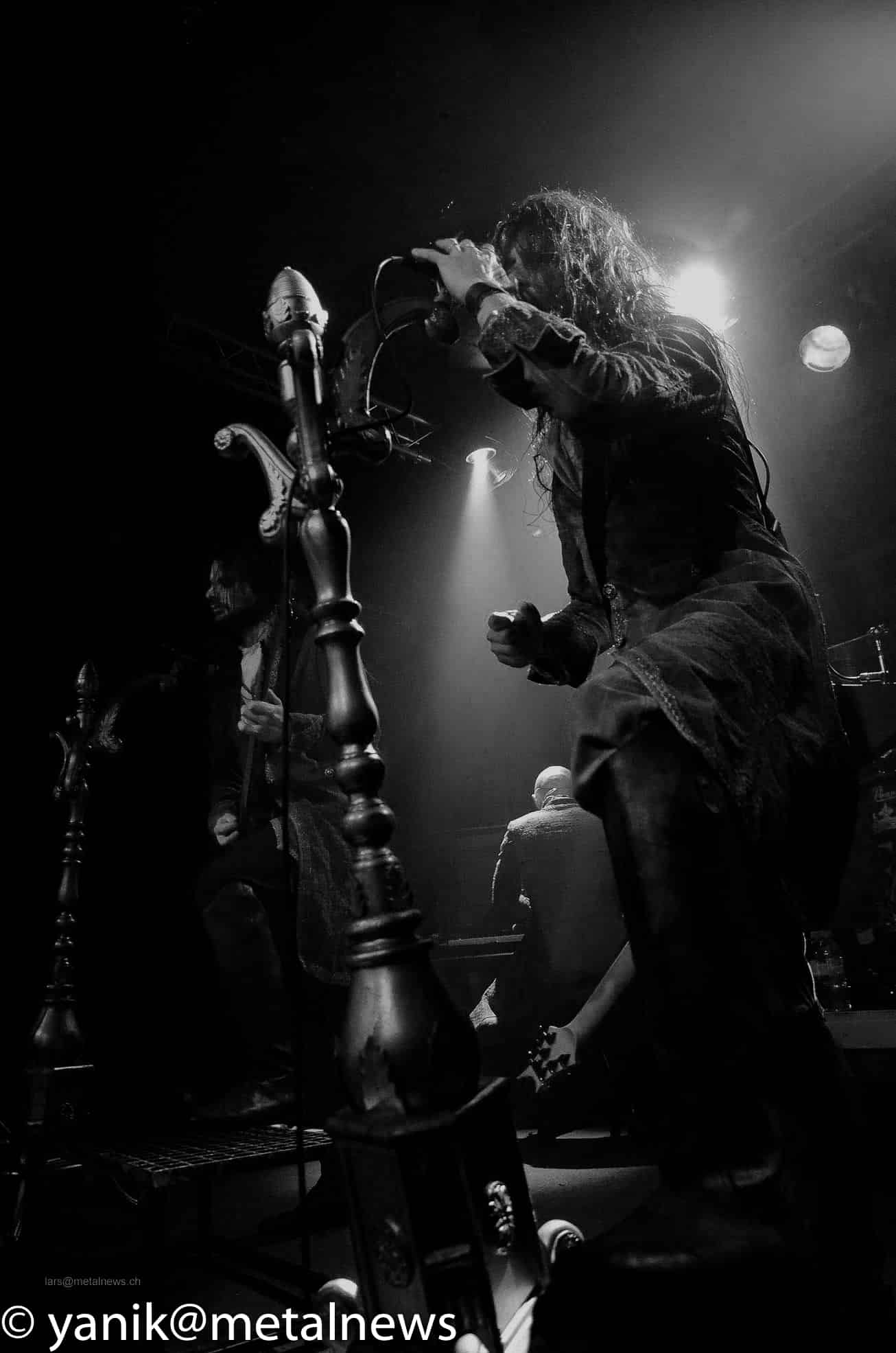 Gefolgt dann von den Bandmitgliedern. Auch diese Herrschaften trugen alterliche Kleidung. Positioniert vor vergoldeten Mikrofon Ständer, legen sie los wie die Feuerwehr. Im Gepäck, haben die Italiener, ihre neuste Scheibe “ King „. Wie man es von FLESHGOD APOCALYPSE kennt, ist ihr Musikstil, alles andere als gewöhnlich. Sie selber nennen sich, Symphonic Technical Death Metal. Dies kam voll zur Geltung. Auch das Gesangsspiel zwischen der Frau und Tommaso war sehr faszinierend. Es sah ständig so aus als würde die Frau Tomnaso auf die Helle Seite der Macht ziehen wollen, nur Tommaso hatte andere Pläne und bleibt auf der Dunklen Seite der Macht. Wie man Stimmung verbreitet, musste man denen nicht erklären. Auch einen Wall of Death, kam zu stande, in der eher kleineren Location. Es machte ganz einfach Spass den Jungs zuzuhören. Natürlich kam auch der Nackenbereich auf seine Kosten bis es schmerzt.