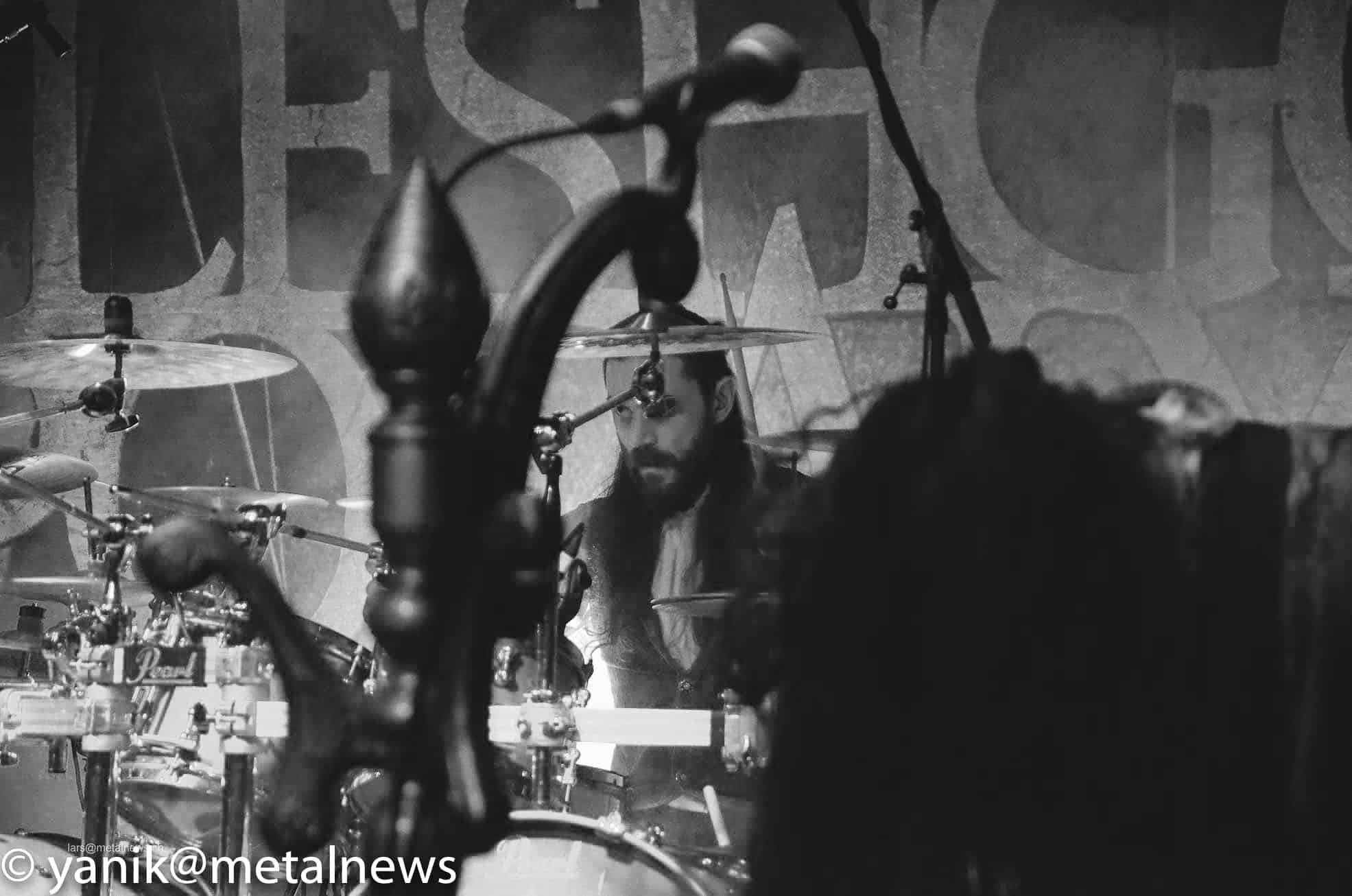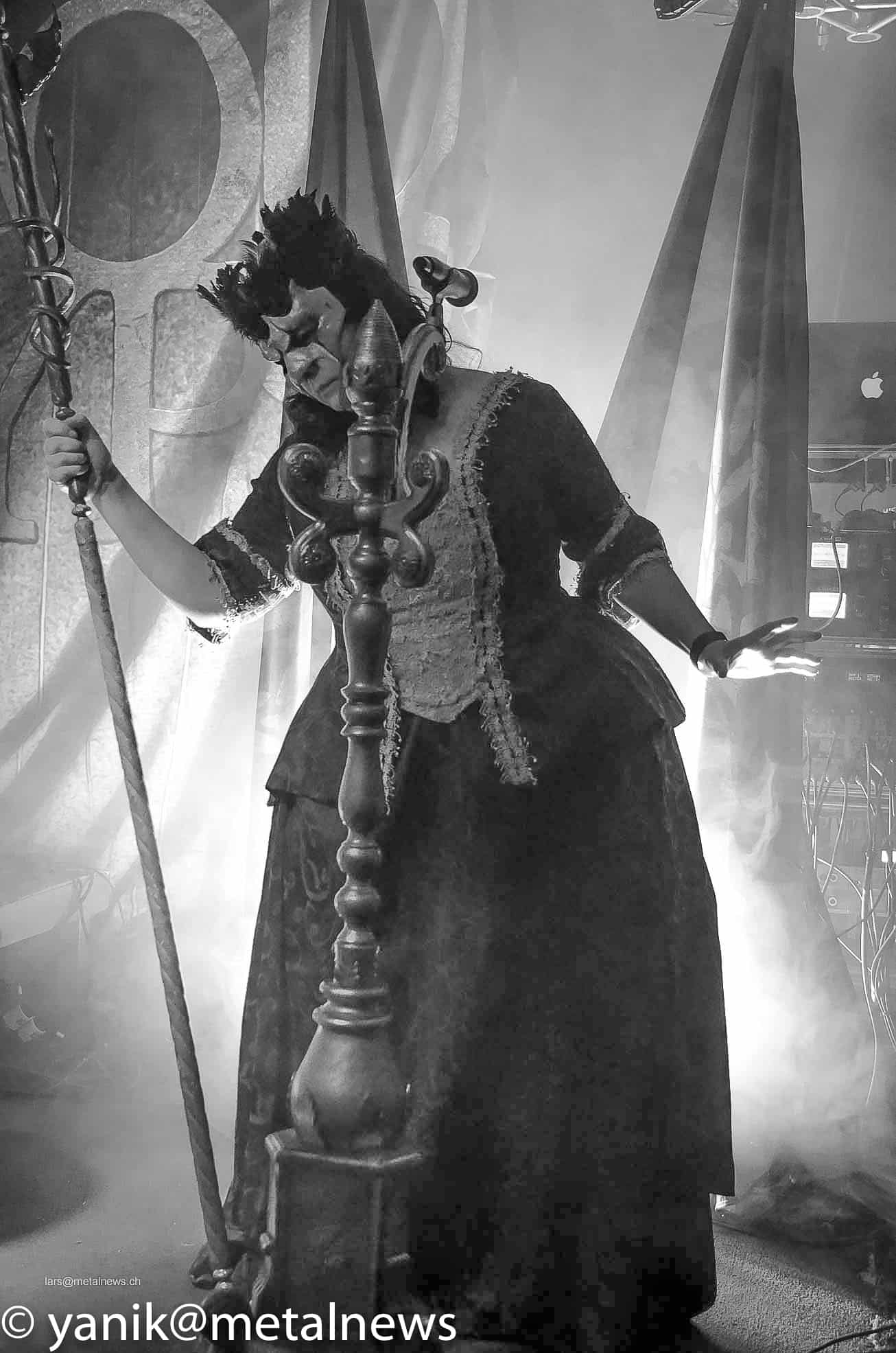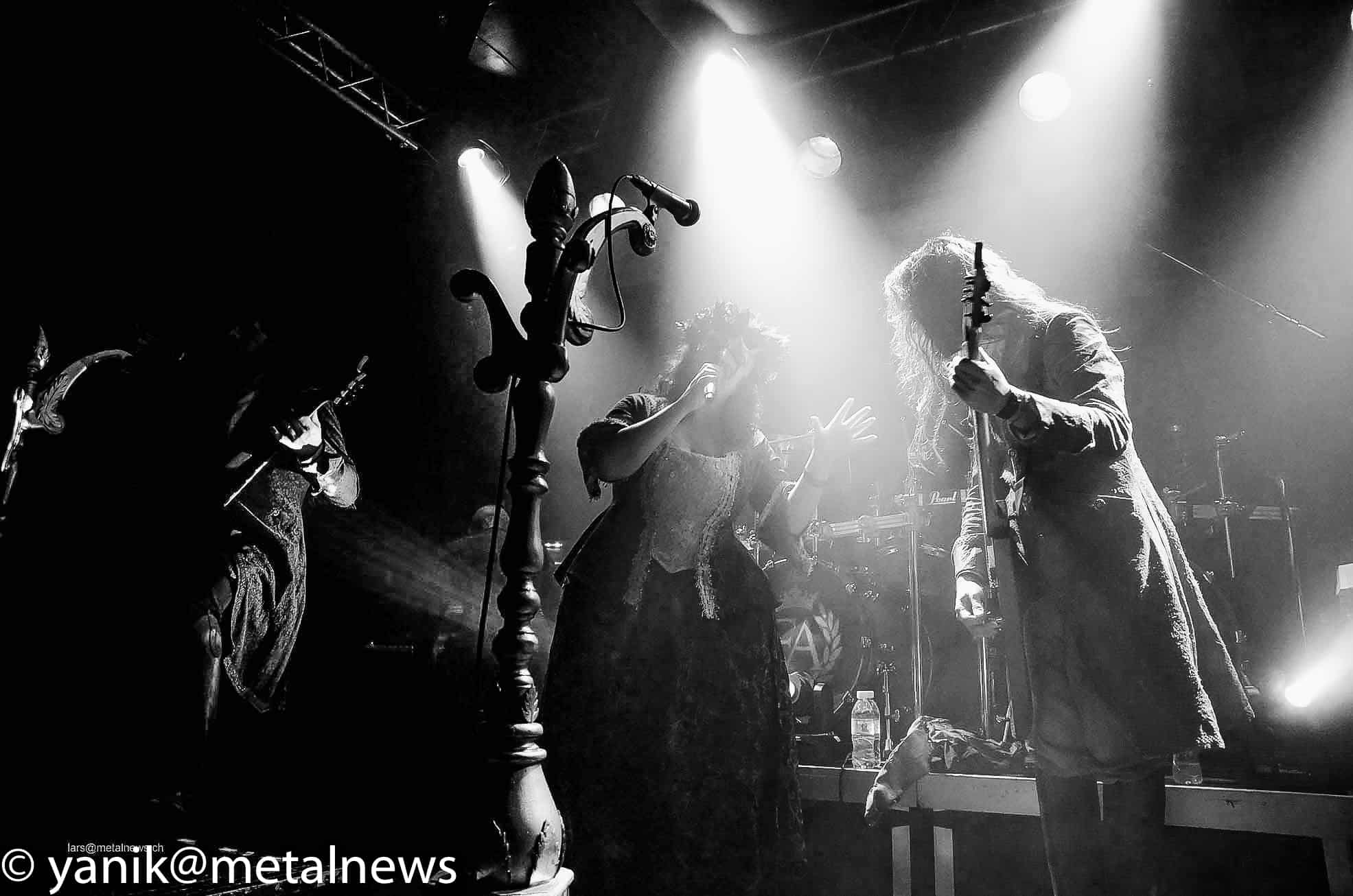 Gefolgt dann von den Bandmitgliedern. Auch diese Herrschaften trugen alterliche Kleidung. Positioniert vor vergoldeten Mikrofon Ständer, legen sie los wie die Feuerwehr. Im Gepäck, haben die Italiener, ihre neuste Scheibe “ King „. Wie man es von FLESHGOD APOCALYPSE kennt, ist ihr Musikstil, alles andere als gewöhnlich. Sie selber nennen sich, Symphonic Technical Death Metal. Dies kam voll zur Geltung. Auch das Gesangsspiel zwischen der Frau und Tommaso war sehr faszinierend. Es sah ständig so aus als würde die Frau Tomnaso auf die Helle Seite der Macht ziehen wollen, nur Tommaso hatte andere Pläne und bleibt auf der Dunklen Seite der Macht. Wie man Stimmung verbreitet, musste man denen nicht erklären. Auch einen Wall of Death, kam zu stande, in der eher kleineren Location. Es machte ganz einfach Spass den Jungs zuzuhören. Natürlich kam auch der Nackenbereich auf seine Kosten bis es schmerzt.