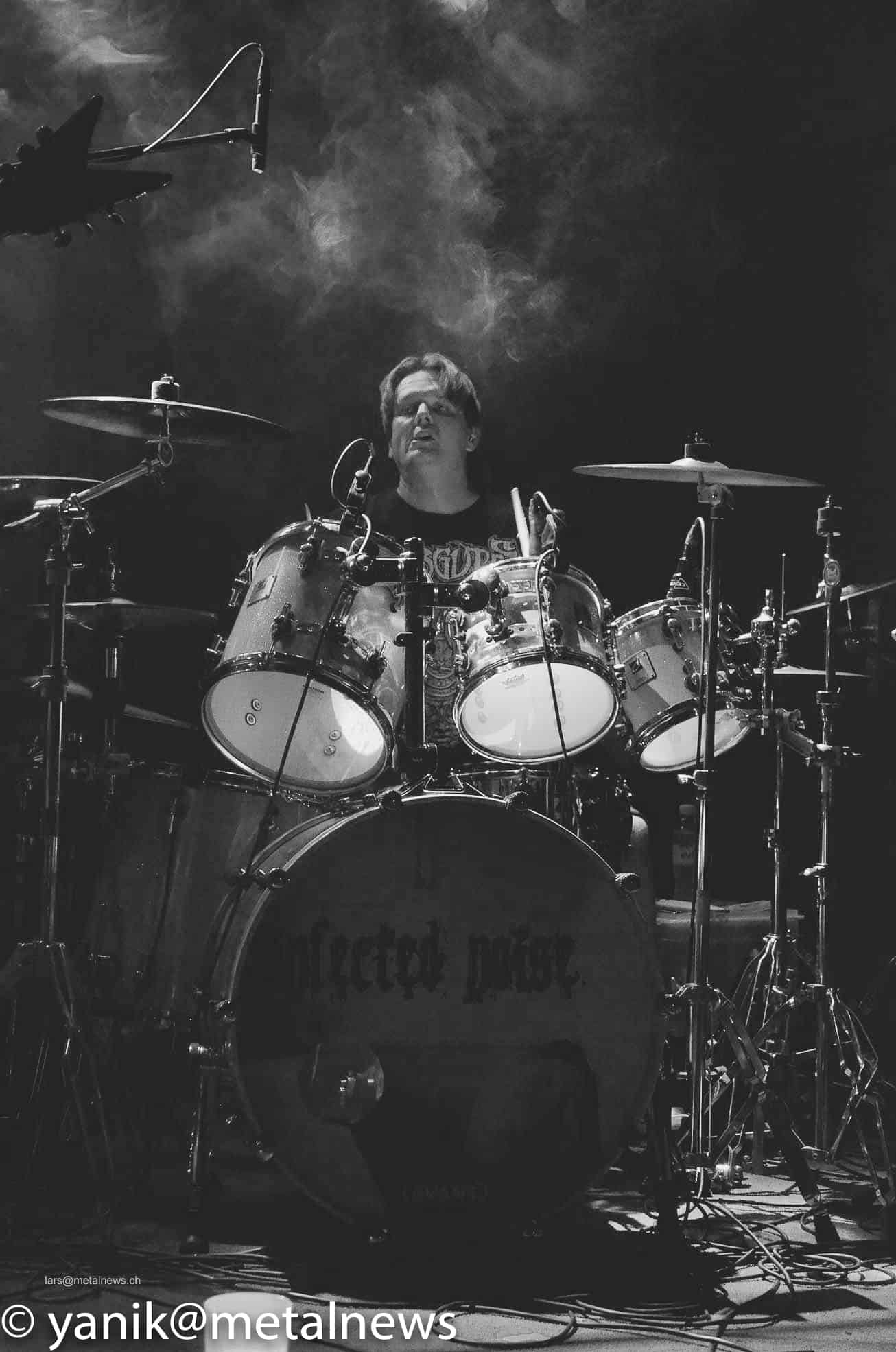 Das letzte mal sah ich die Formation im Ebrietas in Zürich, daher weiss man um das grosse Potential der Frauenfelder. Schon einige fanden den Weg ins Gare de Lion, aber wie es so oft ist wenn Leute die Band nicht kennen gibt es einen extremen Sicherheitsabstand. Vielleicht kennen alle noch das Sprichwort von unseren Eltern “ Was der Bauer nicht kennt, das frisst er nicht „. So kommt es mir leider auch vor bei Bands die man nicht kennt. Schade, dass einige ohne jegliches wissen, der Band vorneweg keine Chance geben, sich zu beweisen. Hätte ich die genau gleiche Einstellung, hätte ich niemals diese sehr symphatische und potentiell starke Band kennengelernt und dies hätte ichvsehr bereut. Der stil ist ganz Simple. Sie spielen knallharten Death Metal. Man kann es auch vergleichen, wie eine Mischung aus DYING FETUS und SIX FEET UNDER. Gewaltiger gehts kaum. Einen Unterschied zum Auftritt im Ebrietas gibt es allerdings. Die Soundqualität ist meilenweit besser. Somit war auch der ganze Auftritt viel besser.