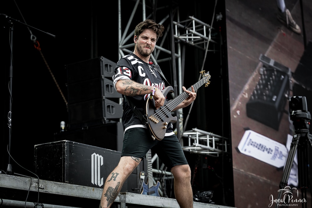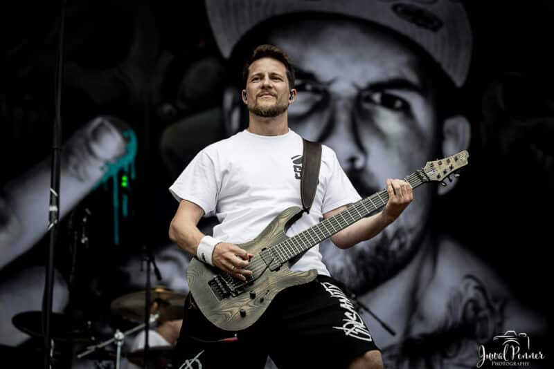 Den Samstags-Start machten die Schweizer von Mindcollision. Mit unglaublich viel Power und Groove nehmen die Zuger die Bühne ein und beginnen, die ersten Nacken für den Tag wieder aufzuwärmen.