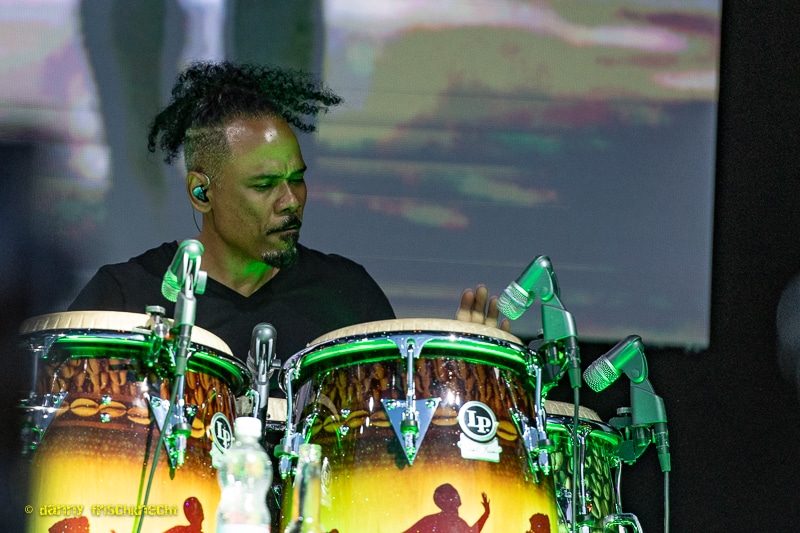 Das Konzert war geprägt von sehr vielen Gitarrensoli. Santana hat es immer noch gewaltig drauf, obwohl er praktisch die ganze Zeit seinen Jahrhundertblick hatte. Immer nur kurze Sequenzen, in denen er grinste. Natürlich war auch seine Band grandios. Mit vielen verschiedenen Instrumente wurde Laune gemacht, eine Show zum Geniessen.