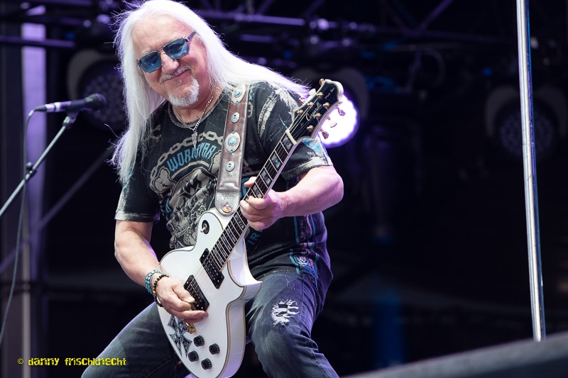 Fünf mal konnte ich die Truppe schon Live erleben und nie wurde ich dabei enttäuscht. Trotz ihrem fortgeschrittenen Alter amüsierten sich die Herren auf der Bühne wie Kleinkinder. Ein echter Genuss. Die Freude war riesig. Ich durfte Bernie Shaw und Co. fotografieren. Allerdings nach meinem Fotoeinsatz, rutschte das Konzert etwas ins Hintertreffen, weil die Schweiz gegen Serbien an der Fussball WM spielte. Meine Kollegen und ich starrten dann auf mein Handy und guckten neben dem Geschehen auf der Bühne das Spiel.