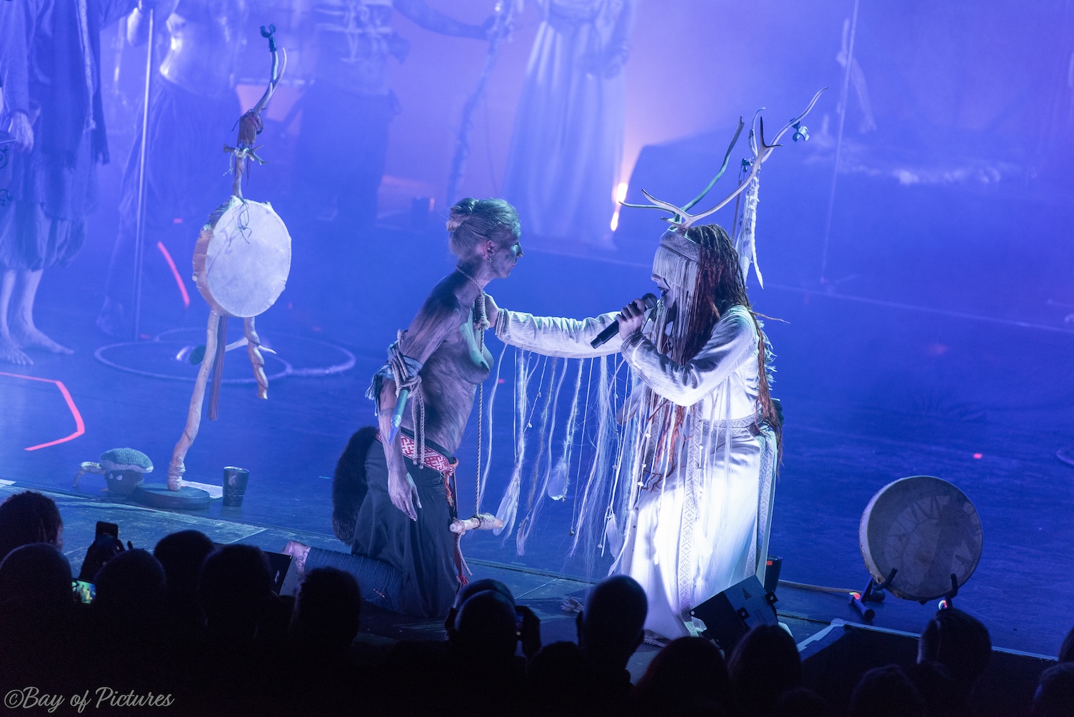 Für die, die sie noch nicht kennen, HEILUNG sind eine deutsch-dänisch-norwegische Nordic-Ritual-Folk-Band was ich fast auch ein bisschen wie Theater empfinde. Es isch sehr schwierig, das alles in Worte zu fassen. Jedenfalls wird am Anfang mit einem kleinen Ritual begonnen. Im Hintergrund hört man Waldgeräusche. Das Publikum war mucksmäuschenstill im sehr vollen Volkshaus. Irgendwie gespenstig.