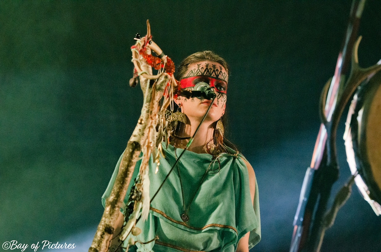 Und jetzt sind alle ready, somit beginnen sie mit dem eigentlichen Konzert! Was einfach mal auffällt, sind die Geweihe überall, sogar bei der Sängerin und beim Sänger auf dem Kopf. Sehr speziell, doch sehr passend!