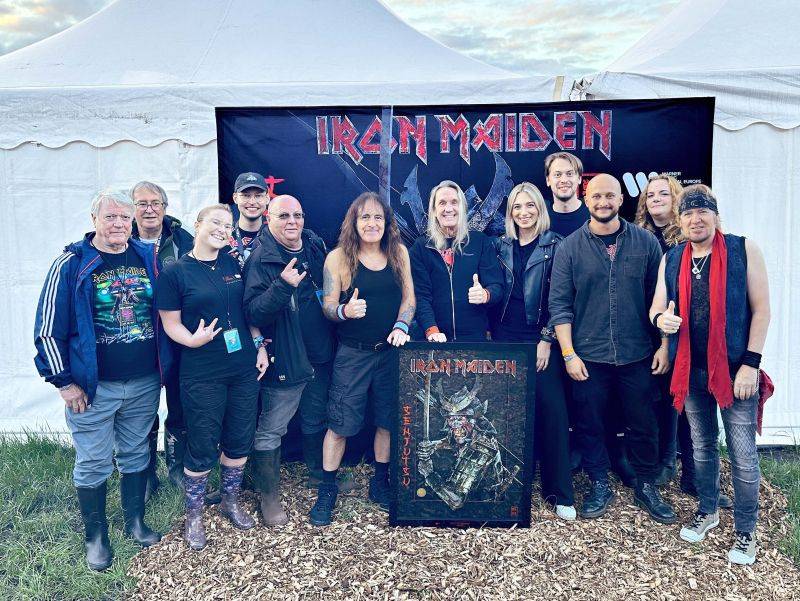 Warner Music hat den letzten Deutschlandaufenthalt der legendären britischen Metal-Ikonen Iron Maiden genutzt, um ihnen den Gold-Award für ihr Album „Senjutsu“ zu überreichen. Das Studioalbum, das 2021 veröffentlicht wurde und direkt auf Platz 1 einstieg, hielt sich im September vier Wochen in Folge in den Top 5 der Offiziellen Deutschen Album-Charts; insgesamt war es ganze 29 Wochen in den Album-Charts platziert. Für Iron Maiden ist es die bereits sechste Gold-Auszeichnung mit dem sechsten Album in Folge in Deutschland. Die Pressestimmen zu „Senjutsu“ feierten das Album schon damals als „die beste Maiden-Platte seit ‘SOMEWHERE IN TIME’“ (Classic Rock) und „eines der stärksten Maiden-Alben nach der Reunion“ (Deaf Forever).