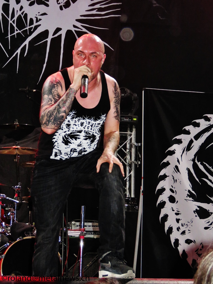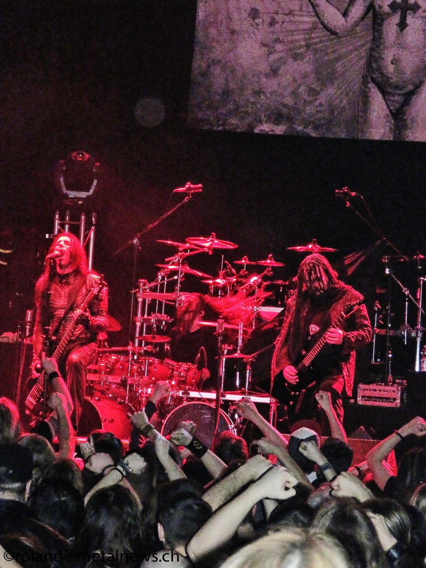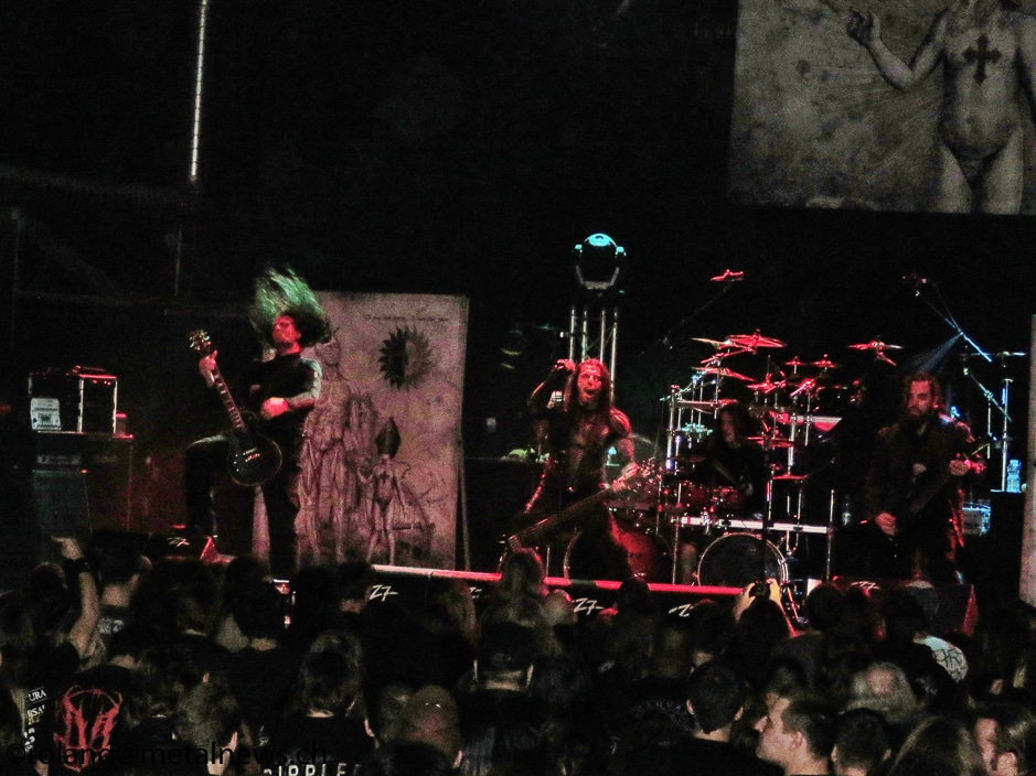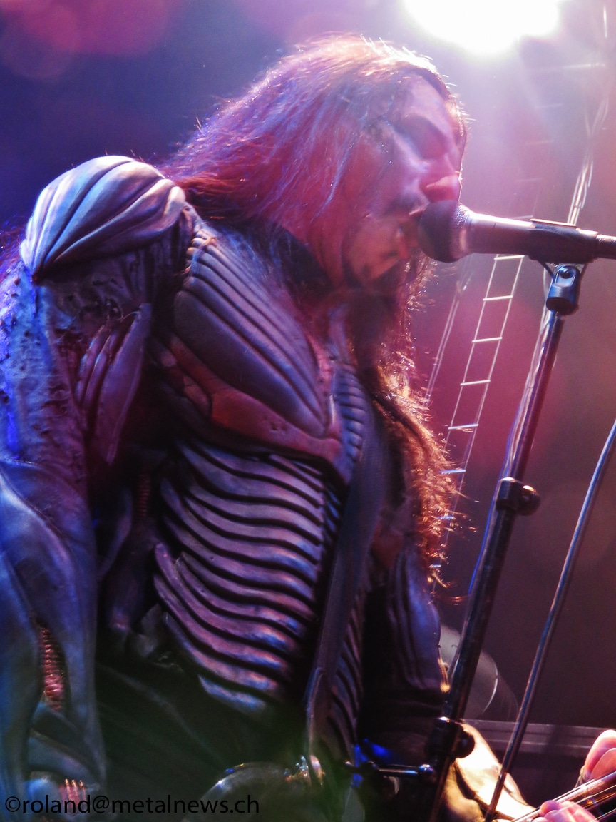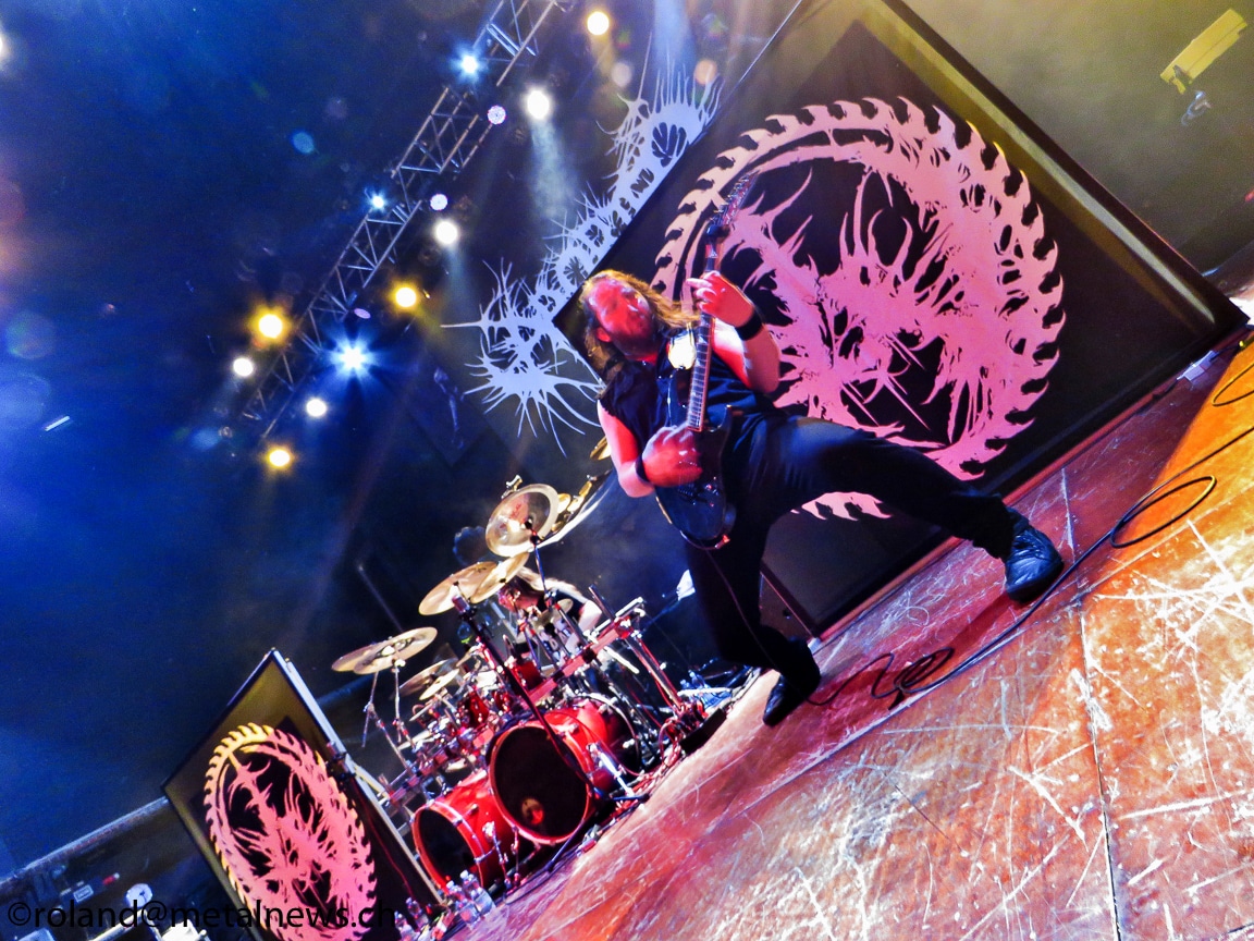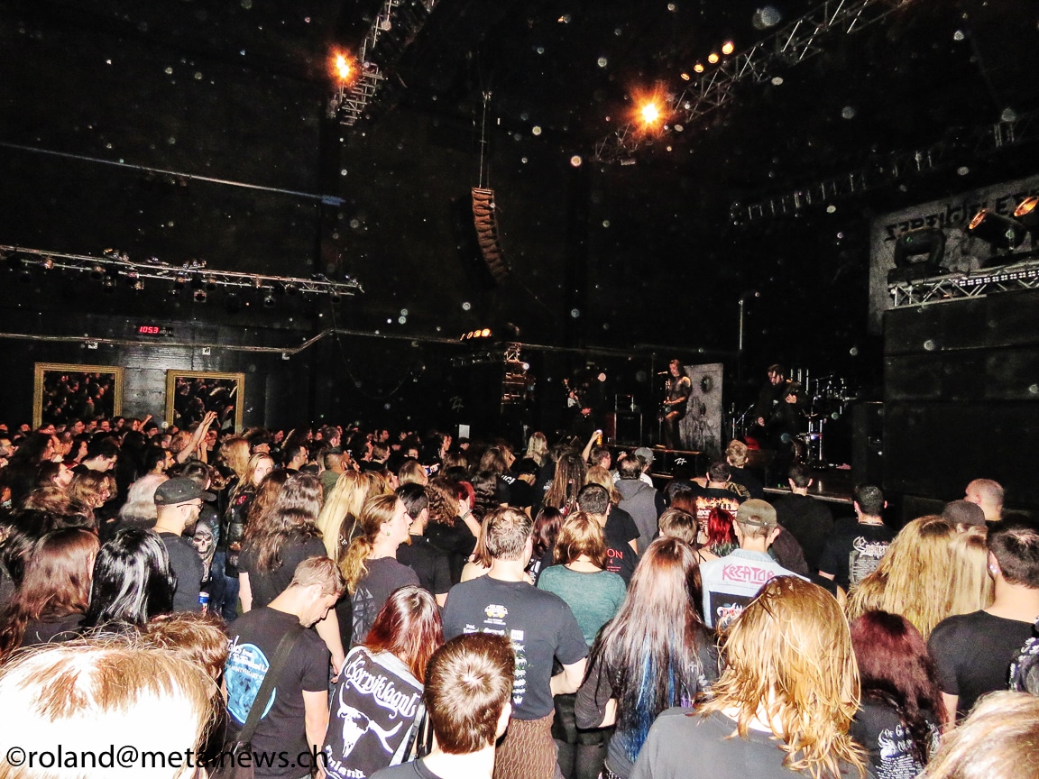 Schon nach wenigen Minuten entdecke ich ein paar bekannte Gesichter, das Z7 ist eben schon DER Treffpunkt für die schweizerische Metalszene und die ist ja nicht so immens gross. Nachdem ich mit diesen Freunden ein paar Worte gewechselt habe, beginnt auch schon die erste Band zu spielen, es ist dies die belgische Death Metal- und Grindcore-Band ABORTED. Die ersten drei Songs darf ich aus der ersten Reihe verfolgen, ein Privileg für akkredierte Fotografen. Auch dort entdecke ich ein mir bekanntes Gesicht. Zugegebenermassen spielt mir ABORTED zu Beginn zu schnell, ich gewöhne mich aber recht schnell daran. Nach den ersten drei Songs gehe ich hinter die Abschrankung vor der Bühne, bin danach also immer noch sehr nahe am Geschehen. Die aus fünf Mitgliedern bestehende Band macht ordentlich Stimmung, gegen Ende des Konzerts, genauer gesagt beim Song „Sanguine Verses (…Of Extirpation)“, bildet sich sogar eine Wall of Death und ich stehe direkt daneben. Ausschnitte von diesem ABORTED-Gig kann man sich übrigens auf meinem Youtube-Channel „JudR666“ anschauen, die Songs „Sanguine Verses (…Of Extirpation)“ sowie „The Saw And The Carnage Done“ habe ich nämlich in voller Länge gefilmt und hochgeladen.