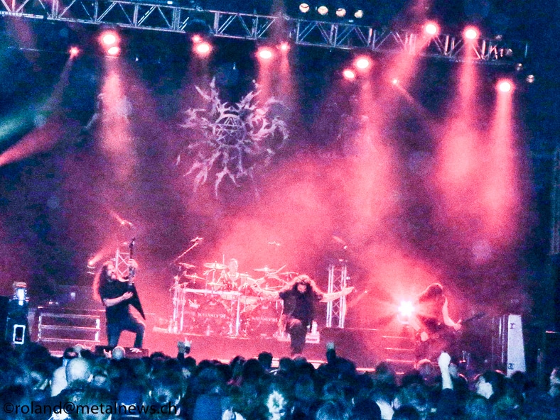 Während der Pause zwischen SEPTICFLESH und dem Headliner muss ich meinem Schlafmangel Tribut zollen: Ich schlafe fast im Stehen ein. Deshalb mache ich nur noch ein paar wenige Fotos vom Auftritt der kanadischen Death Metal-Band KATAKLYSM aus dem hinteren Bereich des Z7 heraus und begebe mich dann zu meinem Hotel. Von Feunden, die den den gesamten KATAKLYSM-Gig gesehen haben und im gleichen Hotel übernachtet haben, erfahre ich am nächsten Morgen, dass ich echt etwas verpasst habe, KATAKLYSM habe eine super Show abgeliefert. Da ich sie schon mehrmals live gesehen habe und sie zu meinen Lieblingsbands gehören glaube ich ihnen das sofort. Ein wenig enttäuscht und mit dem Vorsatz es beim nächsten Besuch im Z7 besser zu machen nehme ich meine Heimreise in Angriff.