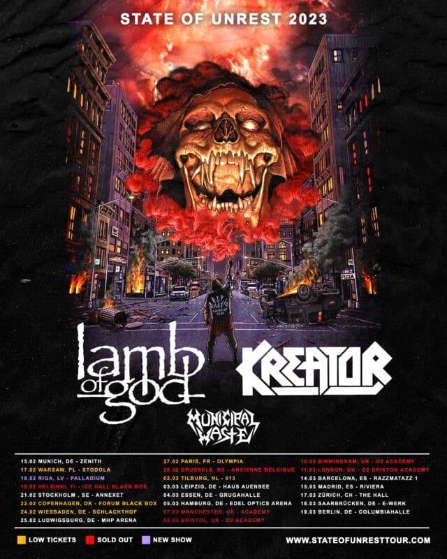 Für Ihre 2023er Europatour haben LAMB OF GOD und KREATOR als Support MUNICIPAL WASTE bekannt gegeben.