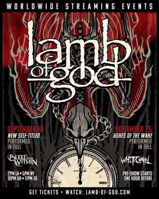 Die Livestreams finden am 18. und 25. September statt Ihr vermisst die Wildheit, den Groove und die Aggression der einzigartigen Liveperformance von LAMB OF GOD? Nun… Das Warten hat ein Ende.