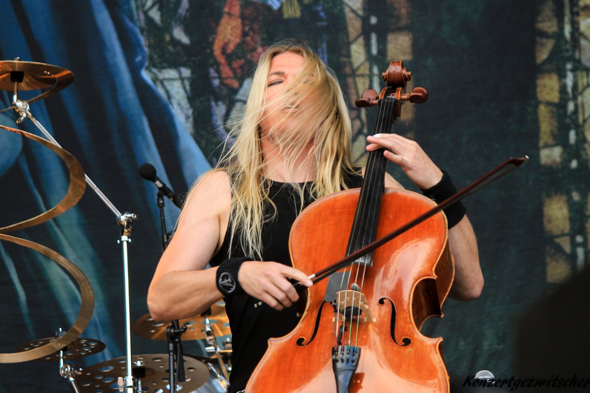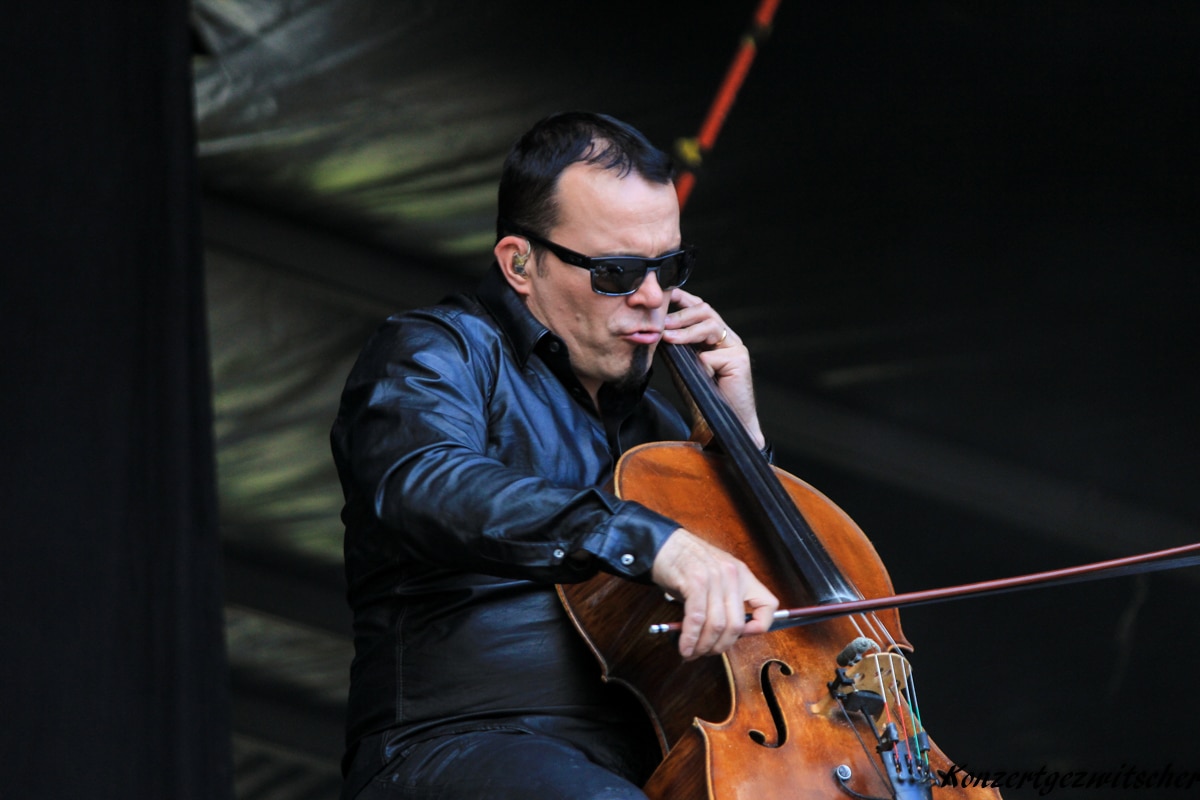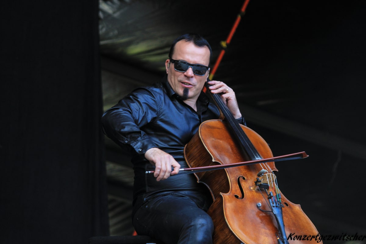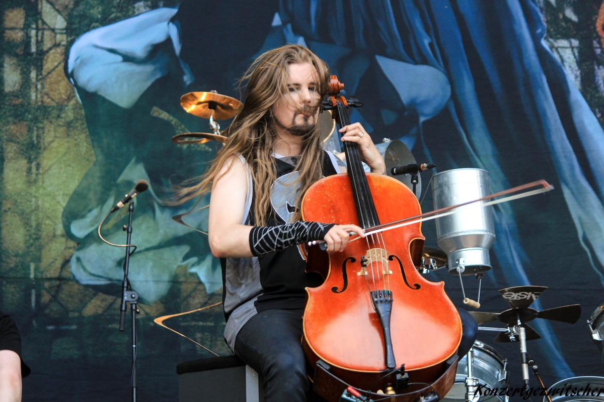 leo@metalnews (Bilder und Text) | Ein Berufskollege von mir scherzt stets: APOCALYPTICA, das ist so ziemlich die perfekte Band für Umbaupausen. Denn zwar schaut das Saitenspiel der Finnen für die ersten drei Songs durchaus spektakulär aus, doch nutzt der Wow-Effekt sich auch auf der großen Bühne des GREENFIELD FESTIVALS sich bereits nach wenigen Momenten spürbar ab. Um dies gleich klarzustellen: Dies ist keine Kritik an der Kunst des virtuosen Quartetts, doch besitzen die instrumentalen Stücke von Eicca Toppinen, Perttu Kivilaakso und Co nicht genügend Feuer, um das Publikum auf dem Stimmungslevel zu halten, welches einem Festival dieser Größenordnung angemessen ist. Erschwerend kommt bei ihrem Auftritt in Interlaken dazu, dass die Setliste von APOCALYPTICA an diesem Tag wenig Abwechslung hergibt: So herrscht zwar frenetischer Jubel, als die Jungs „eine ganze Stunde METALLICA-Songs“ ankündigen, doch schon nach der Hälfte des Gigs flacht die Begeisterung merklich ab. Er ist eben nicht zu ersetzen, ein charismatischer Frontmann, der den Zuhörern in nachmittäglicher Dämmerlaune in den Hintern tritt und sie animiert. Da hilft auch die Aufforderung nicht, selbst zum Sänger von APOCALYPTICA zu werden. Netter Versuch dennoch, APOCALYPTICA.