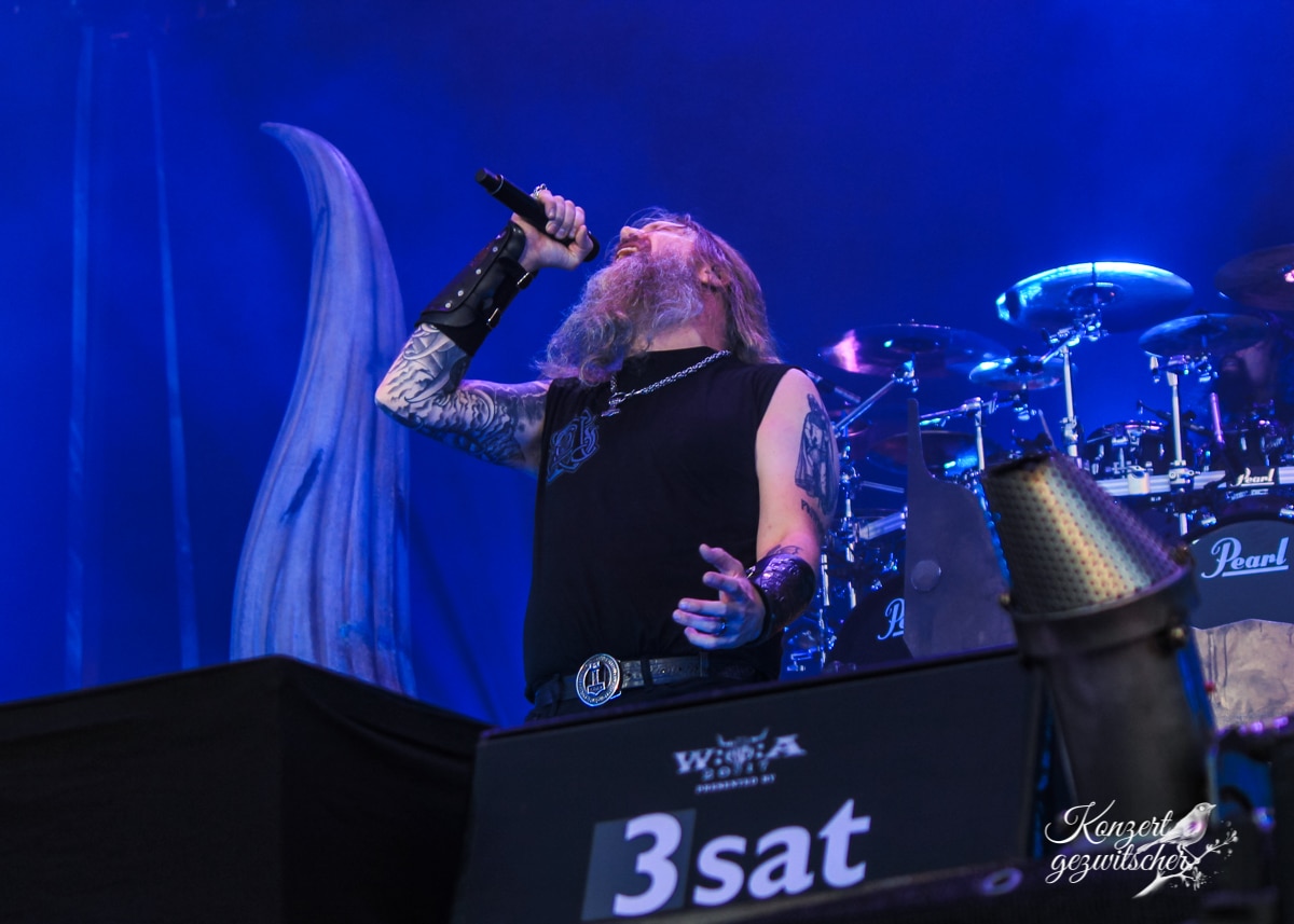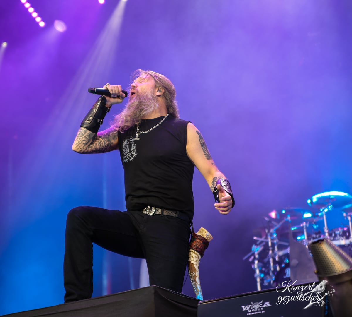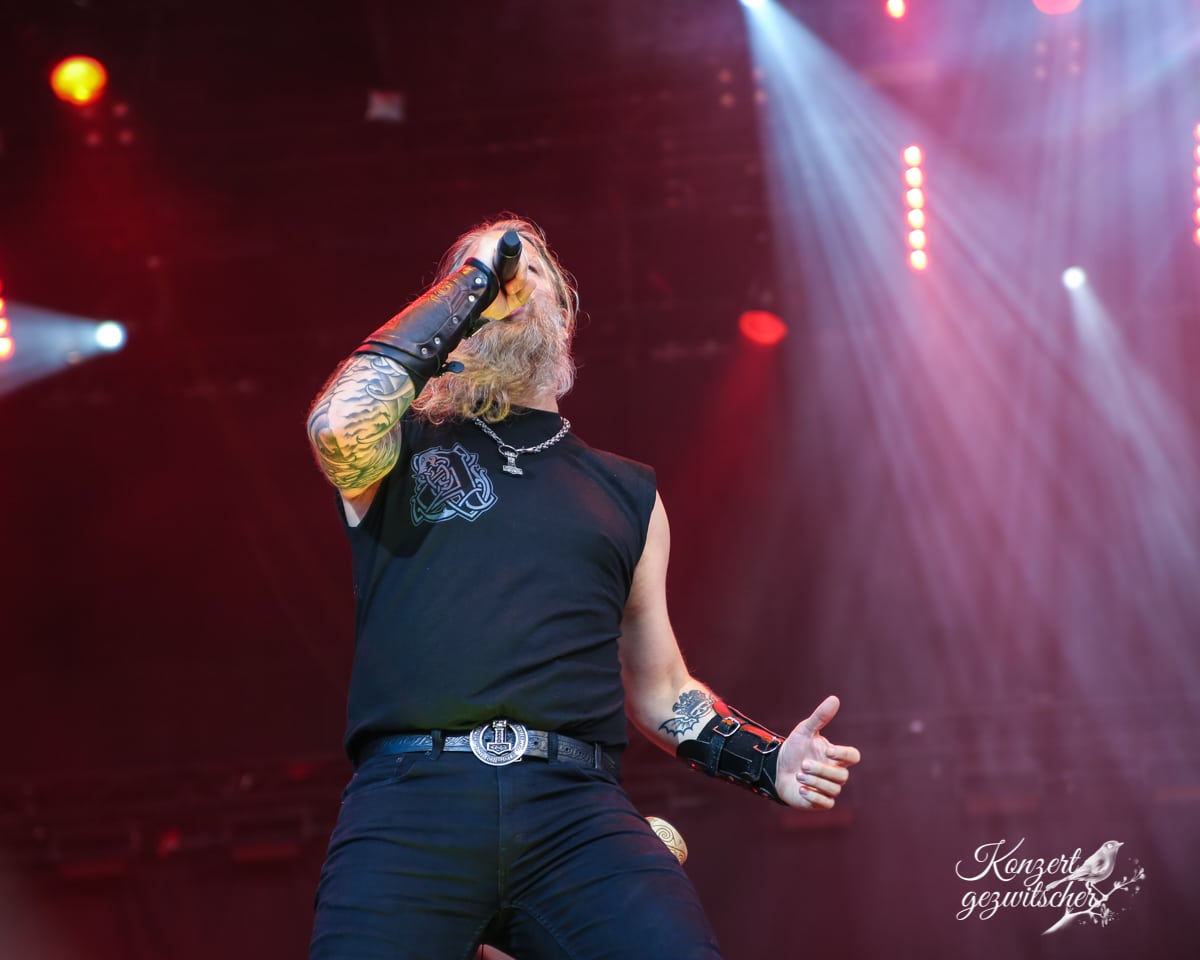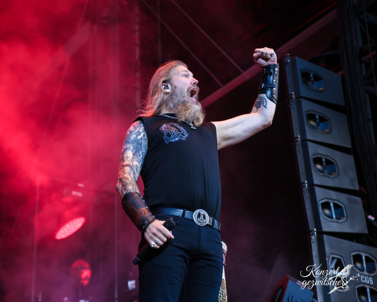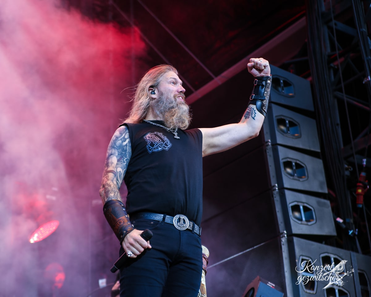 Raise Your Horns, WACKEN! Was für eine Bühnenpräsenz! Die Wikinger erobern den hohen Norden und haben das Festival ruckzuck fest in der Hand. Es genügt eine kurze Handbewegung von Sänger Johan Hegg und tausende folgen seinem Ruf. Ein unglaubliches Schauspiel vor dem stilisierten Wikingerhelm, der das Bühnenbild der Schweden darstellt. Es entwickelt sich eine Eigendynamik, von der AMON AMARTH selbst überwältigt zu sein scheint, dem seligen Lächeln und Strahlen der Musiker nach. Doch diese Begeisterung haben sich die Herren auch verdient: Authentisch und mit einer wilden, brachialen Attitude, AMON AMARTH zeigen sich auf dem WACKEN OPEN AIR als echte Publikumslieblinge, denen man jedes einzelne Wort, das sie auf der Bühne singen, bedingungslos glaubt. Dazu noch der gutturale Gesang von Johan Hegg – einer der wenigen Männer, die mich anschreien dürfen und ich erwische mich selbst dabei, wie ich vor lauter Begeisterung vergesse, zu fotografieren. Sie faszinieren eben auch heute noch, die stolzen Helden und heroischen Krieger der Wikinger.