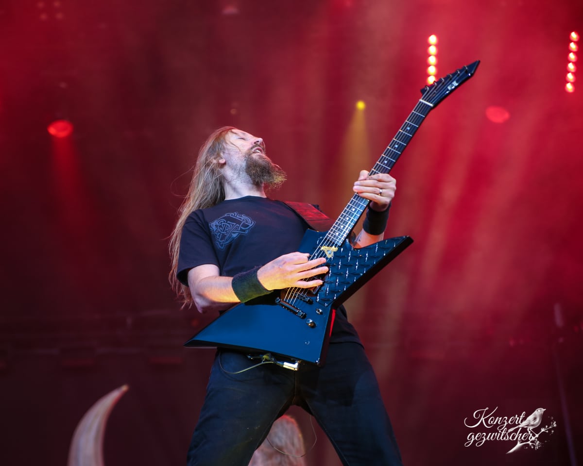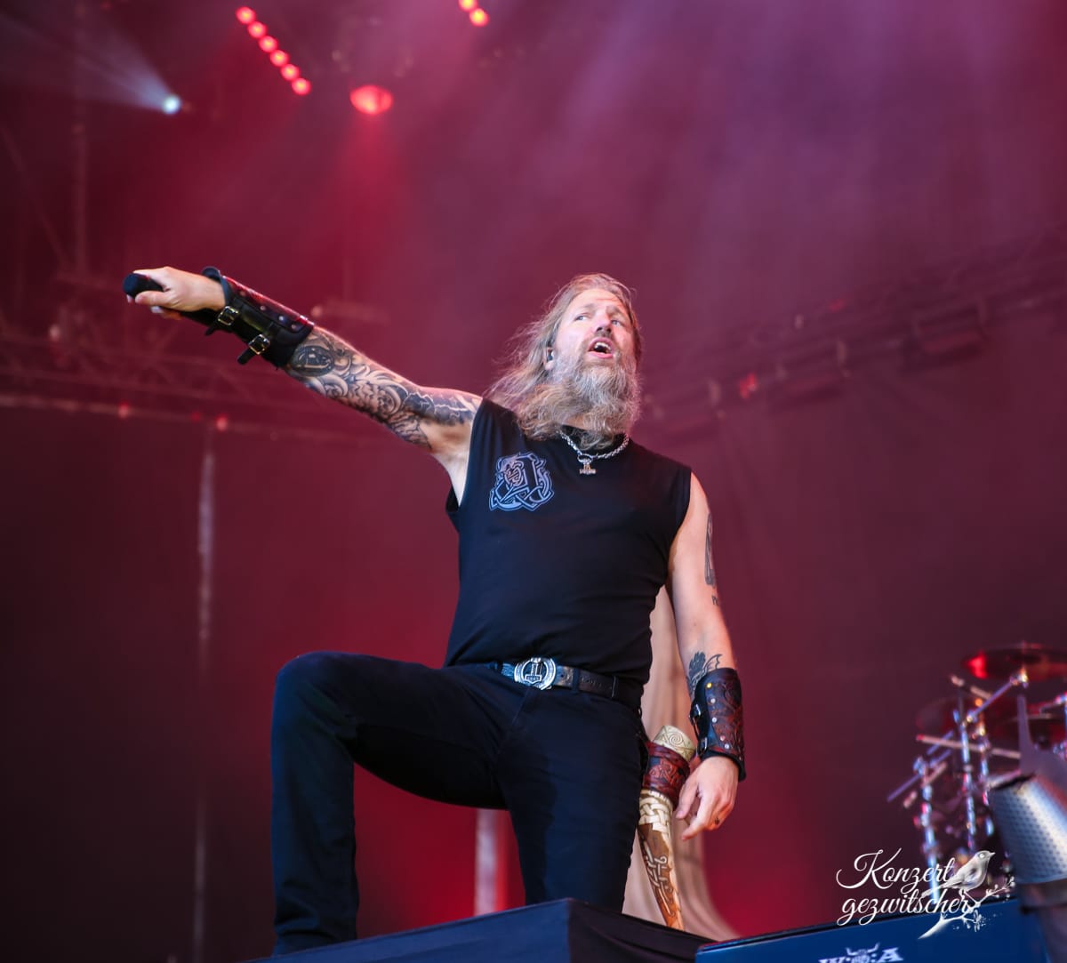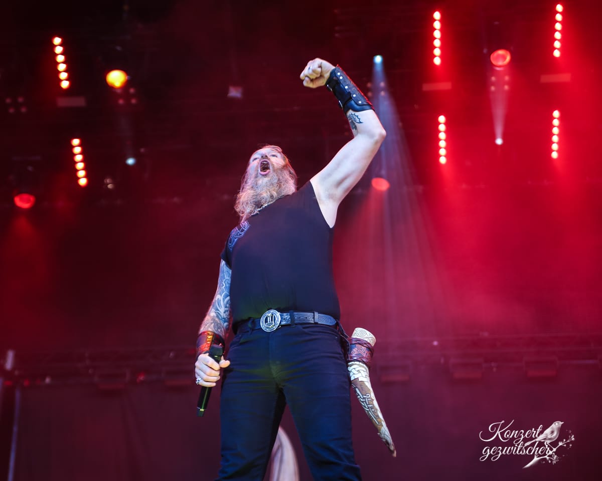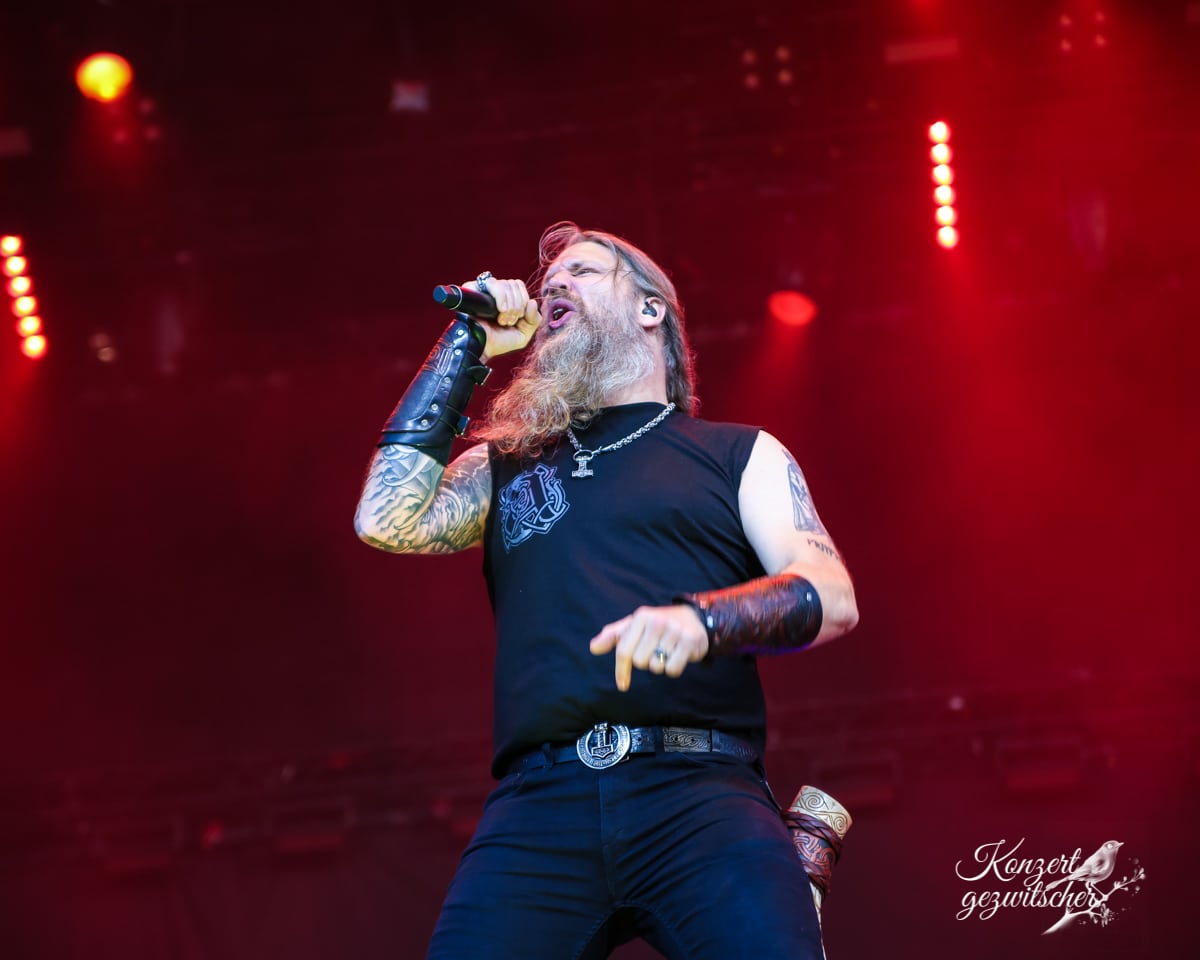 Raise Your Horns, WACKEN! Was für eine Bühnenpräsenz! Die Wikinger erobern den hohen Norden und haben das Festival ruckzuck fest in der Hand. Es genügt eine kurze Handbewegung von Sänger Johan Hegg und tausende folgen seinem Ruf. Ein unglaubliches Schauspiel vor dem stilisierten Wikingerhelm, der das Bühnenbild der Schweden darstellt. Es entwickelt sich eine Eigendynamik, von der AMON AMARTH selbst überwältigt zu sein scheint, dem seligen Lächeln und Strahlen der Musiker nach. Doch diese Begeisterung haben sich die Herren auch verdient: Authentisch und mit einer wilden, brachialen Attitude, AMON AMARTH zeigen sich auf dem WACKEN OPEN AIR als echte Publikumslieblinge, denen man jedes einzelne Wort, das sie auf der Bühne singen, bedingungslos glaubt. Dazu noch der gutturale Gesang von Johan Hegg – einer der wenigen Männer, die mich anschreien dürfen und ich erwische mich selbst dabei, wie ich vor lauter Begeisterung vergesse, zu fotografieren. Sie faszinieren eben auch heute noch, die stolzen Helden und heroischen Krieger der Wikinger.