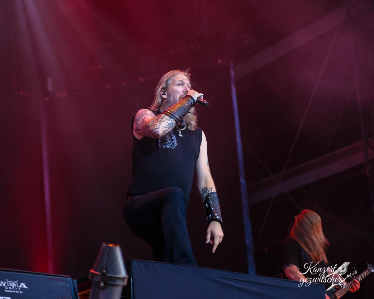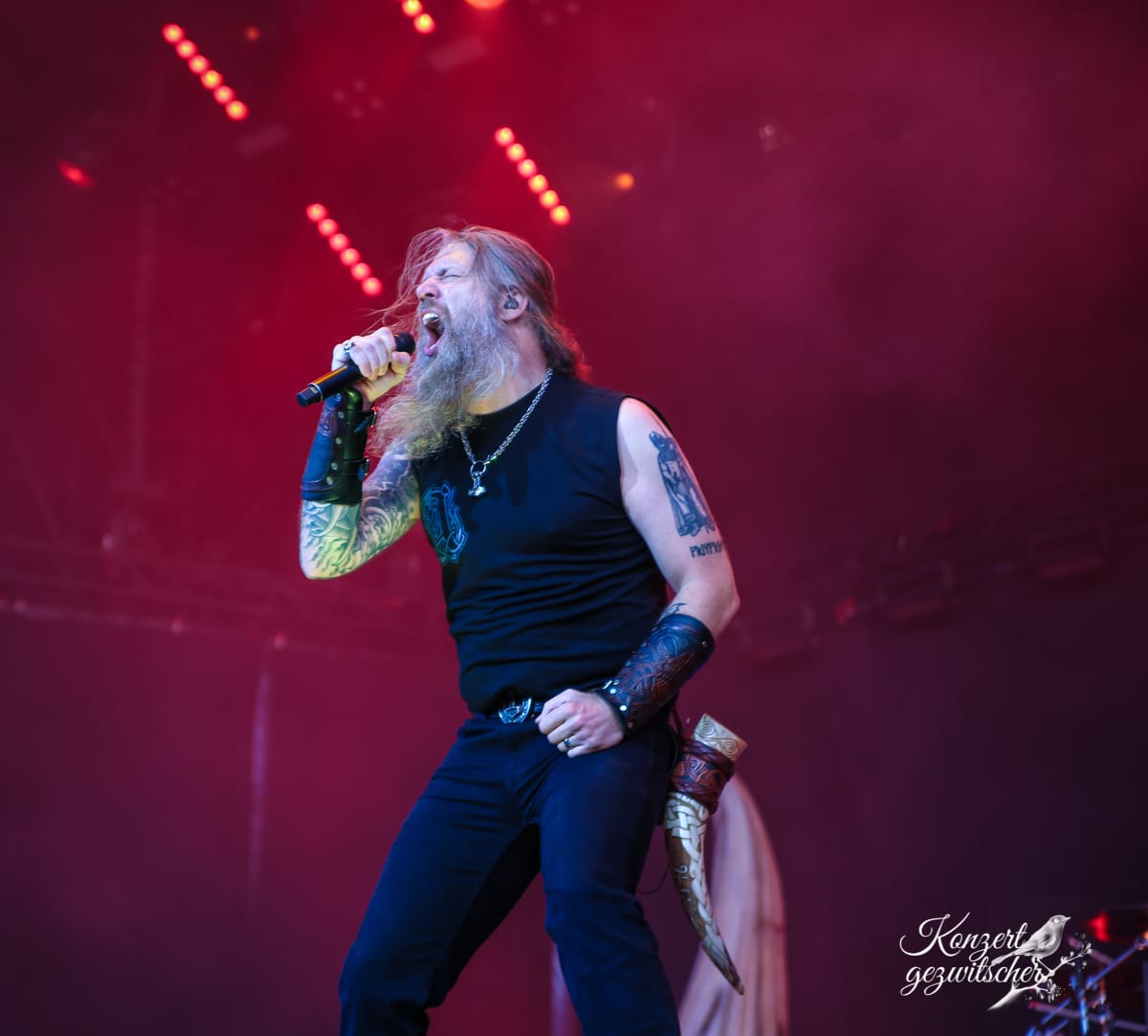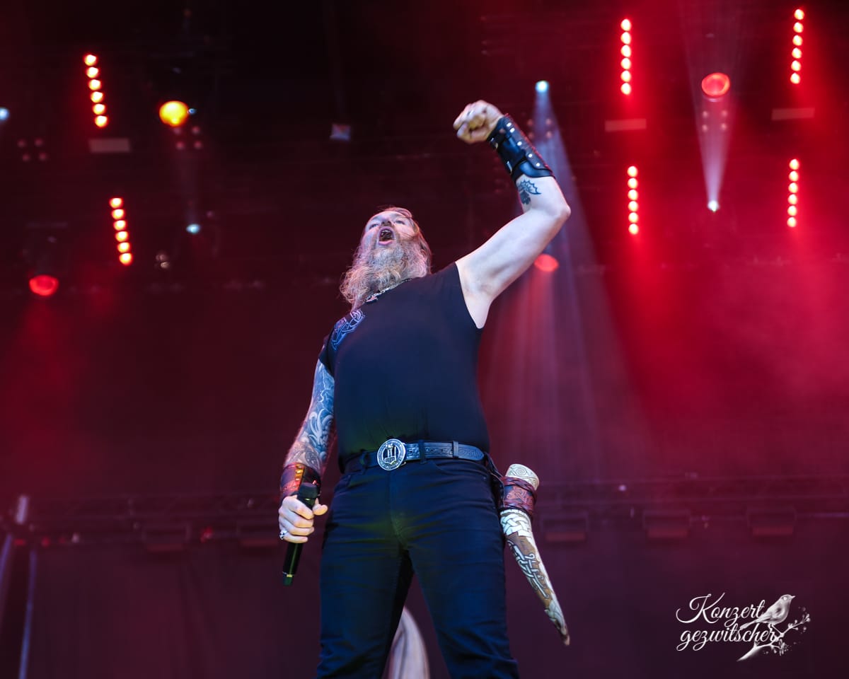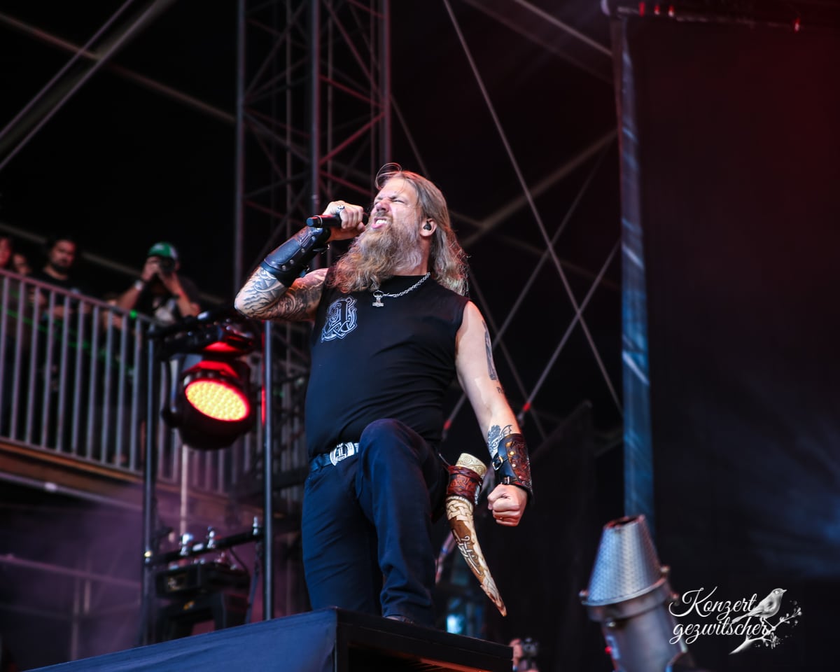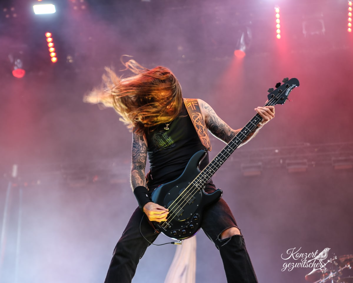 Raise Your Horns, WACKEN! Was für eine Bühnenpräsenz! Die Wikinger erobern den hohen Norden und haben das Festival ruckzuck fest in der Hand. Es genügt eine kurze Handbewegung von Sänger Johan Hegg und tausende folgen seinem Ruf. Ein unglaubliches Schauspiel vor dem stilisierten Wikingerhelm, der das Bühnenbild der Schweden darstellt. Es entwickelt sich eine Eigendynamik, von der AMON AMARTH selbst überwältigt zu sein scheint, dem seligen Lächeln und Strahlen der Musiker nach. Doch diese Begeisterung haben sich die Herren auch verdient: Authentisch und mit einer wilden, brachialen Attitude, AMON AMARTH zeigen sich auf dem WACKEN OPEN AIR als echte Publikumslieblinge, denen man jedes einzelne Wort, das sie auf der Bühne singen, bedingungslos glaubt. Dazu noch der gutturale Gesang von Johan Hegg – einer der wenigen Männer, die mich anschreien dürfen und ich erwische mich selbst dabei, wie ich vor lauter Begeisterung vergesse, zu fotografieren. Sie faszinieren eben auch heute noch, die stolzen Helden und heroischen Krieger der Wikinger.
