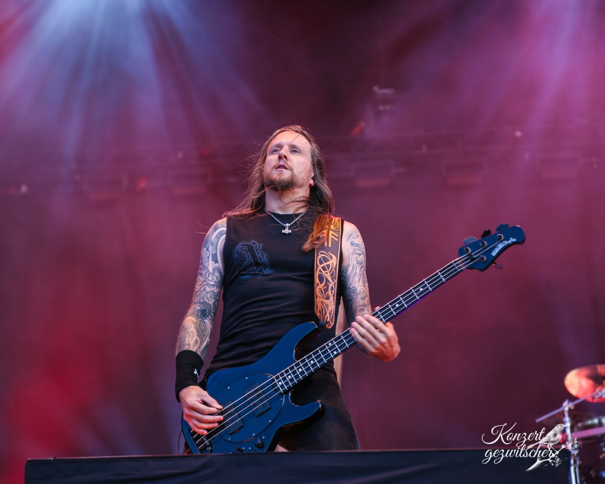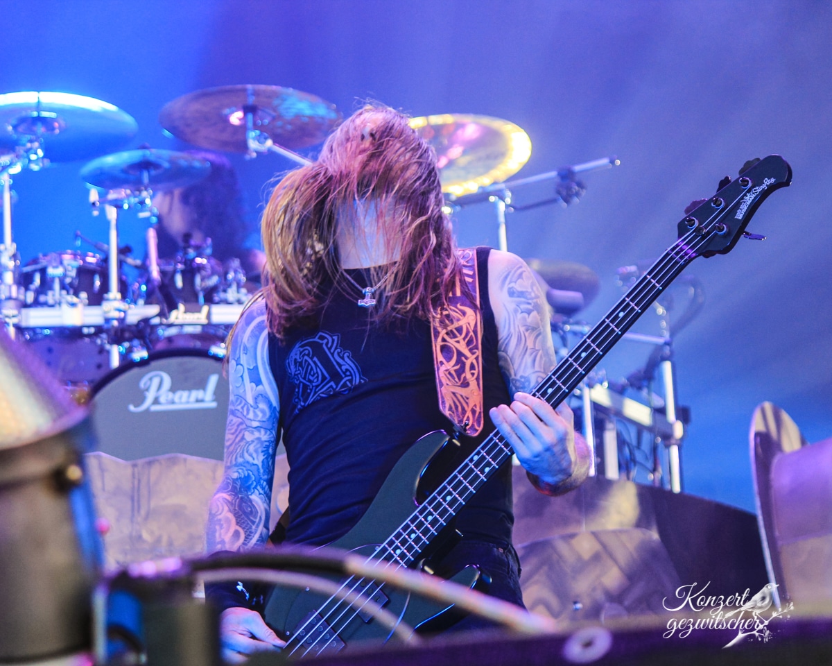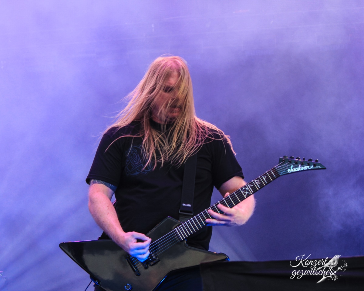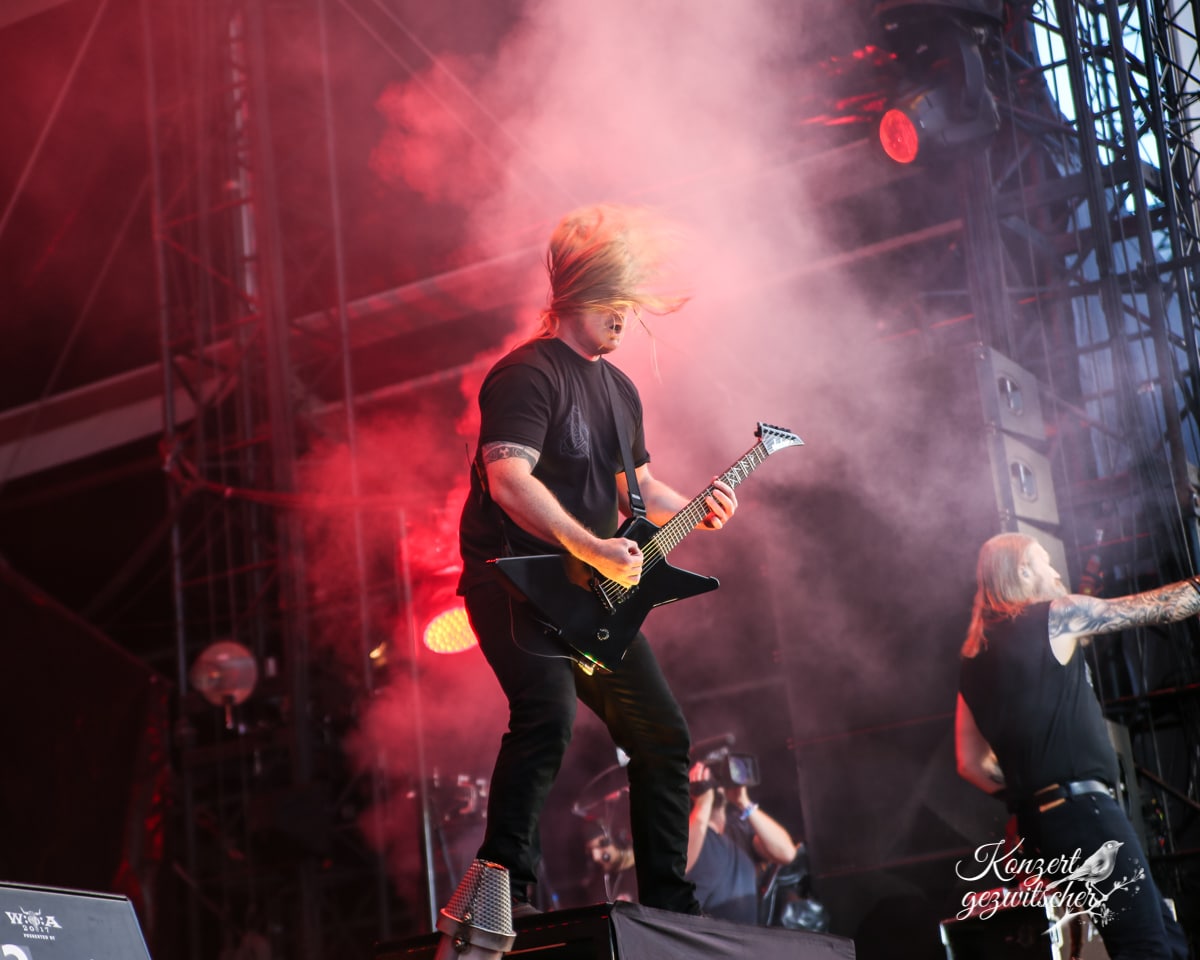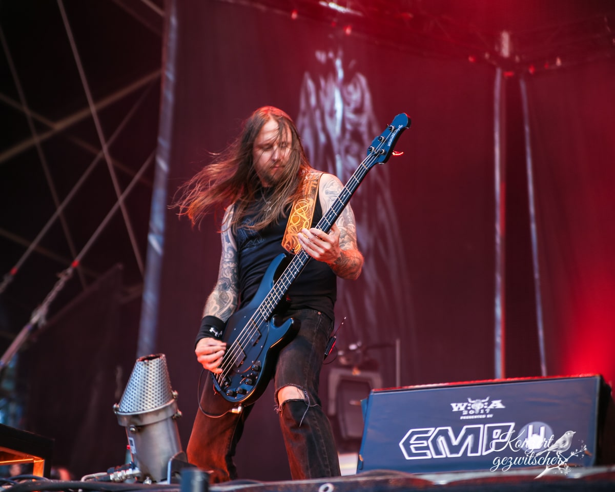 Raise Your Horns, WACKEN! Was für eine Bühnenpräsenz! Die Wikinger erobern den hohen Norden und haben das Festival ruckzuck fest in der Hand. Es genügt eine kurze Handbewegung von Sänger Johan Hegg und tausende folgen seinem Ruf. Ein unglaubliches Schauspiel vor dem stilisierten Wikingerhelm, der das Bühnenbild der Schweden darstellt. Es entwickelt sich eine Eigendynamik, von der AMON AMARTH selbst überwältigt zu sein scheint, dem seligen Lächeln und Strahlen der Musiker nach. Doch diese Begeisterung haben sich die Herren auch verdient: Authentisch und mit einer wilden, brachialen Attitude, AMON AMARTH zeigen sich auf dem WACKEN OPEN AIR als echte Publikumslieblinge, denen man jedes einzelne Wort, das sie auf der Bühne singen, bedingungslos glaubt. Dazu noch der gutturale Gesang von Johan Hegg – einer der wenigen Männer, die mich anschreien dürfen und ich erwische mich selbst dabei, wie ich vor lauter Begeisterung vergesse, zu fotografieren. Sie faszinieren eben auch heute noch, die stolzen Helden und heroischen Krieger der Wikinger.