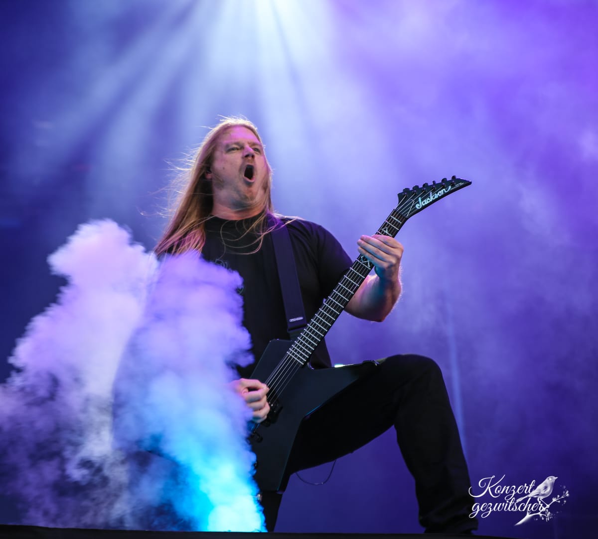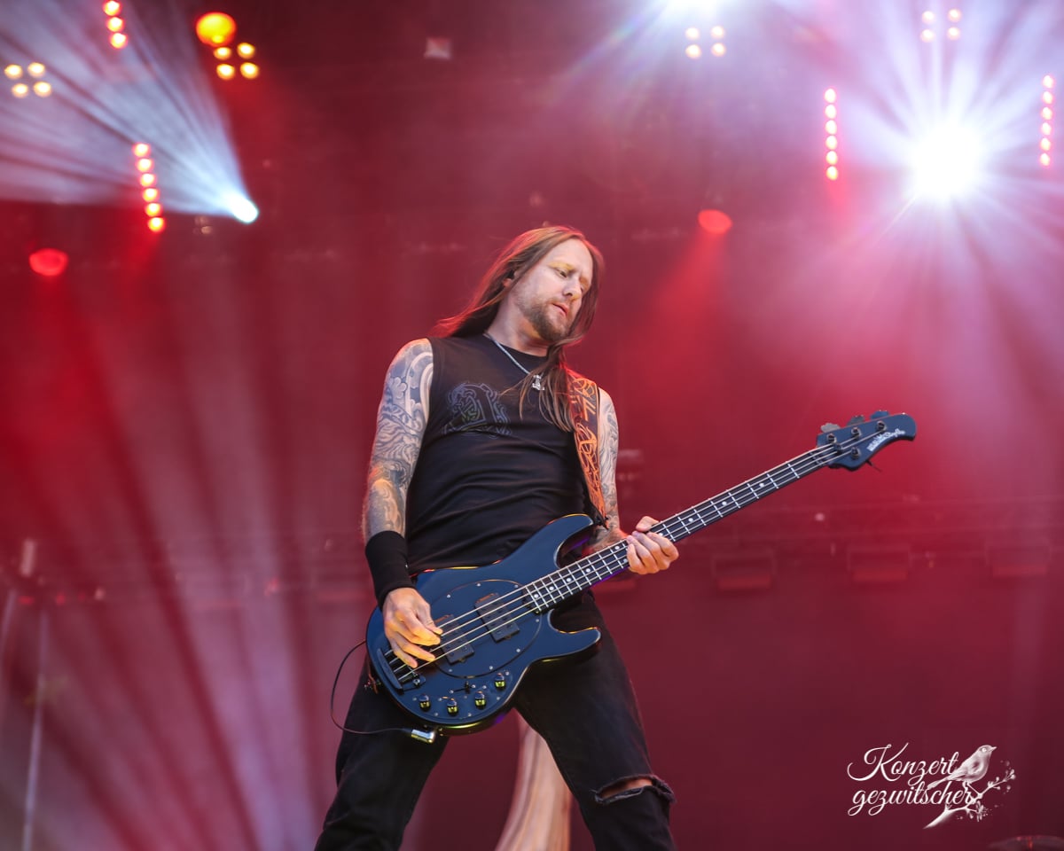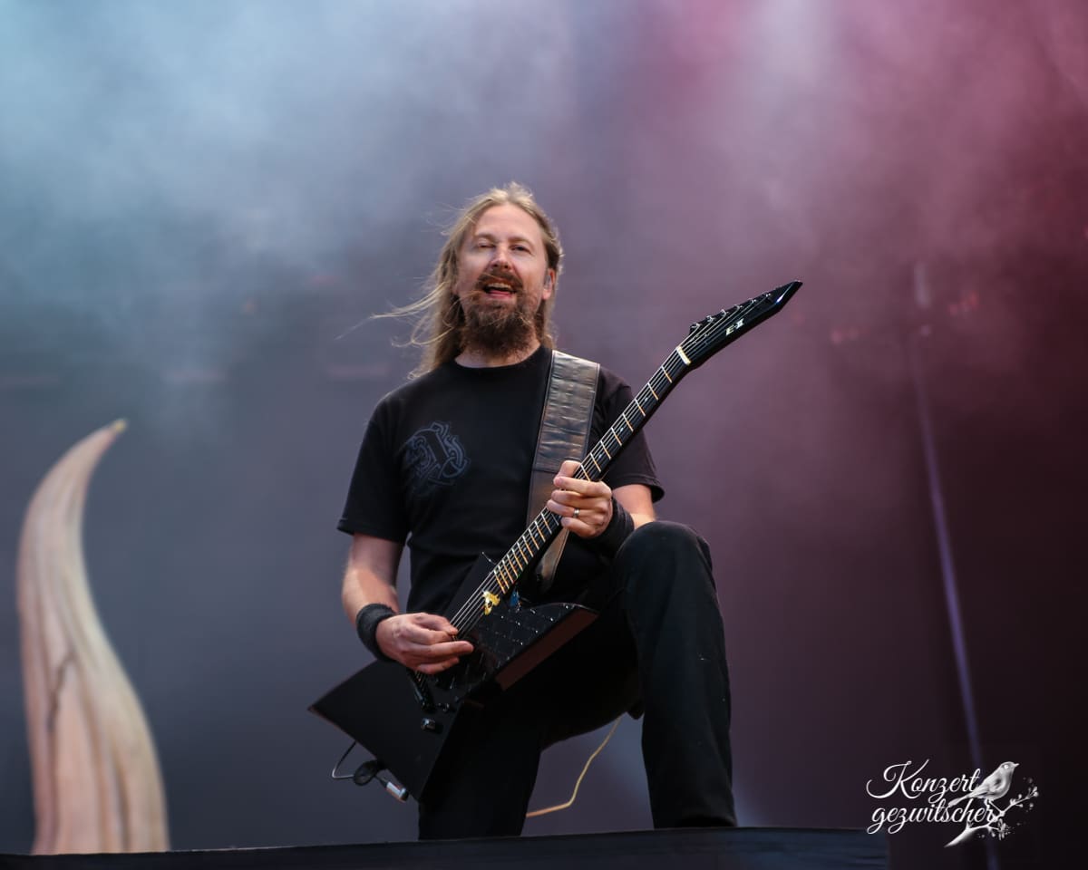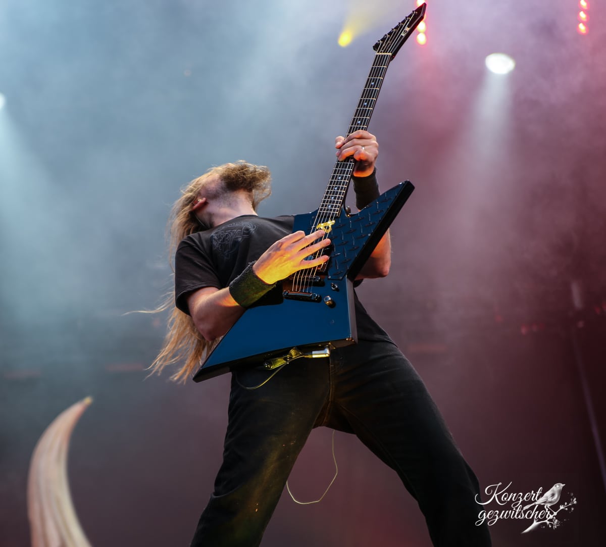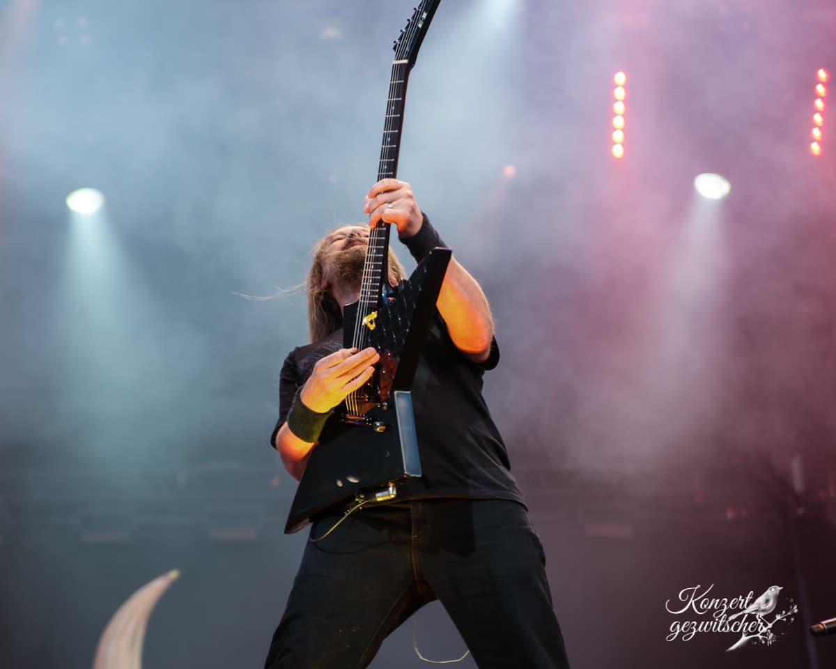 Raise Your Horns, WACKEN! Was für eine Bühnenpräsenz! Die Wikinger erobern den hohen Norden und haben das Festival ruckzuck fest in der Hand. Es genügt eine kurze Handbewegung von Sänger Johan Hegg und tausende folgen seinem Ruf. Ein unglaubliches Schauspiel vor dem stilisierten Wikingerhelm, der das Bühnenbild der Schweden darstellt. Es entwickelt sich eine Eigendynamik, von der AMON AMARTH selbst überwältigt zu sein scheint, dem seligen Lächeln und Strahlen der Musiker nach. Doch diese Begeisterung haben sich die Herren auch verdient: Authentisch und mit einer wilden, brachialen Attitude, AMON AMARTH zeigen sich auf dem WACKEN OPEN AIR als echte Publikumslieblinge, denen man jedes einzelne Wort, das sie auf der Bühne singen, bedingungslos glaubt. Dazu noch der gutturale Gesang von Johan Hegg – einer der wenigen Männer, die mich anschreien dürfen und ich erwische mich selbst dabei, wie ich vor lauter Begeisterung vergesse, zu fotografieren. Sie faszinieren eben auch heute noch, die stolzen Helden und heroischen Krieger der Wikinger.