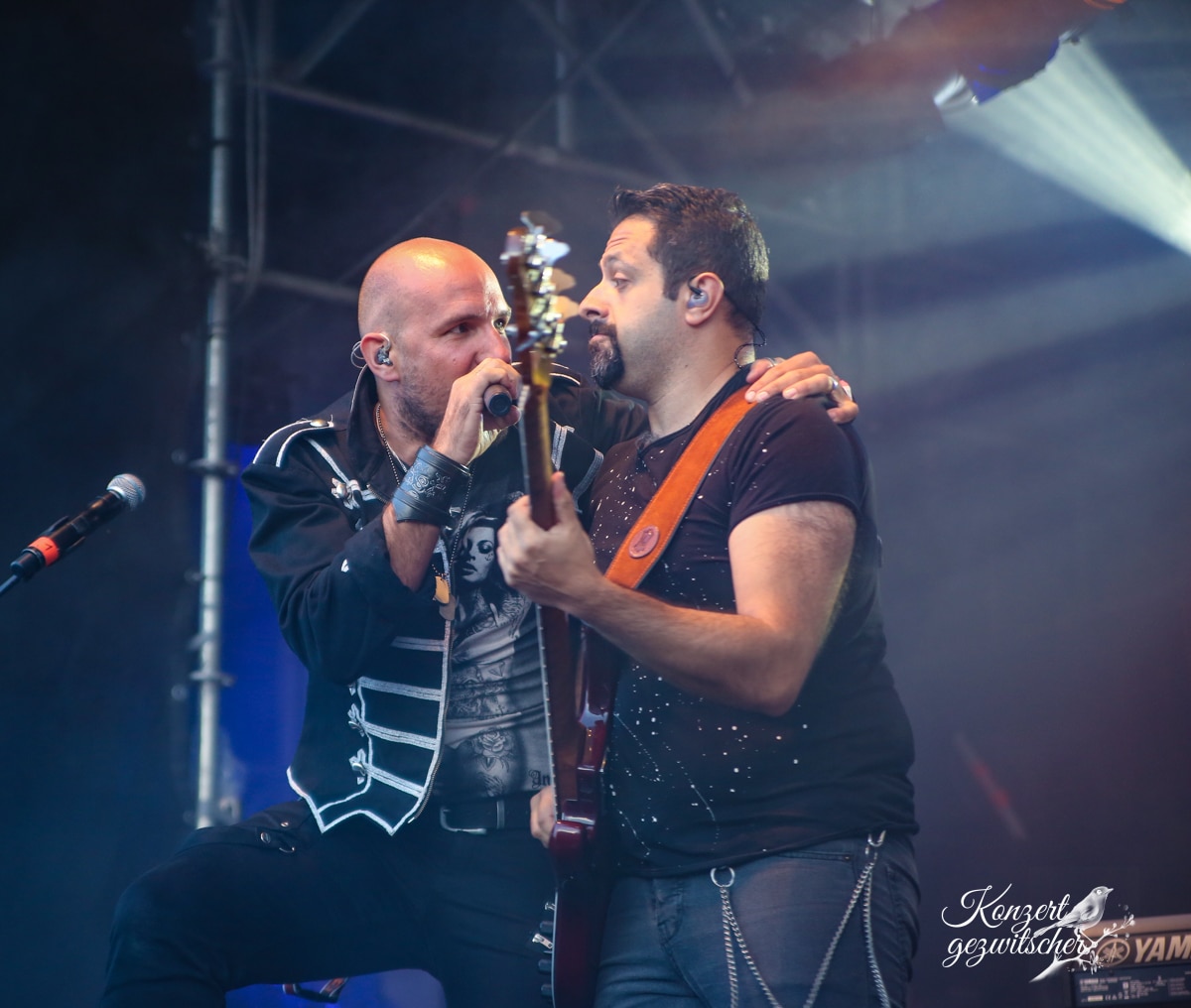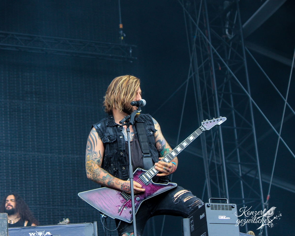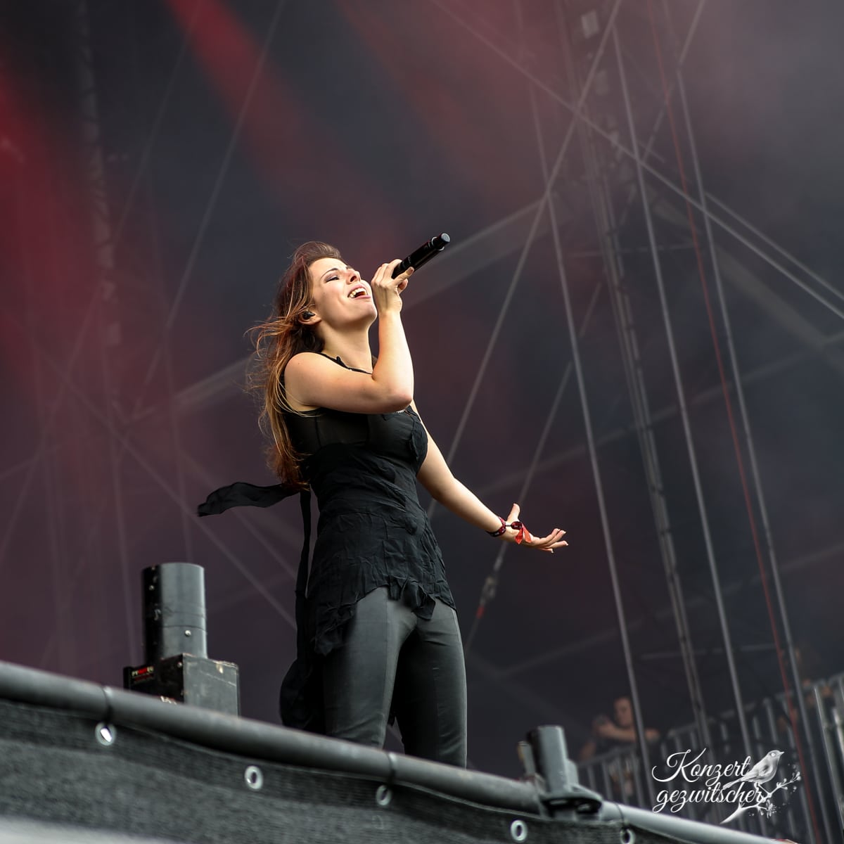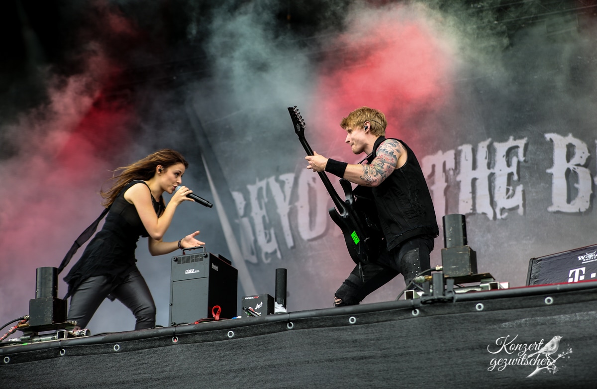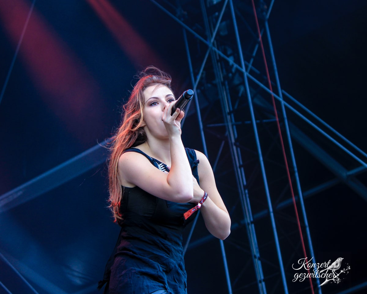 Zu BEYOND THE BLACK habe ich, um es von Anfang an zu sagen, ein äußerst zwiespältiges Verhältnis. Denn auch wenn ich mit der Bühnenpräsenz und der Stimme von Frontfrau Jennifer Haben in diesem Leben vermutlich nicht mehr warm werde (was allerdings auch an meiner generellen Aversion gegen weibliche Frontstimmen, es sei denn, sie gehören Floor Jansen oder Elina Siirala, liegen könnte), dem eingängigen und zugleich ausgereiften Sound und der Spielfreude der Kombo lässt es sich nur schwer entziehen. Denn man muss nicht unbedingt ein Fan, der bisweilen doch ein wenig an den Pop assimilierten Musik von BEYOND THE BLACK sein, um sich an den virtuosen Soli von Christian Hermsdörfer und Tobi Lodes zu erfreuen. Außerdem wirkt die Band nach der Tabula Rasa im vergangenen Sommer weitaus gefestigter und aufeinander eingespielt als noch vor einiger Zeit. Die Chemie stimmt zwischen Jenni und ihren Jungs. Summa summarum lässt sich aus dem Auftritt der Haus- und Hofband des Wacken Open Air, die schon im vergangenen Jahr an nahezu gleicher Stelle auf der Party Stage abräumten, folgendes Fazit ziehen: Man darf sich auf die Tour von BEYOND THE BLACK im Winter 2017 freuen.