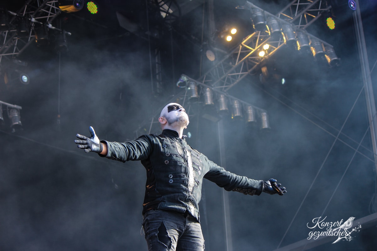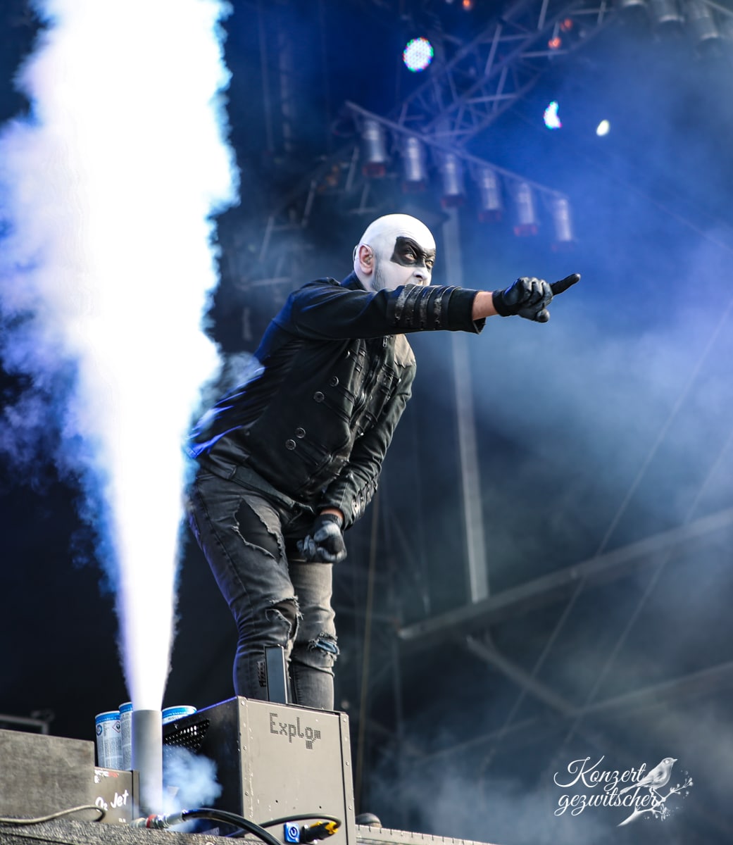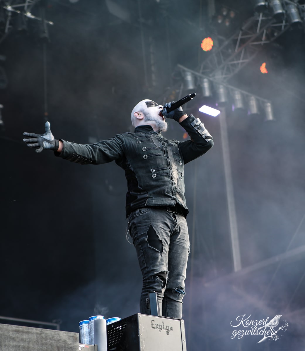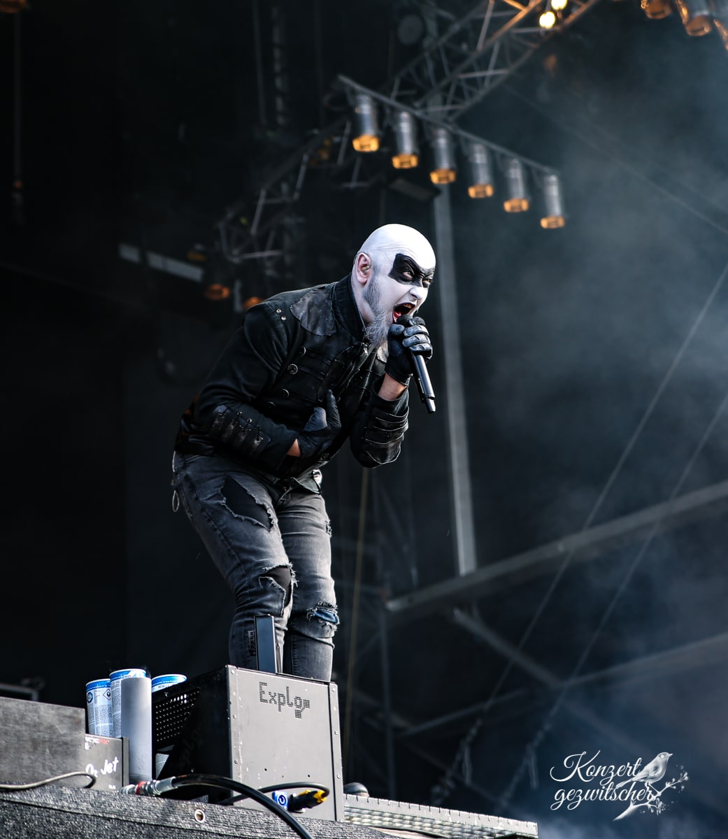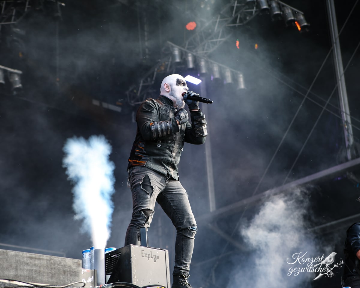 Ist das Kunst oder kann das weg? Die Frage, die HÄMATOM sich auf der aktuellen Platte der Band („Wir sind Gott“) stellt, beantworten Nord, Süd, Ost und West sich auf der Louder Stage selbst. Ohne Möglichkeit zum Widerstand fegen die Herrschaften jegliche Einsprüche mit ihrem brachial-aggressiven, bärbeißigen Sound hinweg – es wummern die Bässe, es knallt, zischt und angesichts des frenetischen Jubels, noch bevor die Musik einsetzt, ist schnell klar: Es kommt was Großes auf uns zu. Mit dem epischen ‚Wir sind Gott‘ präsentiert sich HÄMATOM von der ersten Sekunde als souverän, gewohnt rotzfrech und musikalisch auf einer nahezu olympischen Stufe. Rauchsäulen, die Pyro an Wests Maske oder ein Funkenregen zur letzten Zeile von ‚All You Need Is Love‘ („…und ein bisschen Sprengstoff“): Die NDH-Band zieht alle Register um nach dem Auftritt im vergangenen Jahr ihr Denkmal auf dem WACKEN OPEN AIR endgültig zu zementieren. Dabei greift bei dem Auftritt von HÄMATOM echt ein Zahnrad ins andere: Eine wahnsinnig präsente Band, Nord als Sänger in Höchstform und dazu eine überwältigende Live-Show – raus kommt eine Walze, die das Publikum schier überrollt und sämtlichen anderen Bands, die parallel spielen, das Bestehen ganz schön schwer macht.
