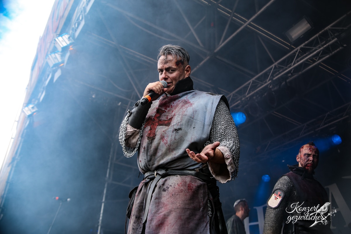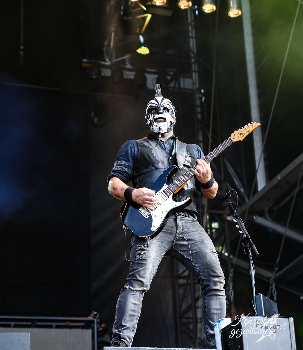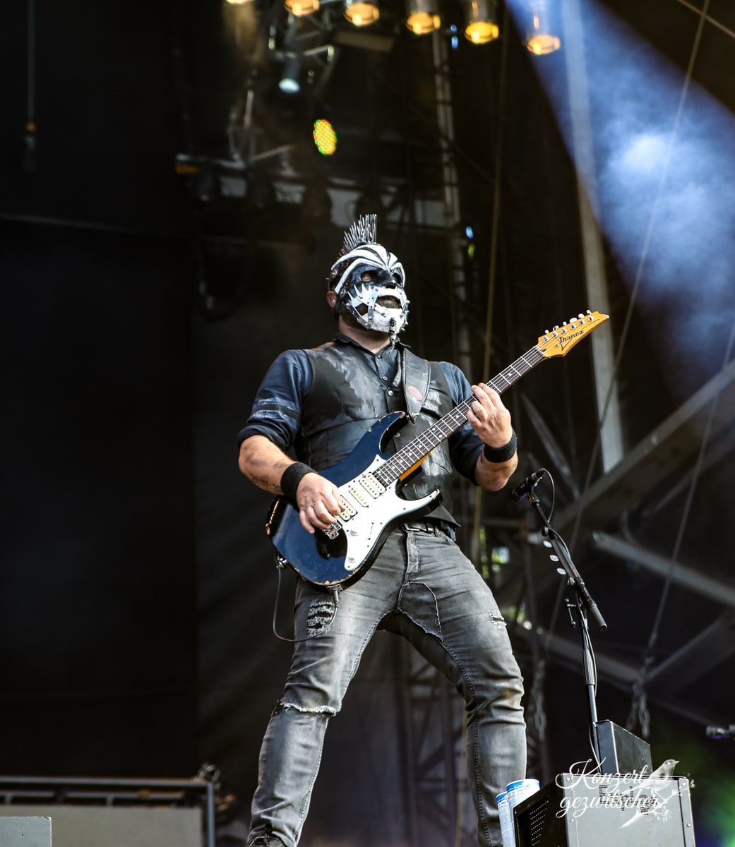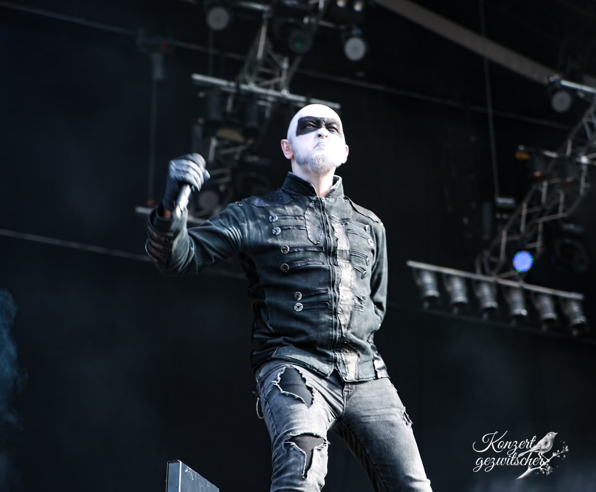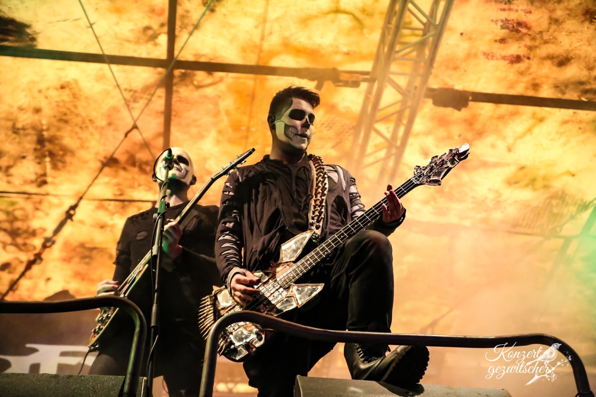 Ist das Kunst oder kann das weg? Die Frage, die HÄMATOM sich auf der aktuellen Platte der Band („Wir sind Gott“) stellt, beantworten Nord, Süd, Ost und West sich auf der Louder Stage selbst. Ohne Möglichkeit zum Widerstand fegen die Herrschaften jegliche Einsprüche mit ihrem brachial-aggressiven, bärbeißigen Sound hinweg – es wummern die Bässe, es knallt, zischt und angesichts des frenetischen Jubels, noch bevor die Musik einsetzt, ist schnell klar: Es kommt was Großes auf uns zu. Mit dem epischen ‚Wir sind Gott‘ präsentiert sich HÄMATOM von der ersten Sekunde als souverän, gewohnt rotzfrech und musikalisch auf einer nahezu olympischen Stufe. Rauchsäulen, die Pyro an Wests Maske oder ein Funkenregen zur letzten Zeile von ‚All You Need Is Love‘ („…und ein bisschen Sprengstoff“): Die NDH-Band zieht alle Register um nach dem Auftritt im vergangenen Jahr ihr Denkmal auf dem WACKEN OPEN AIR endgültig zu zementieren. Dabei greift bei dem Auftritt von HÄMATOM echt ein Zahnrad ins andere: Eine wahnsinnig präsente Band, Nord als Sänger in Höchstform und dazu eine überwältigende Live-Show – raus kommt eine Walze, die das Publikum schier überrollt und sämtlichen anderen Bands, die parallel spielen, das Bestehen ganz schön schwer macht.