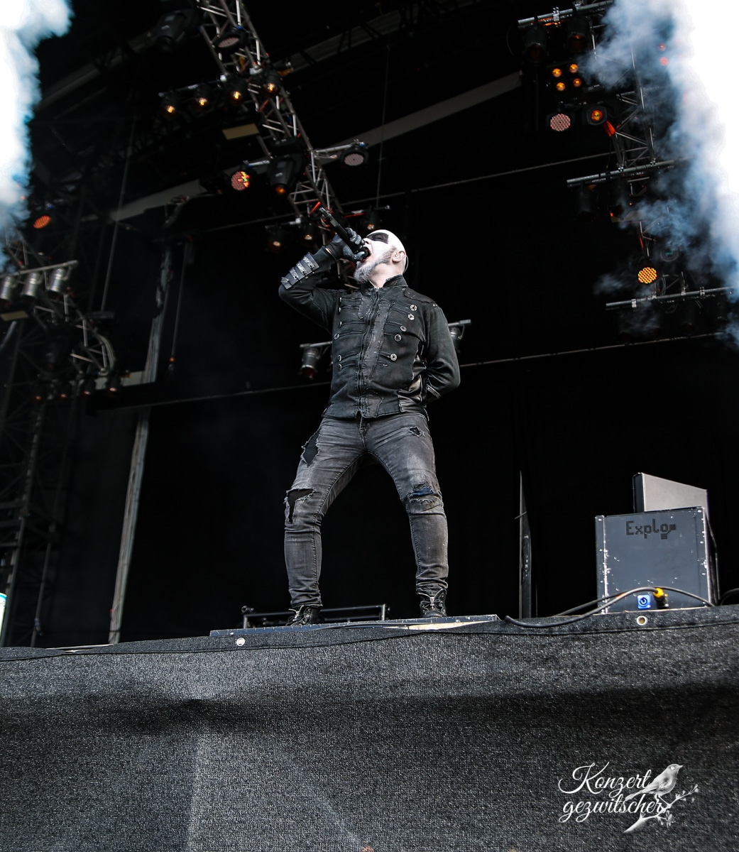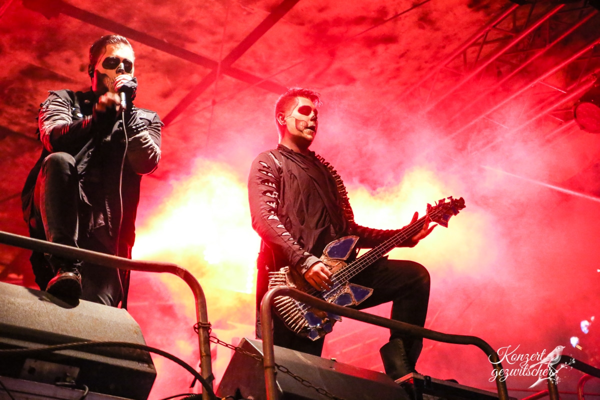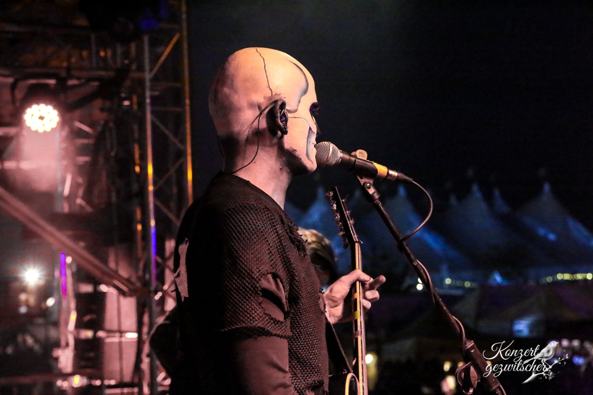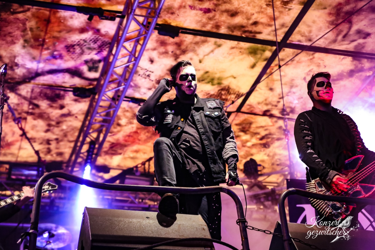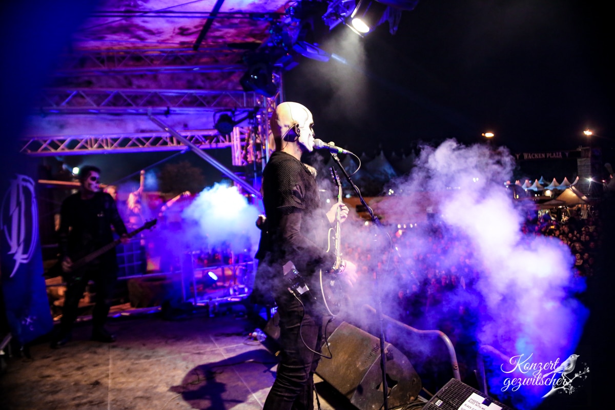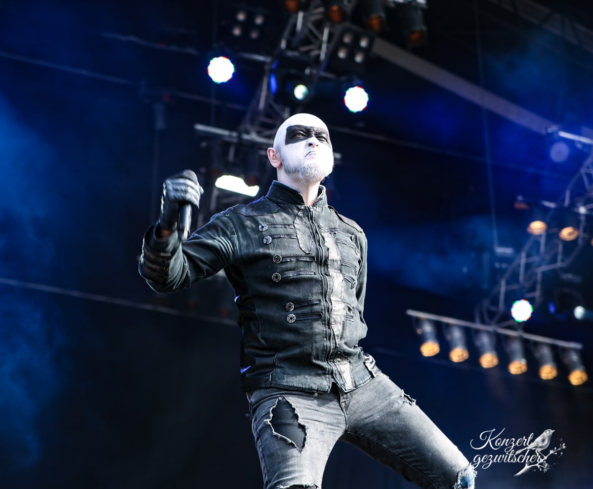 Ist das Kunst oder kann das weg? Die Frage, die HÄMATOM sich auf der aktuellen Platte der Band („Wir sind Gott“) stellt, beantworten Nord, Süd, Ost und West sich auf der Louder Stage selbst. Ohne Möglichkeit zum Widerstand fegen die Herrschaften jegliche Einsprüche mit ihrem brachial-aggressiven, bärbeißigen Sound hinweg – es wummern die Bässe, es knallt, zischt und angesichts des frenetischen Jubels, noch bevor die Musik einsetzt, ist schnell klar: Es kommt was Großes auf uns zu. Mit dem epischen ‚Wir sind Gott‘ präsentiert sich HÄMATOM von der ersten Sekunde als souverän, gewohnt rotzfrech und musikalisch auf einer nahezu olympischen Stufe. Rauchsäulen, die Pyro an Wests Maske oder ein Funkenregen zur letzten Zeile von ‚All You Need Is Love‘ („…und ein bisschen Sprengstoff“): Die NDH-Band zieht alle Register um nach dem Auftritt im vergangenen Jahr ihr Denkmal auf dem WACKEN OPEN AIR endgültig zu zementieren. Dabei greift bei dem Auftritt von HÄMATOM echt ein Zahnrad ins andere: Eine wahnsinnig präsente Band, Nord als Sänger in Höchstform und dazu eine überwältigende Live-Show – raus kommt eine Walze, die das Publikum schier überrollt und sämtlichen anderen Bands, die parallel spielen, das Bestehen ganz schön schwer macht.