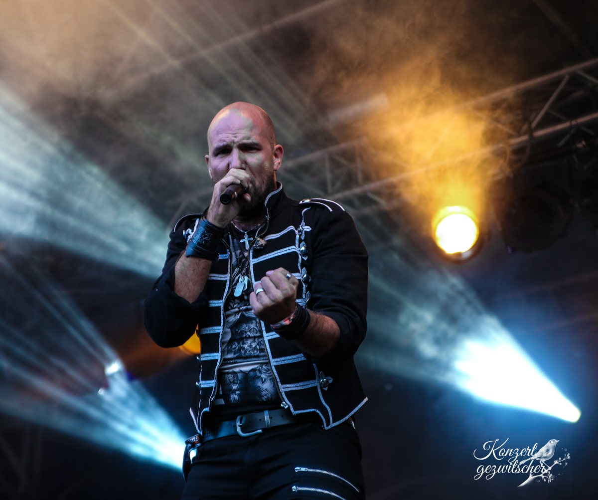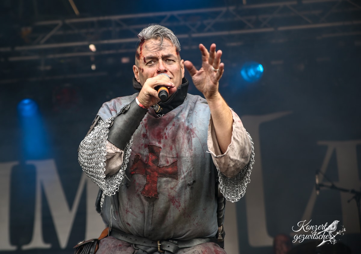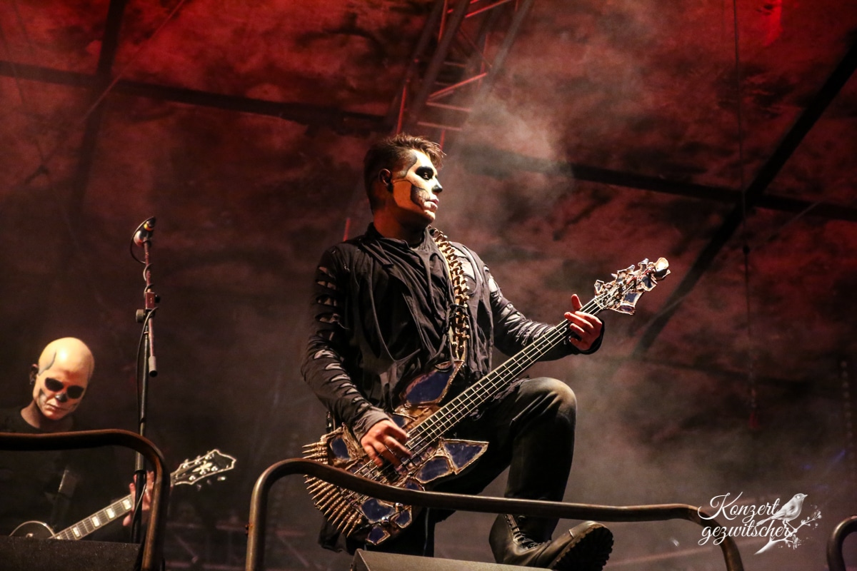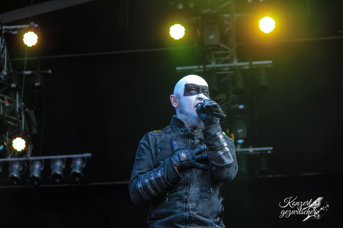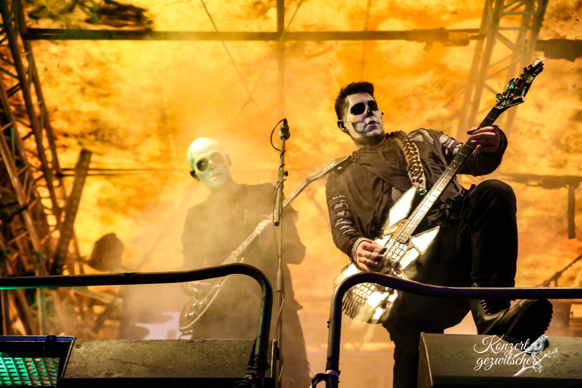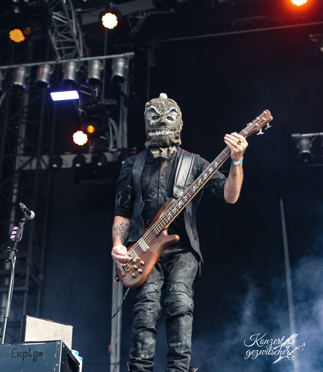 Ist das Kunst oder kann das weg? Die Frage, die HÄMATOM sich auf der aktuellen Platte der Band („Wir sind Gott“) stellt, beantworten Nord, Süd, Ost und West sich auf der Louder Stage selbst. Ohne Möglichkeit zum Widerstand fegen die Herrschaften jegliche Einsprüche mit ihrem brachial-aggressiven, bärbeißigen Sound hinweg – es wummern die Bässe, es knallt, zischt und angesichts des frenetischen Jubels, noch bevor die Musik einsetzt, ist schnell klar: Es kommt was Großes auf uns zu. Mit dem epischen ‚Wir sind Gott‘ präsentiert sich HÄMATOM von der ersten Sekunde als souverän, gewohnt rotzfrech und musikalisch auf einer nahezu olympischen Stufe. Rauchsäulen, die Pyro an Wests Maske oder ein Funkenregen zur letzten Zeile von ‚All You Need Is Love‘ („…und ein bisschen Sprengstoff“): Die NDH-Band zieht alle Register um nach dem Auftritt im vergangenen Jahr ihr Denkmal auf dem WACKEN OPEN AIR endgültig zu zementieren. Dabei greift bei dem Auftritt von HÄMATOM echt ein Zahnrad ins andere: Eine wahnsinnig präsente Band, Nord als Sänger in Höchstform und dazu eine überwältigende Live-Show – raus kommt eine Walze, die das Publikum schier überrollt und sämtlichen anderen Bands, die parallel spielen, das Bestehen ganz schön schwer macht.