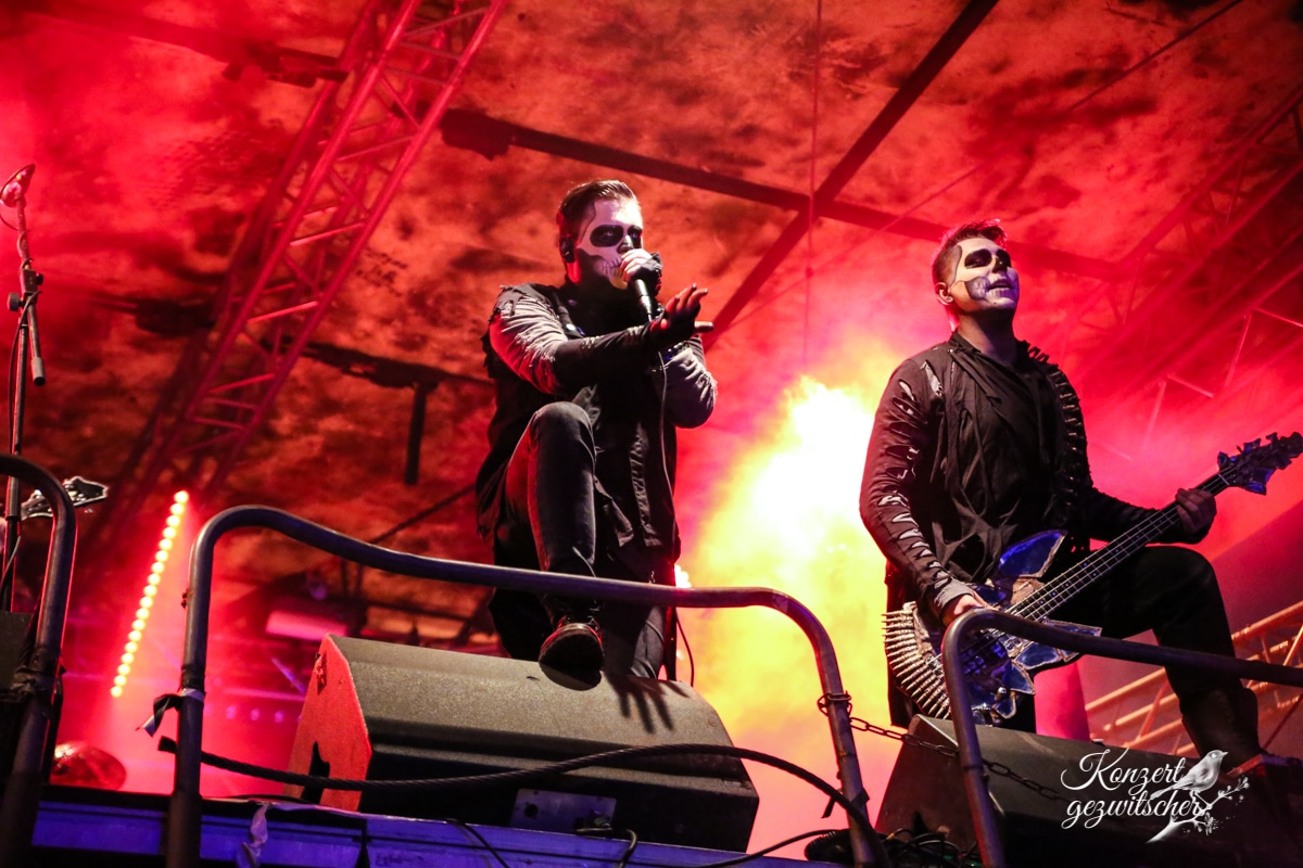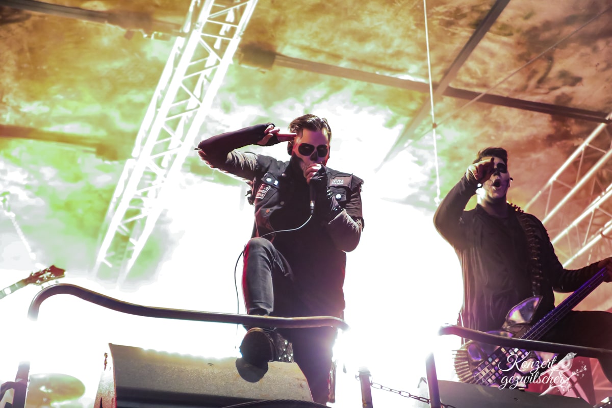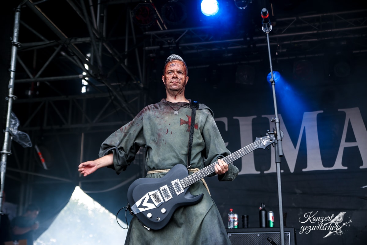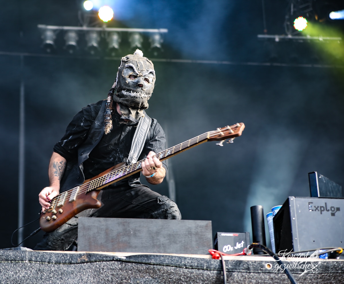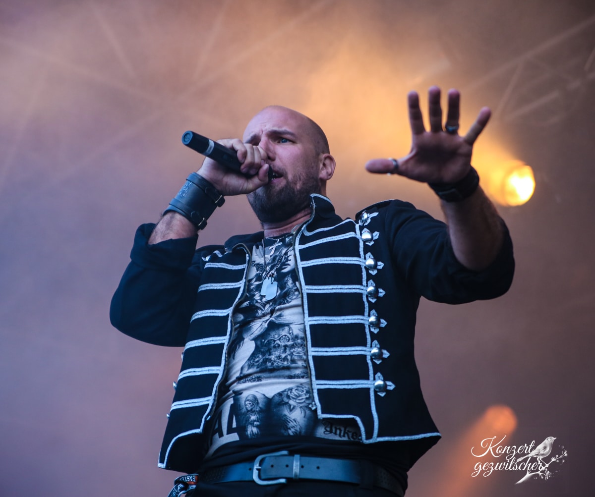 Ist das Kunst oder kann das weg? Die Frage, die HÄMATOM sich auf der aktuellen Platte der Band („Wir sind Gott“) stellt, beantworten Nord, Süd, Ost und West sich auf der Louder Stage selbst. Ohne Möglichkeit zum Widerstand fegen die Herrschaften jegliche Einsprüche mit ihrem brachial-aggressiven, bärbeißigen Sound hinweg – es wummern die Bässe, es knallt, zischt und angesichts des frenetischen Jubels, noch bevor die Musik einsetzt, ist schnell klar: Es kommt was Großes auf uns zu. Mit dem epischen ‚Wir sind Gott‘ präsentiert sich HÄMATOM von der ersten Sekunde als souverän, gewohnt rotzfrech und musikalisch auf einer nahezu olympischen Stufe. Rauchsäulen, die Pyro an Wests Maske oder ein Funkenregen zur letzten Zeile von ‚All You Need Is Love‘ („…und ein bisschen Sprengstoff“): Die NDH-Band zieht alle Register um nach dem Auftritt im vergangenen Jahr ihr Denkmal auf dem WACKEN OPEN AIR endgültig zu zementieren. Dabei greift bei dem Auftritt von HÄMATOM echt ein Zahnrad ins andere: Eine wahnsinnig präsente Band, Nord als Sänger in Höchstform und dazu eine überwältigende Live-Show – raus kommt eine Walze, die das Publikum schier überrollt und sämtlichen anderen Bands, die parallel spielen, das Bestehen ganz schön schwer macht.