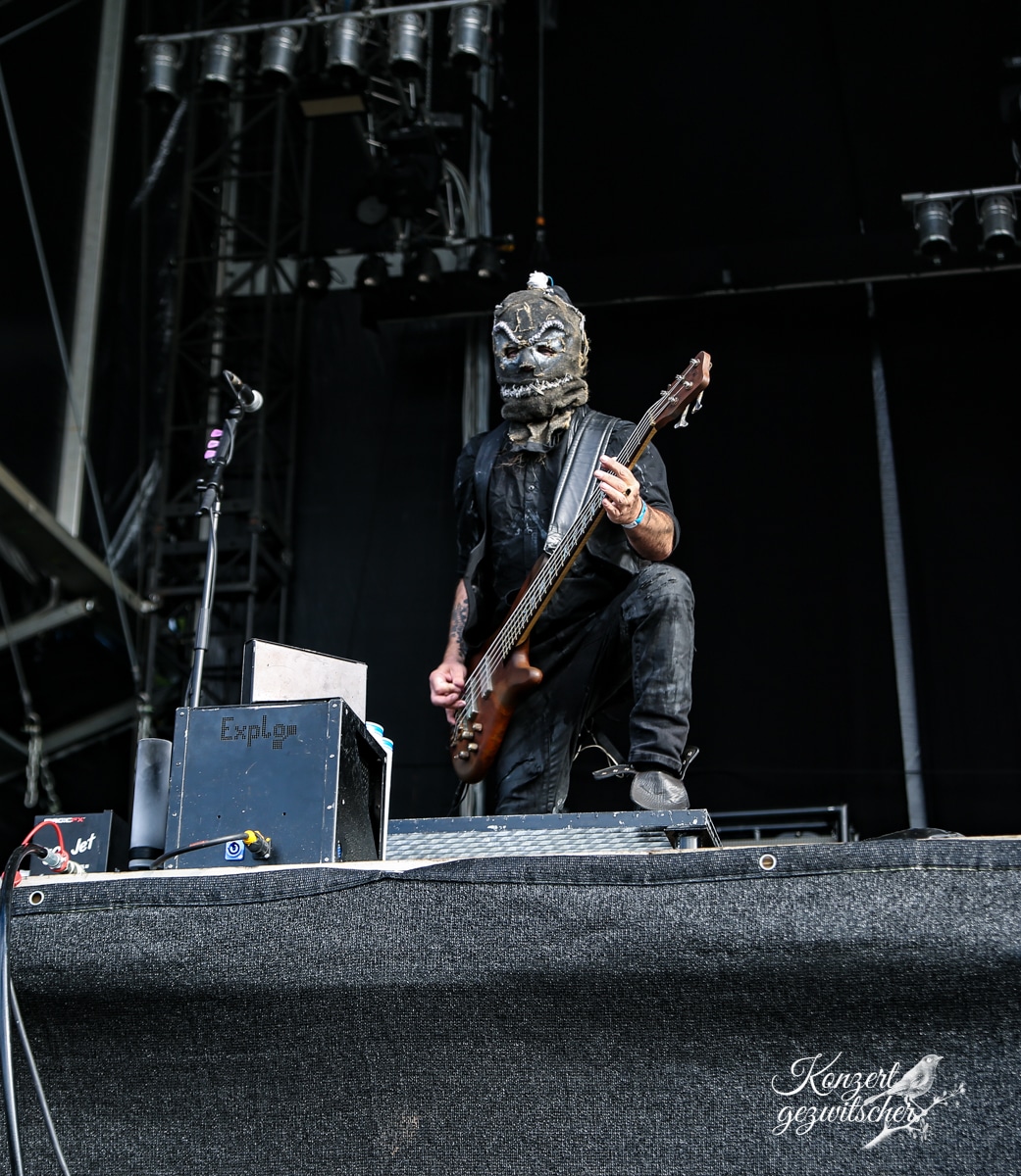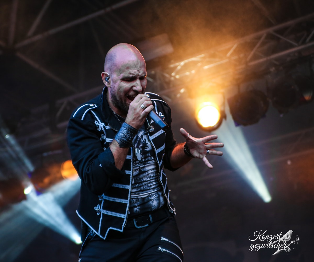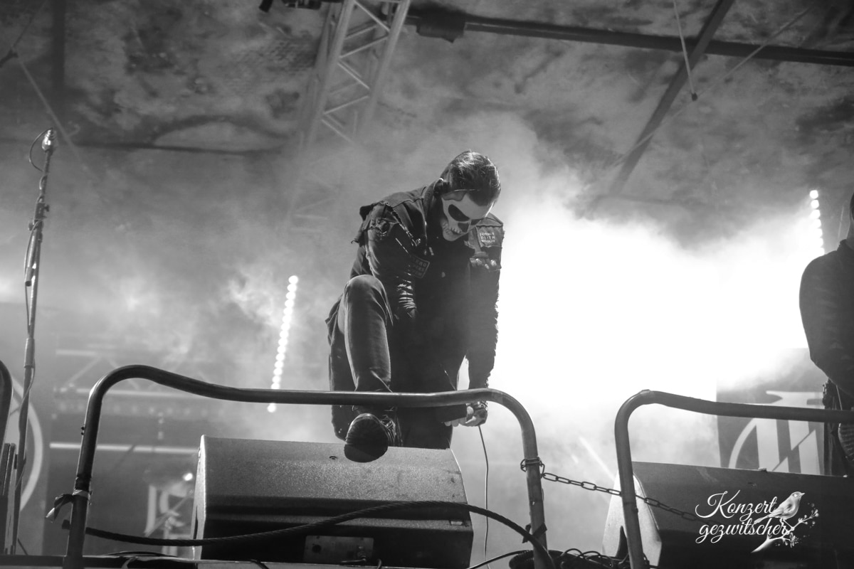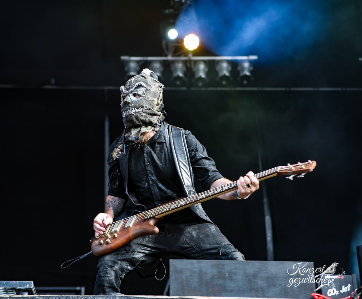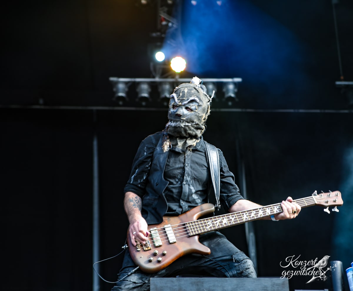 Ist das Kunst oder kann das weg? Die Frage, die HÄMATOM sich auf der aktuellen Platte der Band („Wir sind Gott“) stellt, beantworten Nord, Süd, Ost und West sich auf der Louder Stage selbst. Ohne Möglichkeit zum Widerstand fegen die Herrschaften jegliche Einsprüche mit ihrem brachial-aggressiven, bärbeißigen Sound hinweg – es wummern die Bässe, es knallt, zischt und angesichts des frenetischen Jubels, noch bevor die Musik einsetzt, ist schnell klar: Es kommt was Großes auf uns zu. Mit dem epischen ‚Wir sind Gott‘ präsentiert sich HÄMATOM von der ersten Sekunde als souverän, gewohnt rotzfrech und musikalisch auf einer nahezu olympischen Stufe. Rauchsäulen, die Pyro an Wests Maske oder ein Funkenregen zur letzten Zeile von ‚All You Need Is Love‘ („…und ein bisschen Sprengstoff“): Die NDH-Band zieht alle Register um nach dem Auftritt im vergangenen Jahr ihr Denkmal auf dem WACKEN OPEN AIR endgültig zu zementieren. Dabei greift bei dem Auftritt von HÄMATOM echt ein Zahnrad ins andere: Eine wahnsinnig präsente Band, Nord als Sänger in Höchstform und dazu eine überwältigende Live-Show – raus kommt eine Walze, die das Publikum schier überrollt und sämtlichen anderen Bands, die parallel spielen, das Bestehen ganz schön schwer macht.