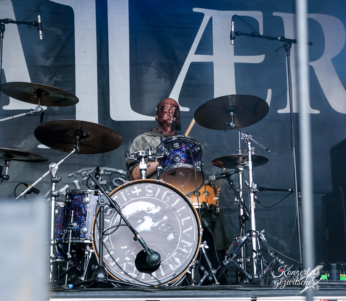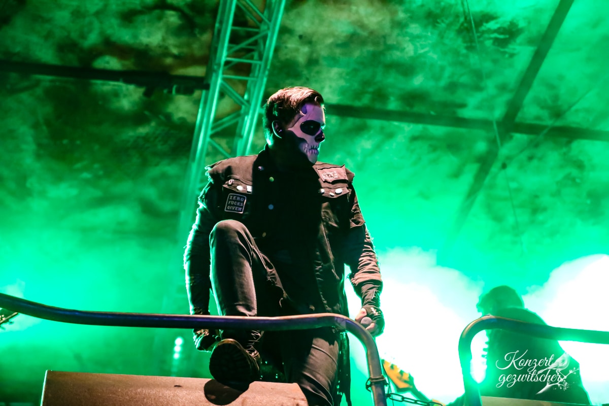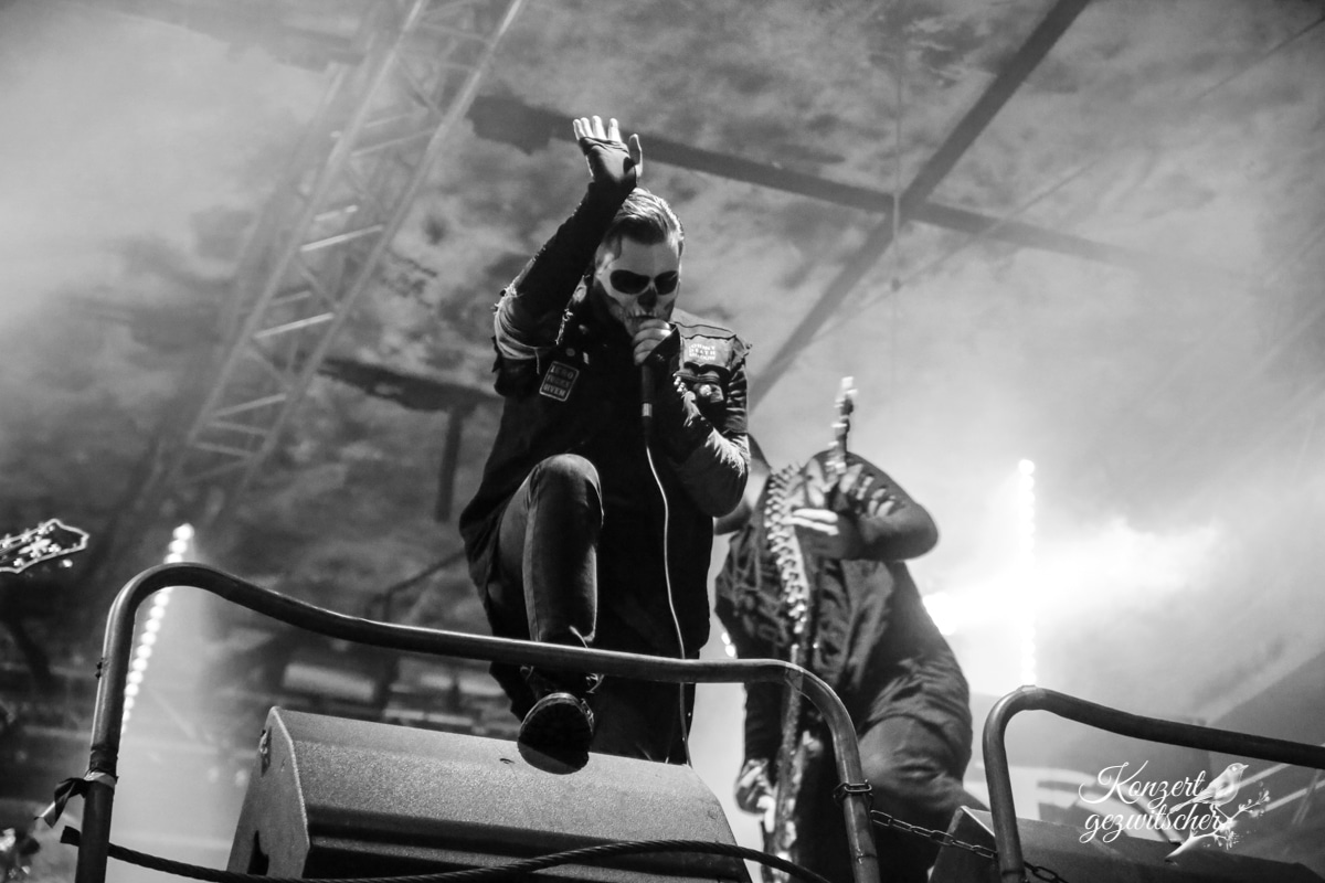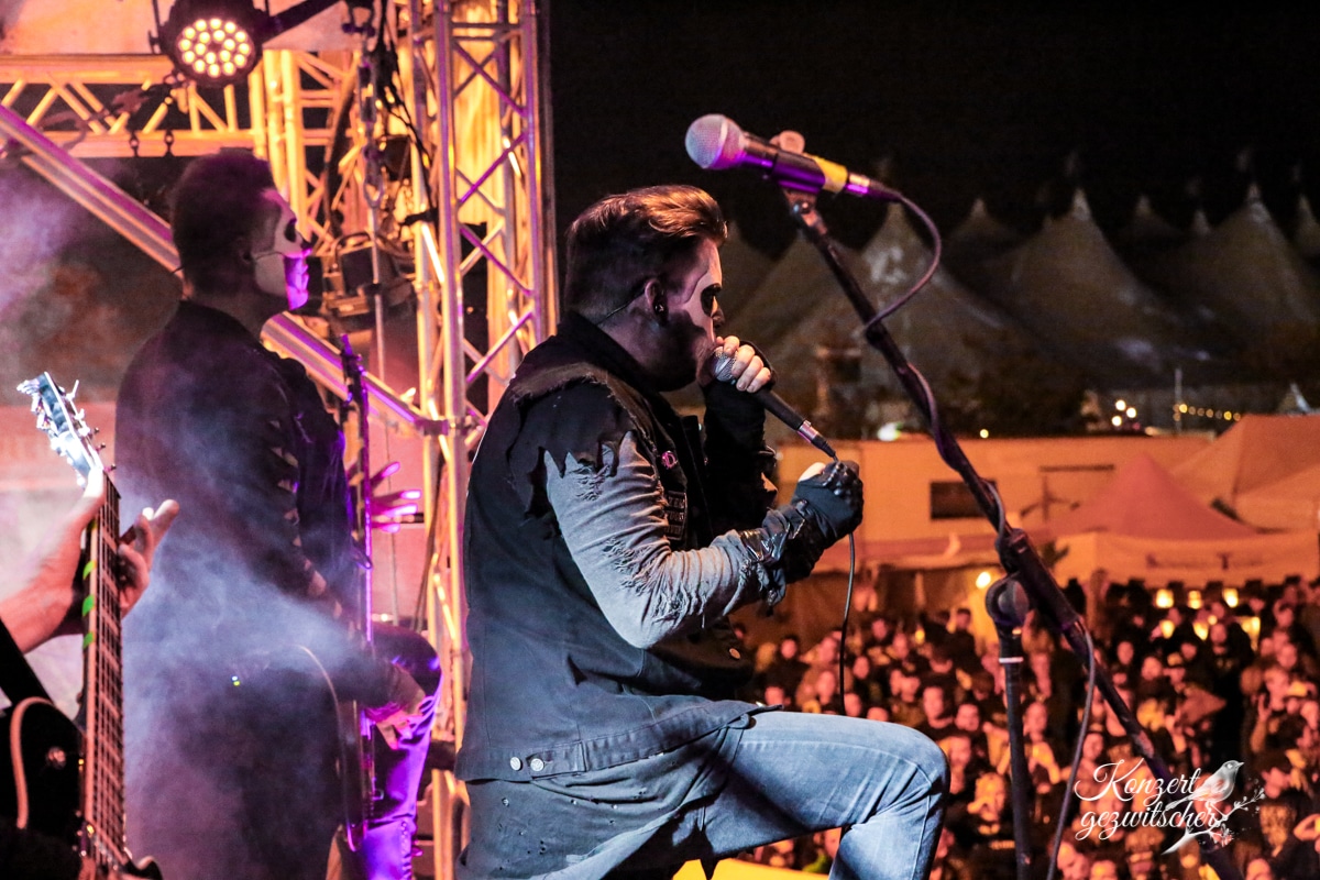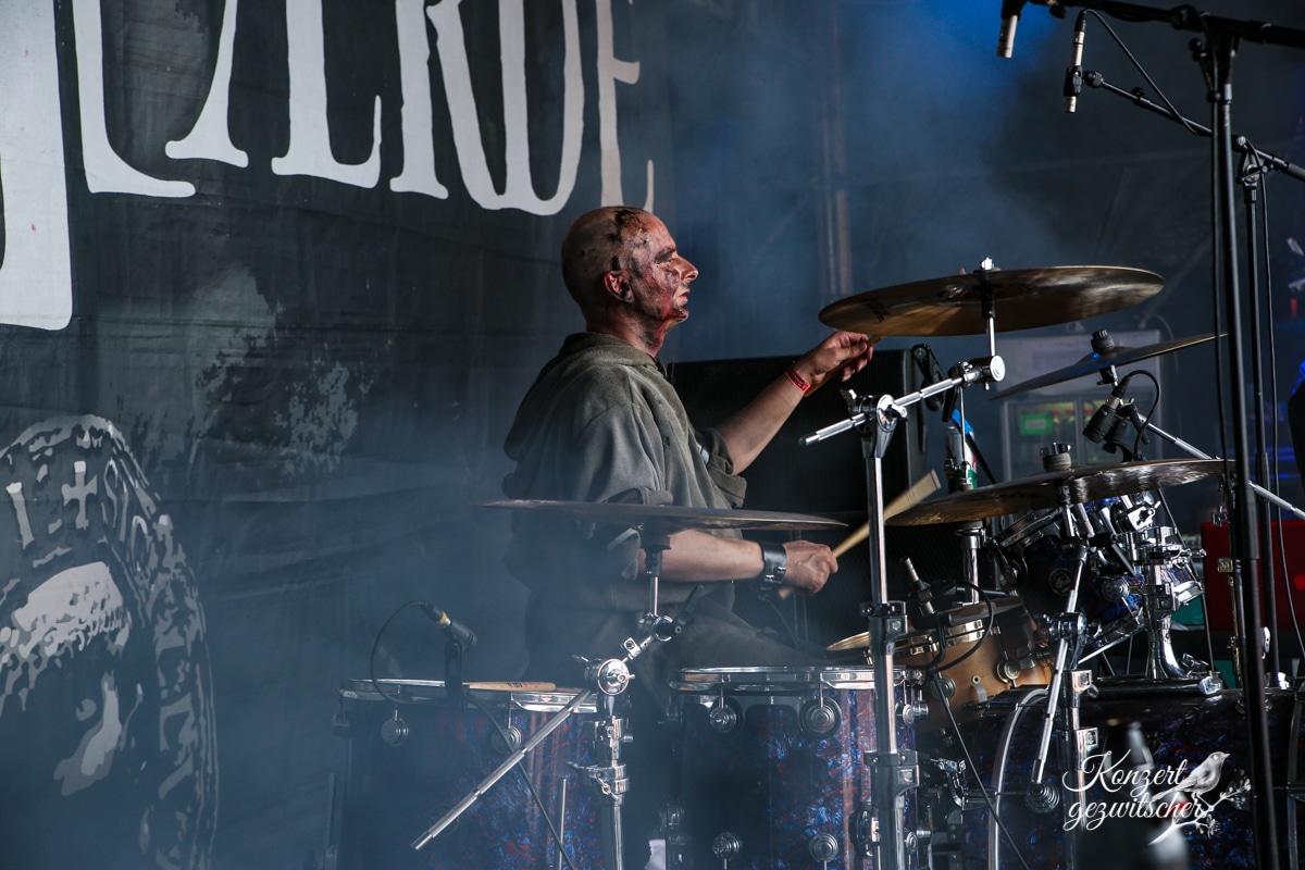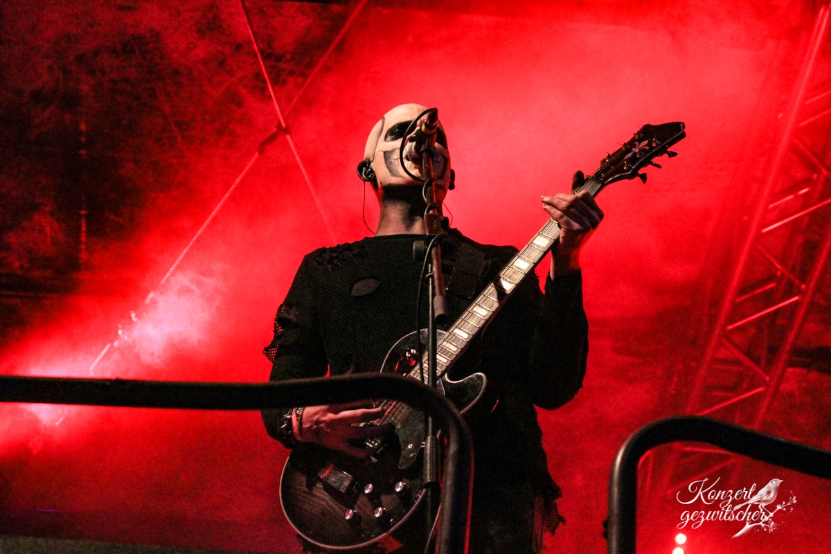 Ist das Kunst oder kann das weg? Die Frage, die HÄMATOM sich auf der aktuellen Platte der Band („Wir sind Gott“) stellt, beantworten Nord, Süd, Ost und West sich auf der Louder Stage selbst. Ohne Möglichkeit zum Widerstand fegen die Herrschaften jegliche Einsprüche mit ihrem brachial-aggressiven, bärbeißigen Sound hinweg – es wummern die Bässe, es knallt, zischt und angesichts des frenetischen Jubels, noch bevor die Musik einsetzt, ist schnell klar: Es kommt was Großes auf uns zu. Mit dem epischen ‚Wir sind Gott‘ präsentiert sich HÄMATOM von der ersten Sekunde als souverän, gewohnt rotzfrech und musikalisch auf einer nahezu olympischen Stufe. Rauchsäulen, die Pyro an Wests Maske oder ein Funkenregen zur letzten Zeile von ‚All You Need Is Love‘ („…und ein bisschen Sprengstoff“): Die NDH-Band zieht alle Register um nach dem Auftritt im vergangenen Jahr ihr Denkmal auf dem WACKEN OPEN AIR endgültig zu zementieren. Dabei greift bei dem Auftritt von HÄMATOM echt ein Zahnrad ins andere: Eine wahnsinnig präsente Band, Nord als Sänger in Höchstform und dazu eine überwältigende Live-Show – raus kommt eine Walze, die das Publikum schier überrollt und sämtlichen anderen Bands, die parallel spielen, das Bestehen ganz schön schwer macht.