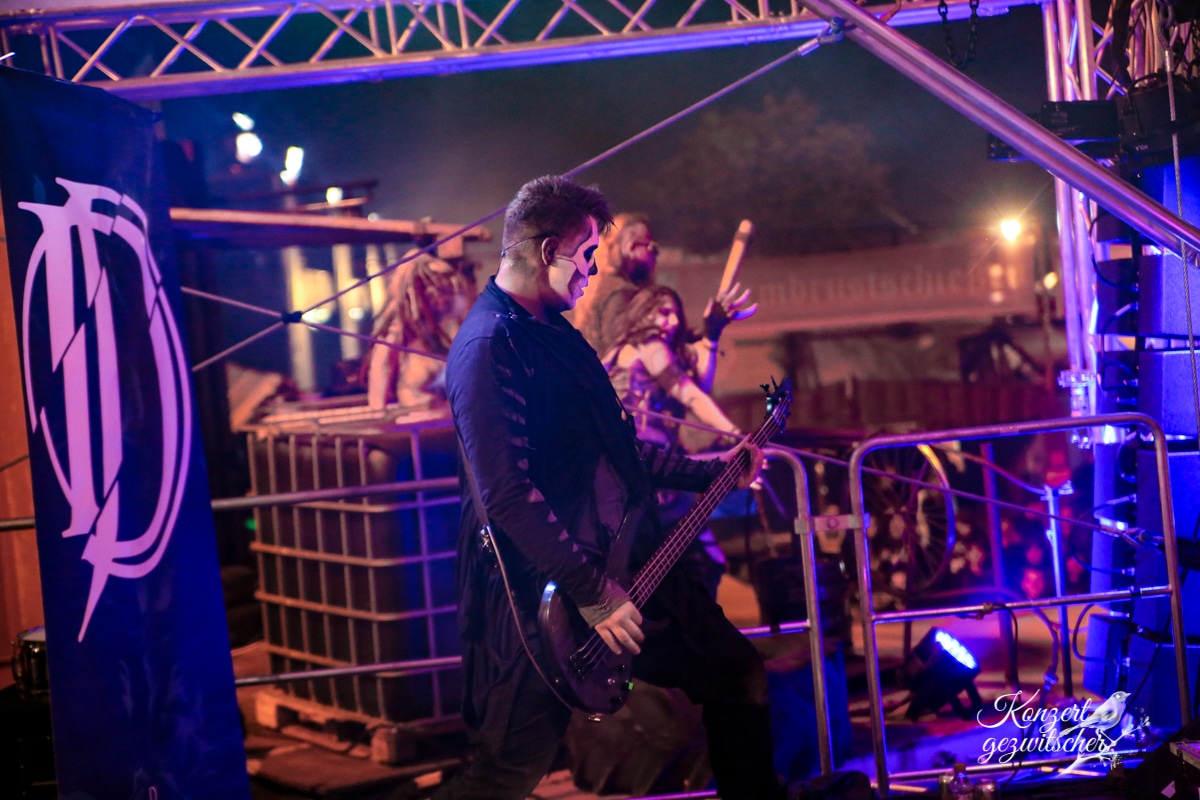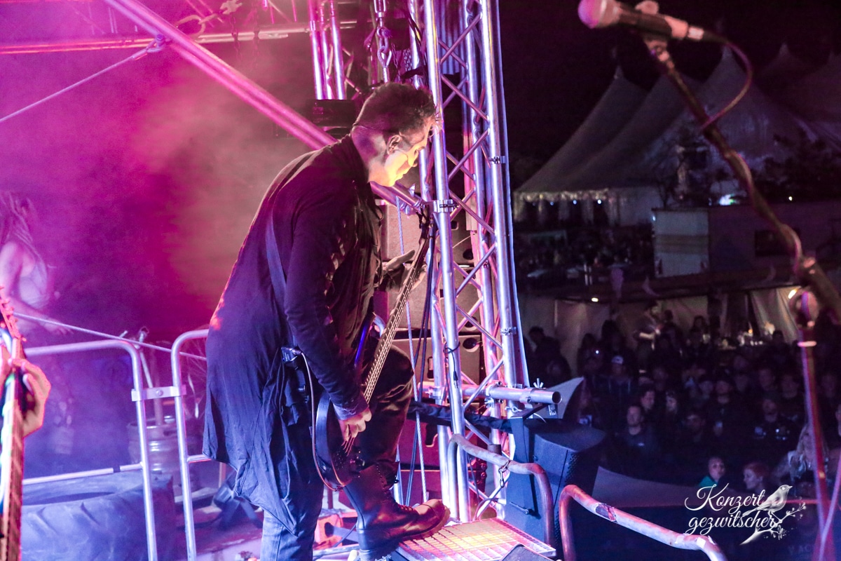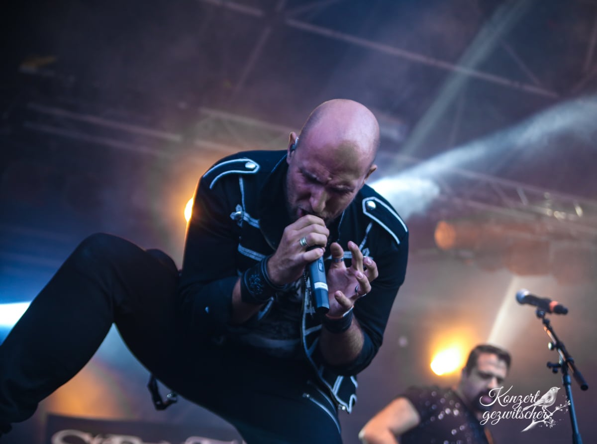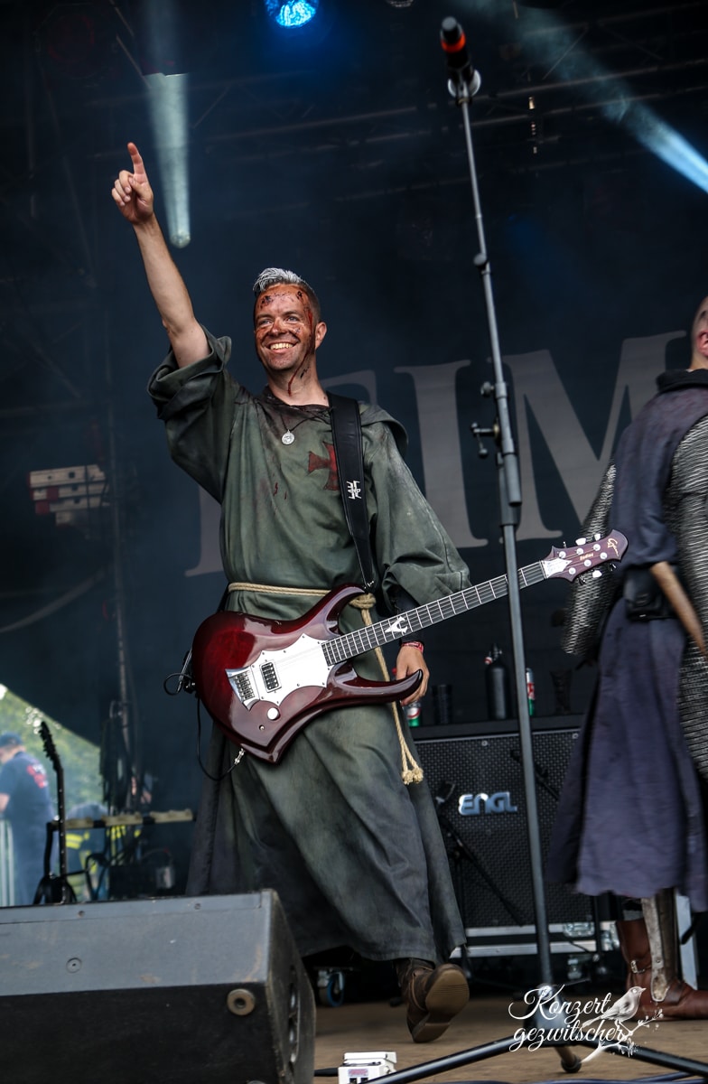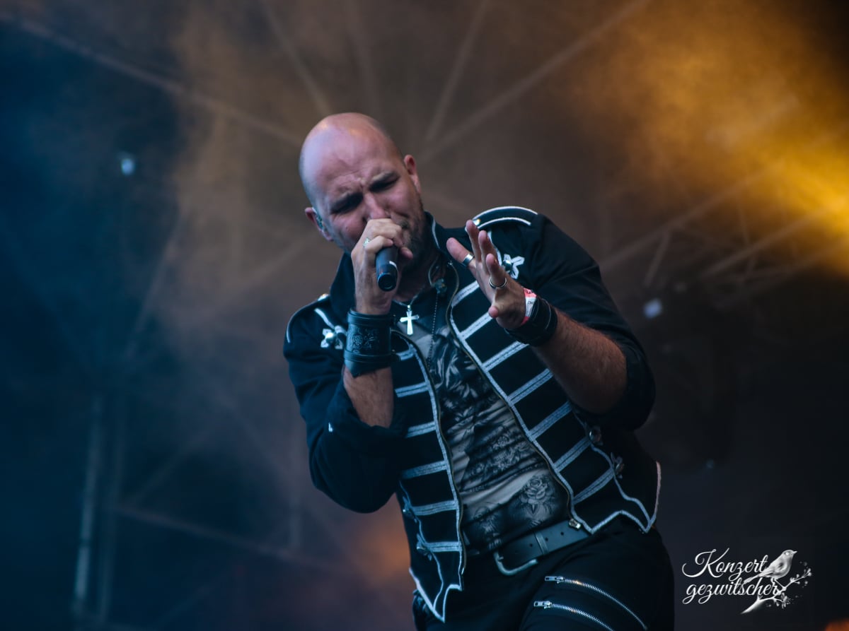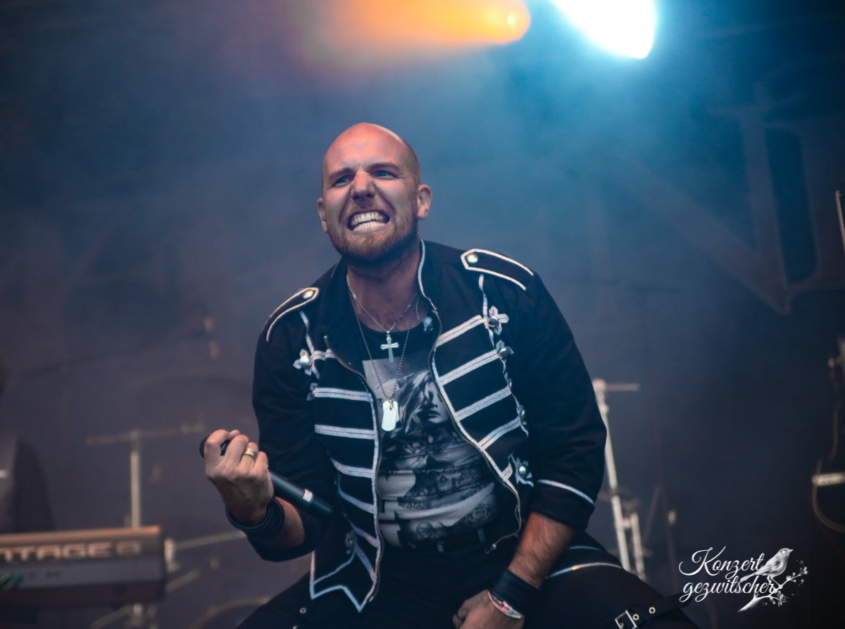Einfall der untoten Templer: HEIMATAERDE besucht am letzten Tag des Festivals die Wackinger Stage und hat neben Äxten, Schwertern und Kunstblut auch jede Menge Partylaune im Gepäck. Denn trotz heroischen Einzugs zum Opener ‚Aerdenbrand‘ der gleichnamigen Platte wollen die Herrschaften um Ashlar von Megalon im hohen Norden vor allem eins: Mit den zahlreichen Besuchern auf dem mittelalterlichen Gelände des Holy Grounds jede Menge Spaß haben. Schließlich haben die Medieval Electro Musiker einen Ruf als „Scooter der schwarzen Szene“ zu verteidigen. Und so mischt sich mit dem Auftritt von HEIMATAERDE eingängige, tanzbare Beats mit einer schaurig-schönen Bühnenshow einschließlich der Exekution von Ignatius von Schneeberg vor dem Publikum beim letzten Song (‚Hick Hack Hackebeil‘). Im Vergleich zu den bisherigen Auftritten der Band ist man dabei um ein Mitglied gewachsen; mit einem Drummer im Rücken hat HEIMATAERDE auf dem WACKEN OPEN AIR rhythmisch einiges an Auftrieb. Zu bedauern ist an diesem Tag eigentlich nur das Fehlen von Bruder Ansgar von Hucretha, der krankheitsbedingt für das Festival ausfällt. Umso höher der Respekt vor den Jungs von HEIMATAERDE, die ihren Auftritt auch trotz Probleme erstklassig über die Bühne bringen – Party-Feeling auf der Wackinger!