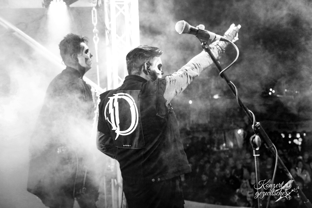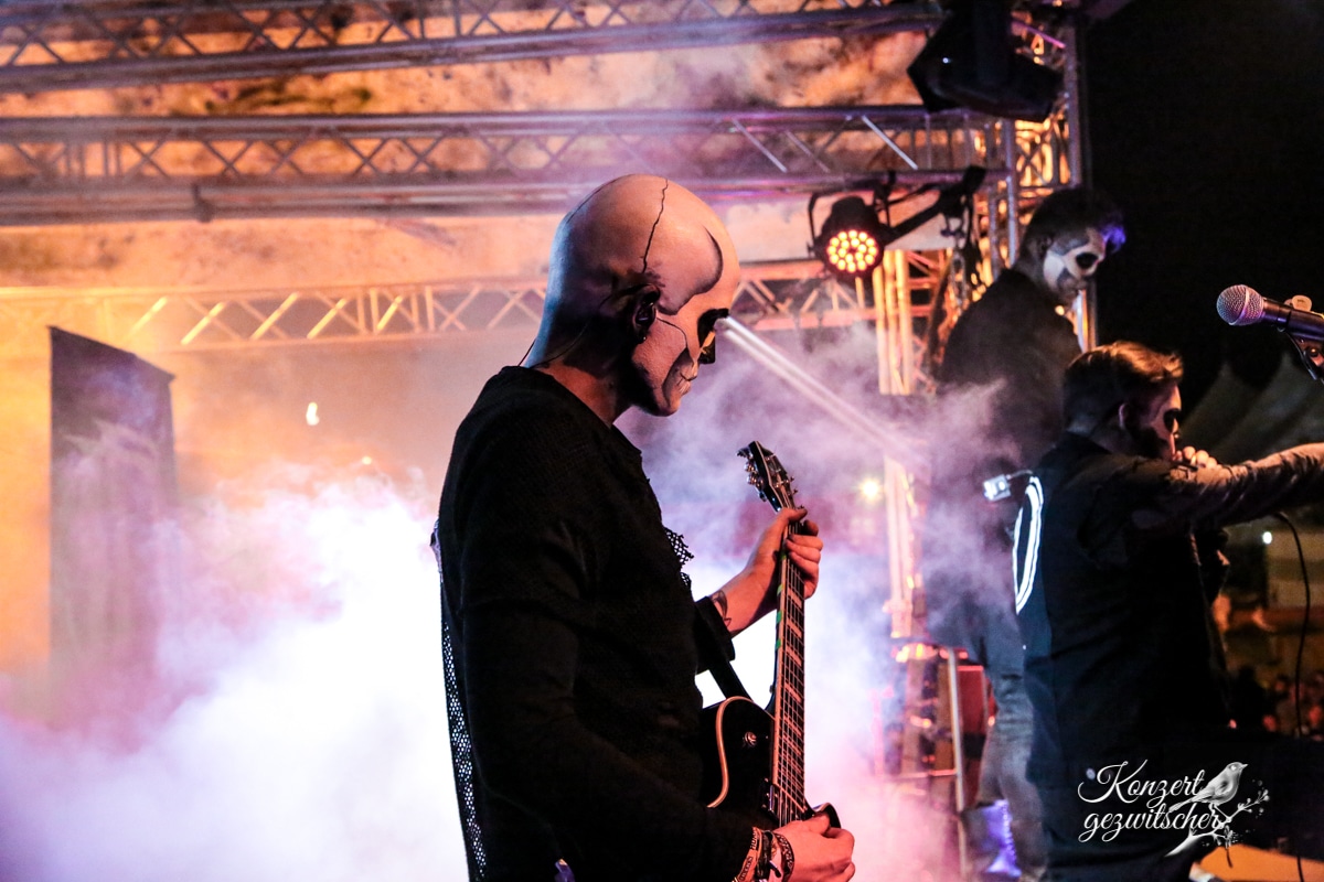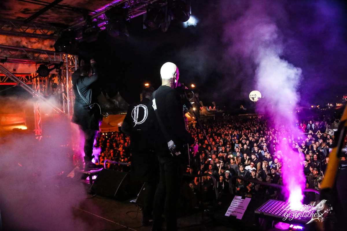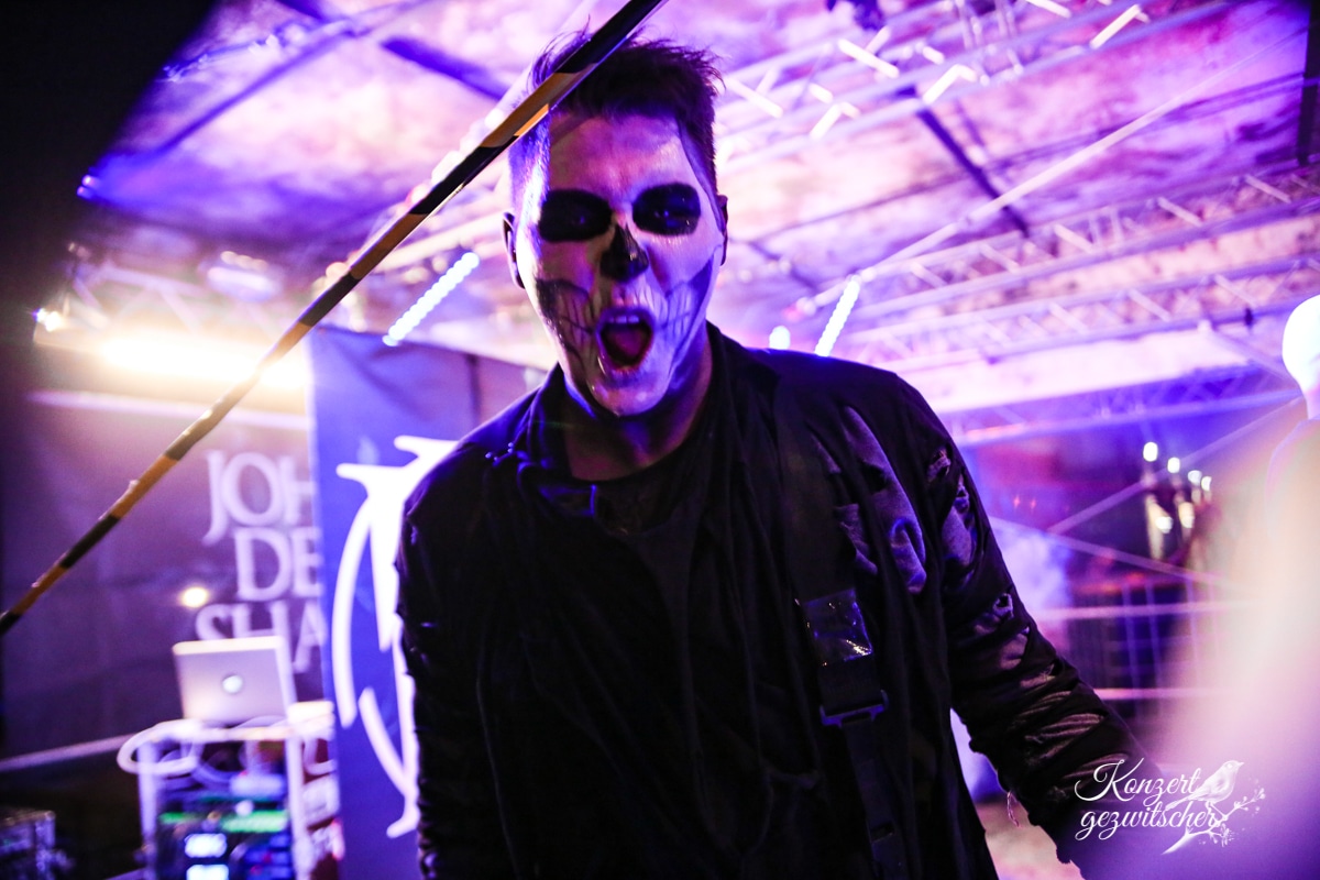 Was für ein Abriss! Für mich findet der eigentliche Abschluss des WACKEN OPEN AIR in diesem Jahr auf der Wasteland Stage statt. Denn für ihr Debüt haben die Hanseaten von JOHNNY DEATHSHADOW ordentlich aufgefahren. Fette Lichteffekte, ein bombiger Bass und zu Live-Brechern wie ‚Apocalypse Trigger‘ meterhohe Stichflammen, dass es einem der Atem raubt. Die Todesschwadronen machen AVANTASIA wenige Meter entfernt ordentliche Konkurrenz – und das schlägt sich auch im Publikum nieder. Bis an die Wackinger Stage reihen sich die Menschen, die beispielsweise zu ‚Land Of The Dead‘ ordentlich Party machen. Doch nicht nur bei den eindruckenden Special Effects setzt JOHNNY DEATHSHADOW auf Klotzen statt Kleckern: Gegen die die schaurigen Totenköpfe wirkt das Bühnen-Make-Up manch anderer angemalter Künstler auf dem WACKEN OPEN AIR fast schon wie Kinderschminken: Johnny und Co feiern ihre Premiere mit sichtlich viel Spaß und liefern der Reihe nach echte Bretter. Es knallt, es hämmert und der brachiale Industrial Mix der Jungs fegt jegliche Lethargie zu Festival-Ende ohne Kompromisse vom Parkett. Dazu die trockenen Ansagen von Frontmann Johnny… So zerreißt man als letzter Act vorbildlich die Wasteland Stage, nach diesem Auftritt bin ich wahrlich beeindruckt. Es braucht eben nicht immer die große Bühne, um eine atemberaubende Show auf die Beine zu stellen.