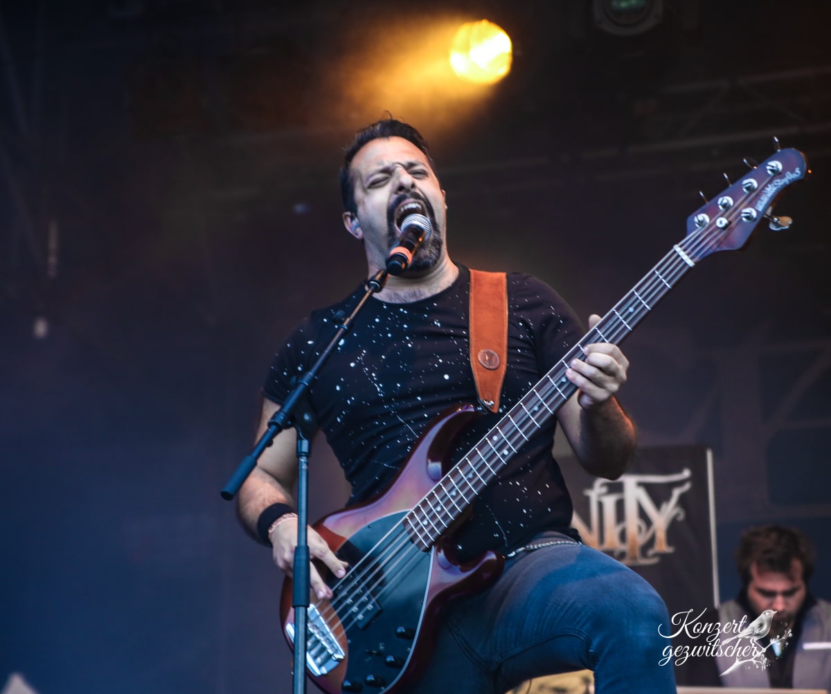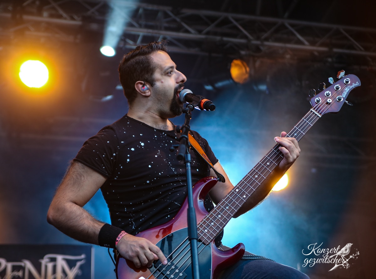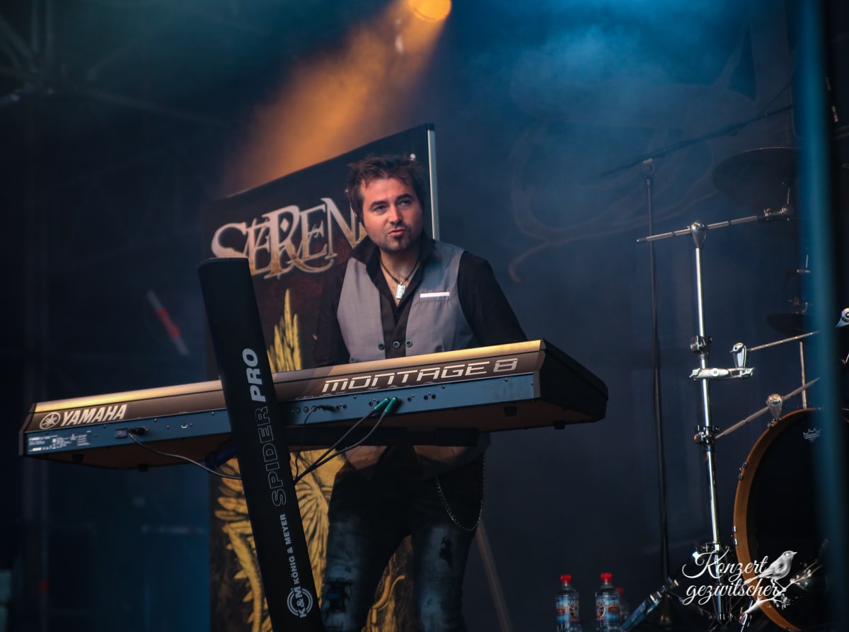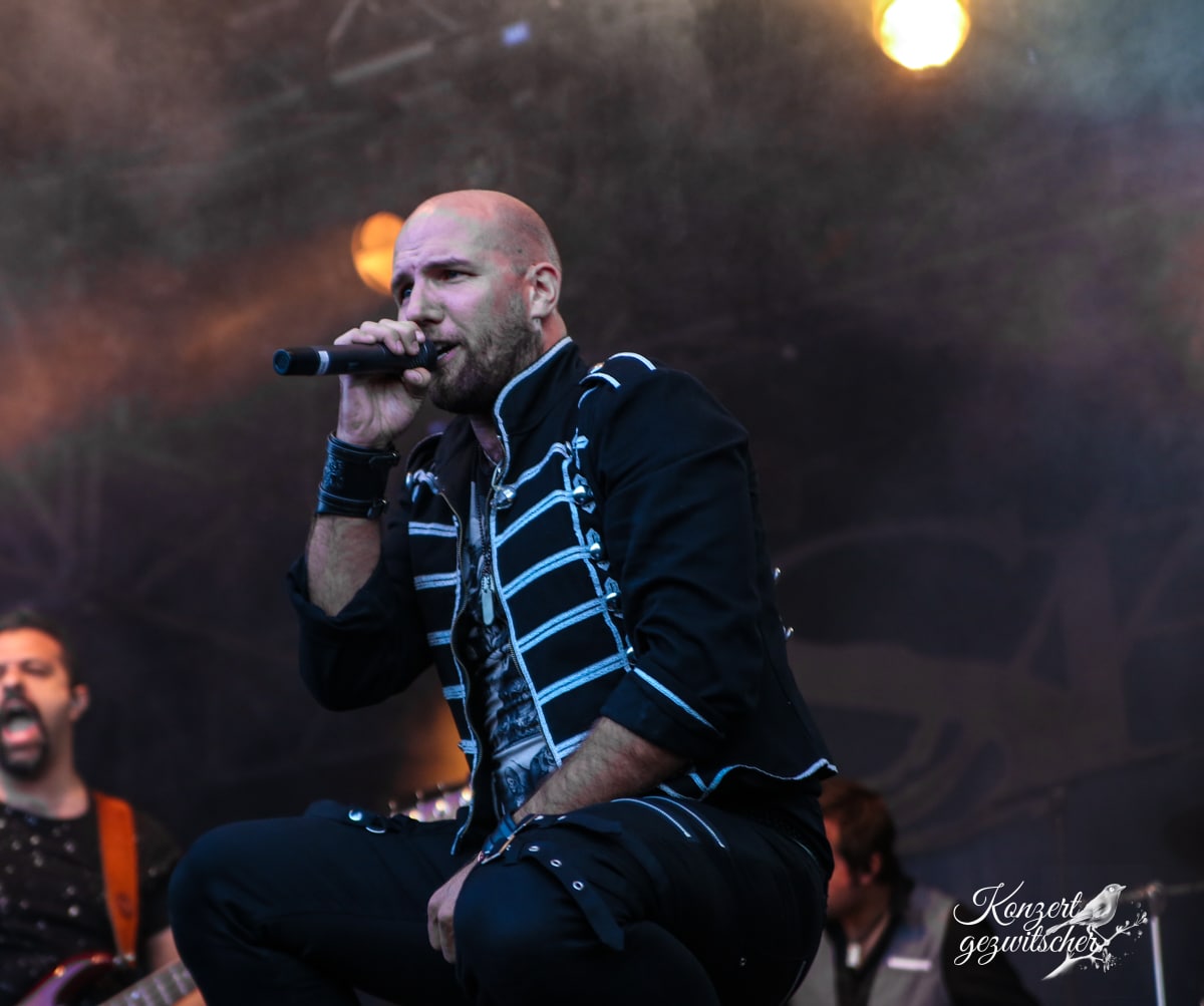 Mit SERENITY bekomme ich am letzten Tag des WACKEN OPEN AIR noch einen weiteren Beweis für die hohe Qualität, die sich auf dem Festival im hohen Norden auch auf den Nebenbühnen abspielt. Denn die Österreicher haben ihr Level, das sie schon auf dem CASTLE ROCK Ende Juni eindrucksvoll bewiesen haben, noch einmal gesteigert. So sorgt SERENITY erst mit einem stimmungsvollen Bühnenbild und schließlich den epischen Klängen des „Codex Atlanticus“ für einen Hauch Mystik. Nach dem sehr gediegenen Intro setzt Sänger Georg Neuhauser gleich mit dem ersten Titel ‚Follow Me‘ für einen neuen Standard an Agilität und Dynamik: Es wird gesprungen, gebangt und gefeiert, sodass der Funke über den virtuosen Chris Hermsdörfer an der Gitarre quer durch die Band geht. SERENITY präsentiert sich am Samstag wahlweise als Geschichtenerzähler, Heroen mit Titeln wie ‚Leonardo‘ oder einfach nur als grandiose Partymacher. Den Sympathiebonus des Publikums erspielen sich die Österreicher mühelos innerhalb weniger Stücke: Man möchte SERENITY am liebsten gar nicht mehr von der Bühne lassen. Nur noch eine Geschichte… äh… ein Lied. Gänsehautfaktor pur! Ein besonderes Schmankerl, mit dem Sänger Georg bei seinen Kollegen für Verwirrung und beim Publikum für Belustigung sorgt, schließlich die wohl bemerkenswerteste Aussage auf dem WACKEN OPEN AIR an diesem Wochenende (neben der Drohung Marilyn Mansons, die Bühne zu verlassen, wenn das Publikum nicht bald mal aus den Puschen kommt): „Macht ihr mal ein Abschlussbild, ich gehe Crowdsurfen!“ Der Rock’n Roll ist auch auf der Wackinger Stage mehr als lebendig, er trägt den Namen SERENITY!
